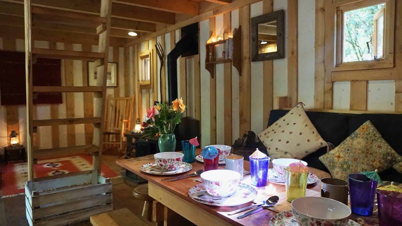 Fantastic ancient woodland with magical yurts, log cabins, gardens, ponds, bees and more. Comes with a production office for HMU/Wardrobe area, and a kitchen/cafe that can be hired to cater for production teams of up to 30. Located in Sussex RH19.