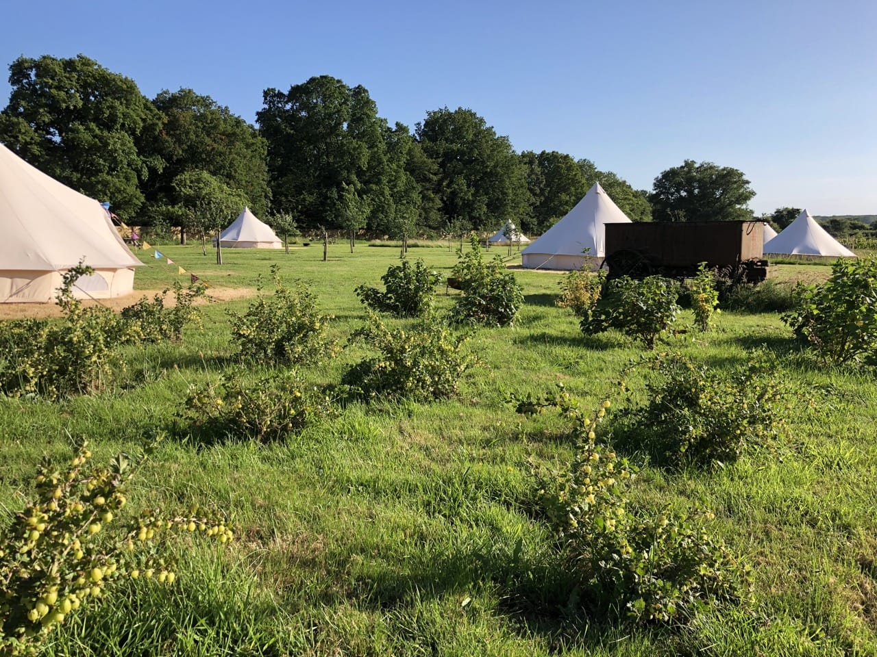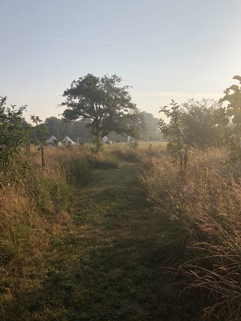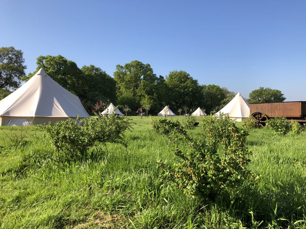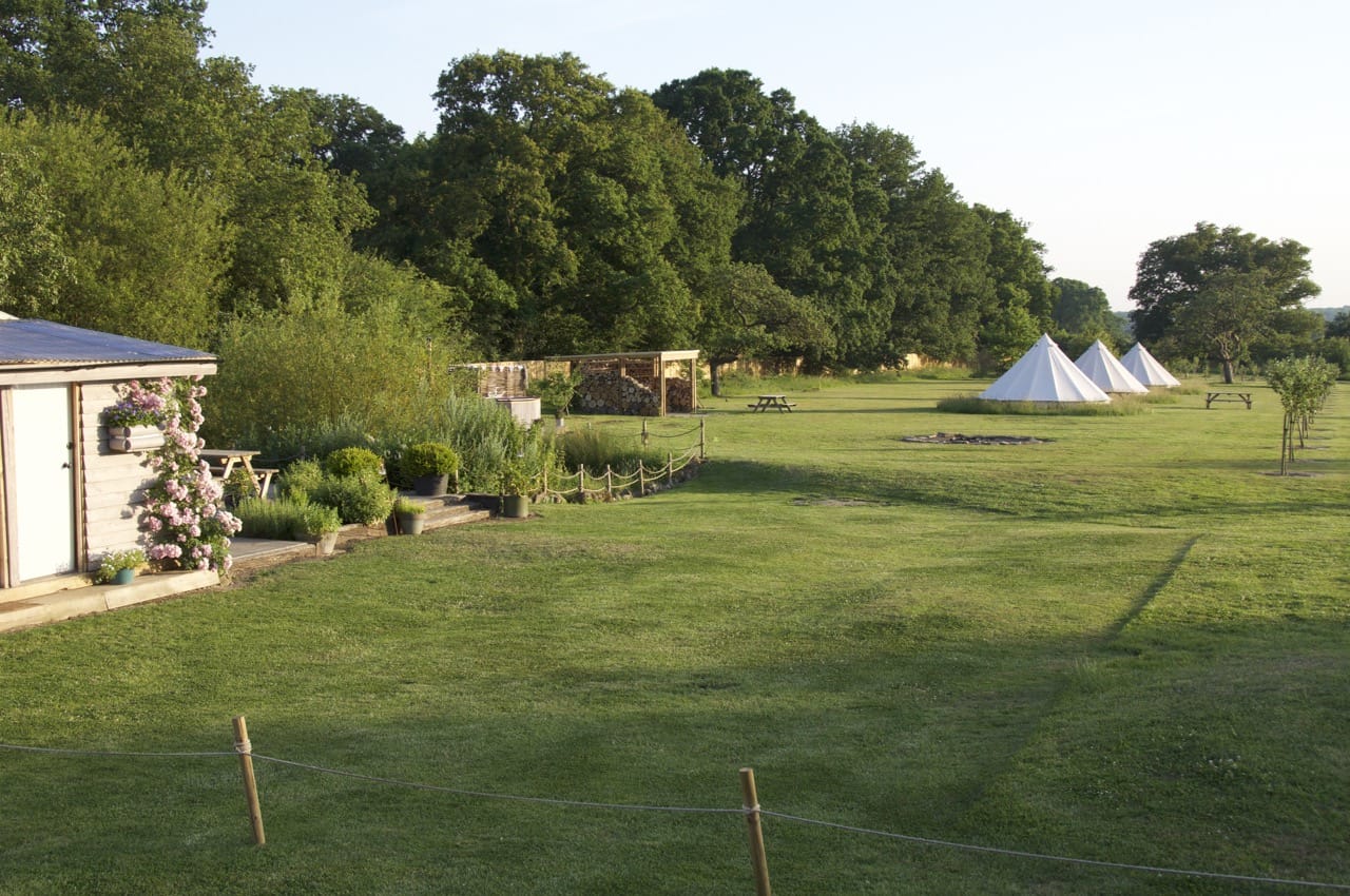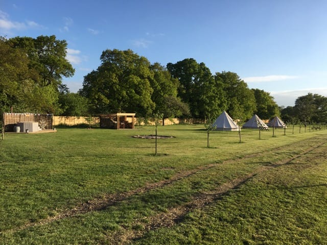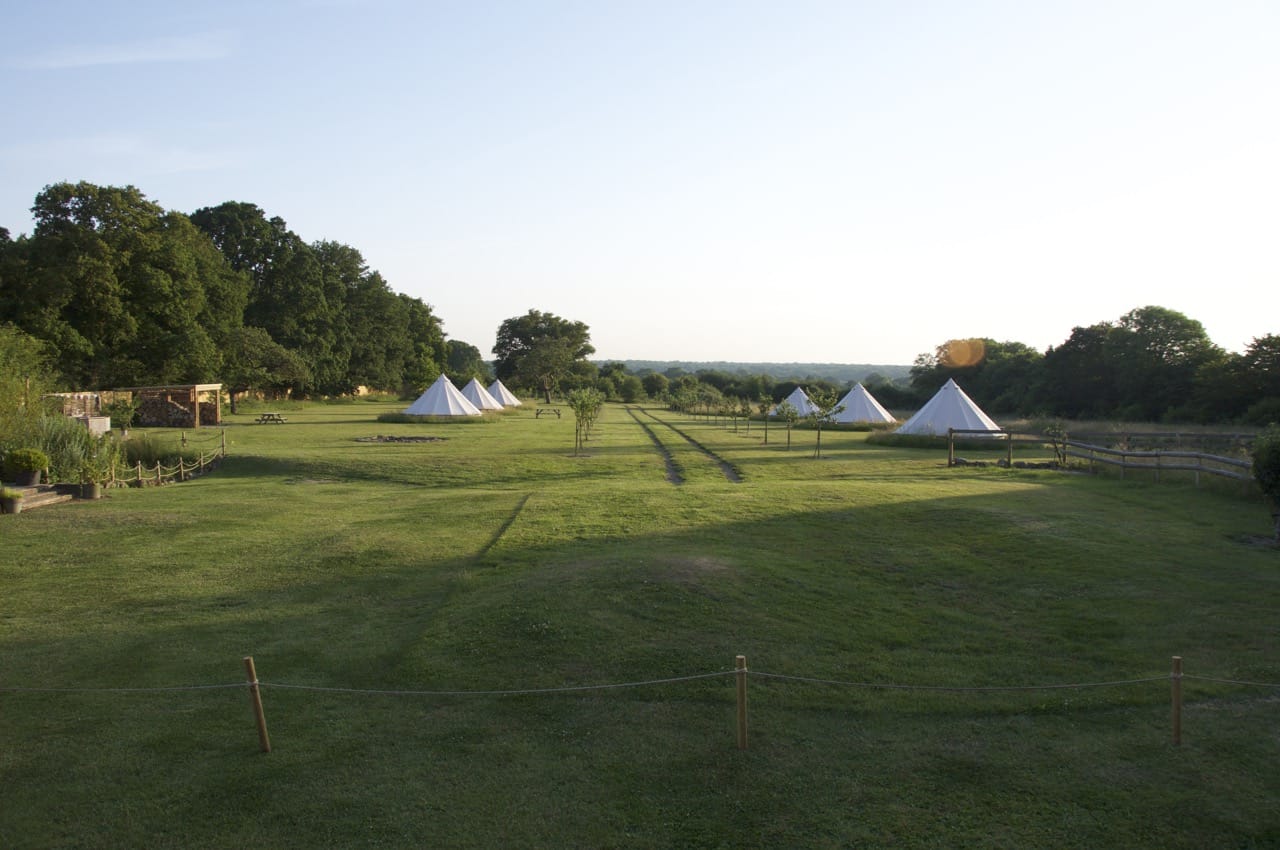 Wonderful 5 acre Glampsite & Country House situated in the heart of Kent, The Garden of England. It has 6 Bell tents (seasonal only), hot tub, Air Stream, pizza oven, vines, orchards, wild flower meadows, pigs, chickens and loads of photogenic character! 1.30hrs by car from London or 38mins on the High Speed train into Ashford International. Come shoot in Kent – it’s fab!