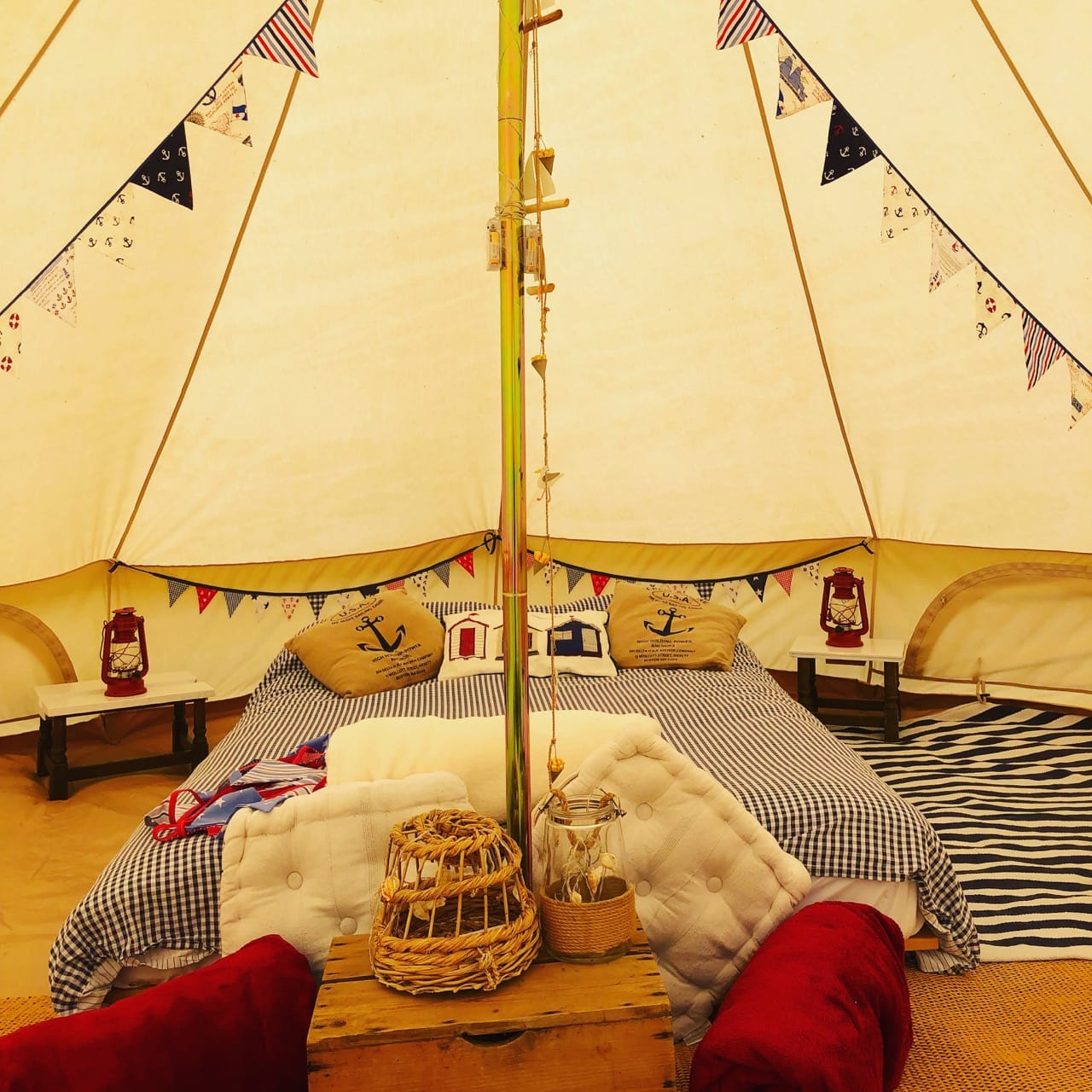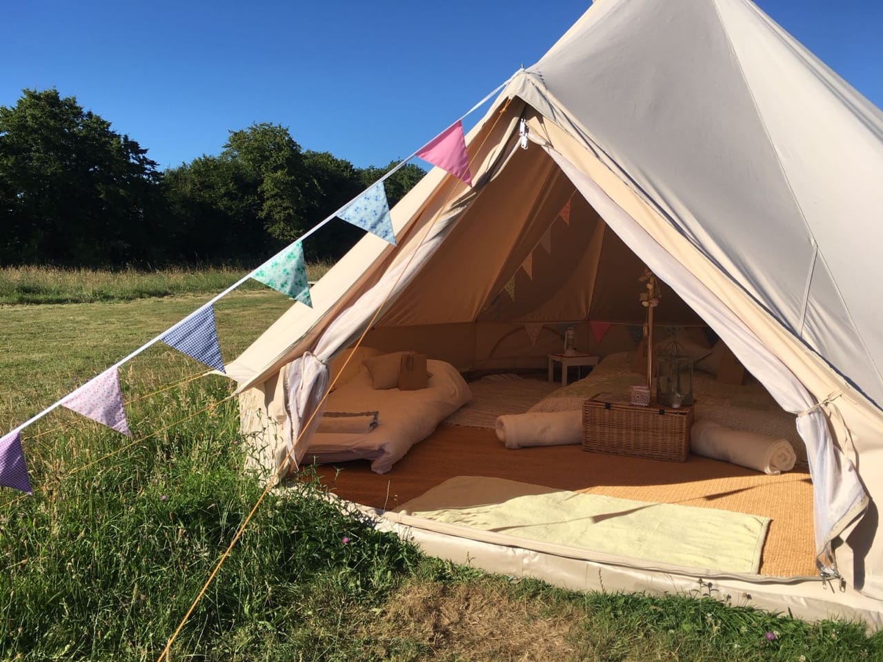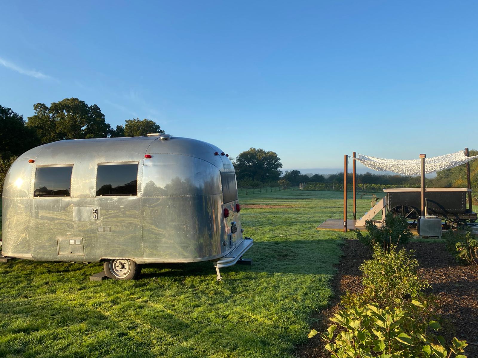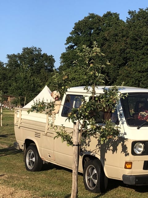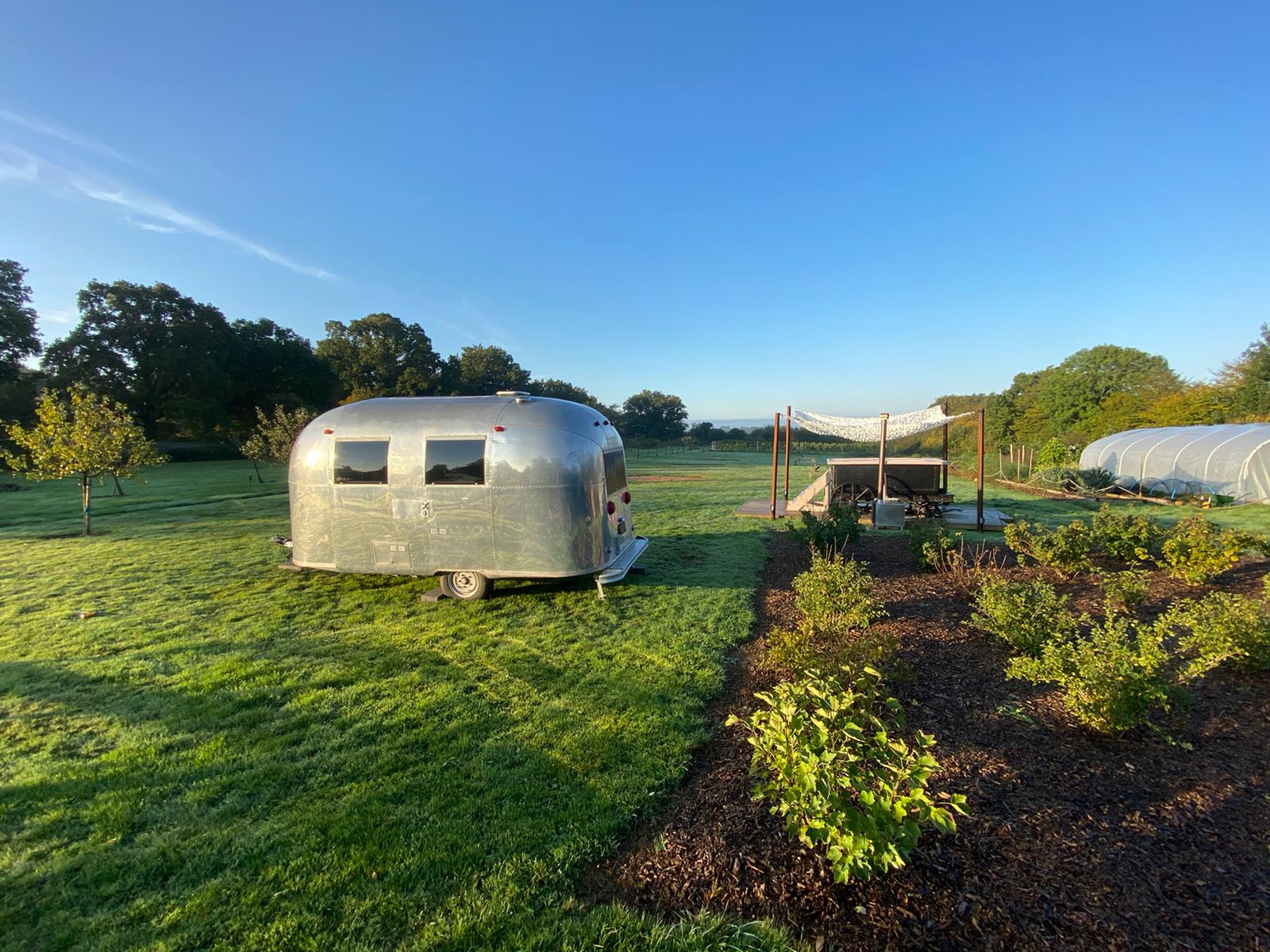 Wonderful 5 acre Glampsite & Country House situated in the heart of Kent, The Garden of England. It has 6 Bell tents (seasonal only), hot tub, Air Stream, pizza oven, vines, orchards, wild flower meadows, pigs, chickens and loads of photogenic character! 1.30hrs by car from London or 38mins on the High Speed train into Ashford International. Come shoot in Kent – it’s fab!