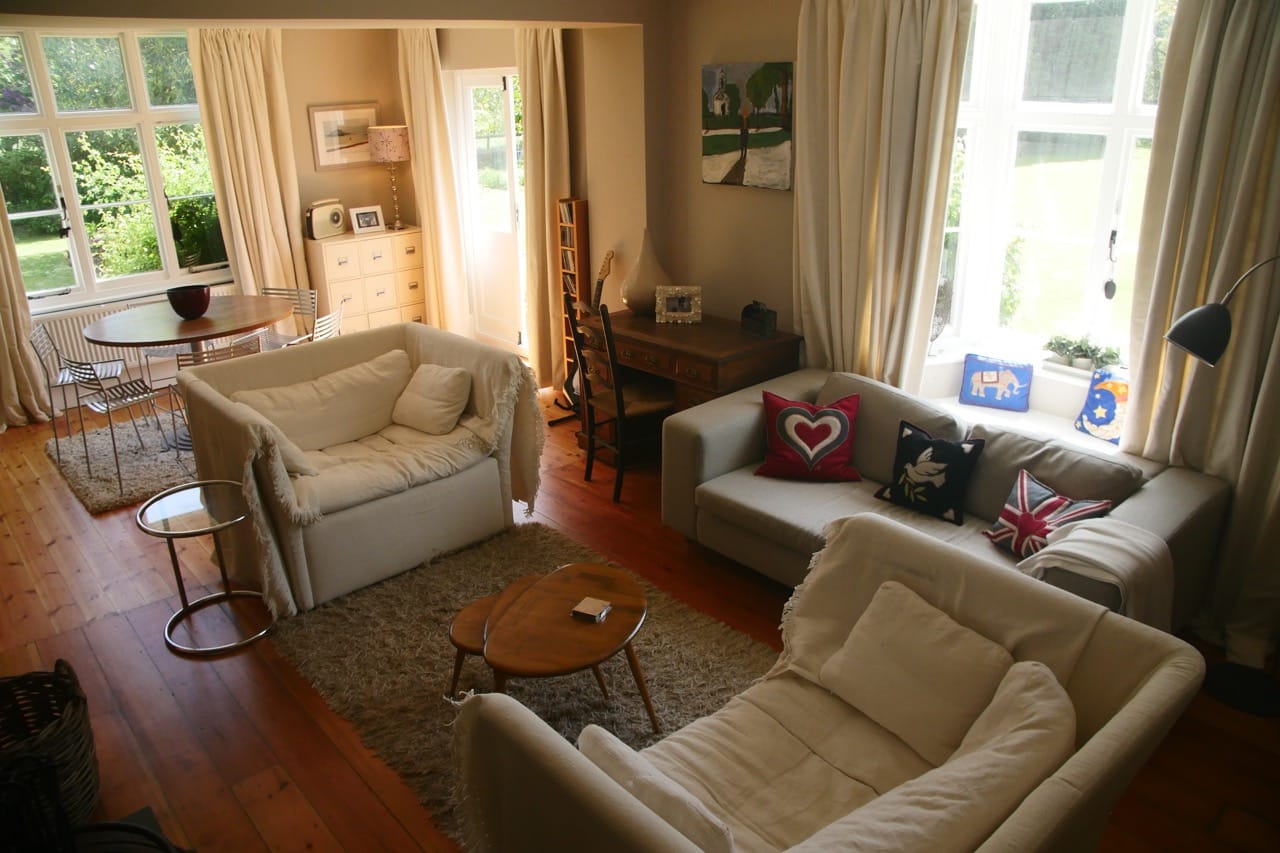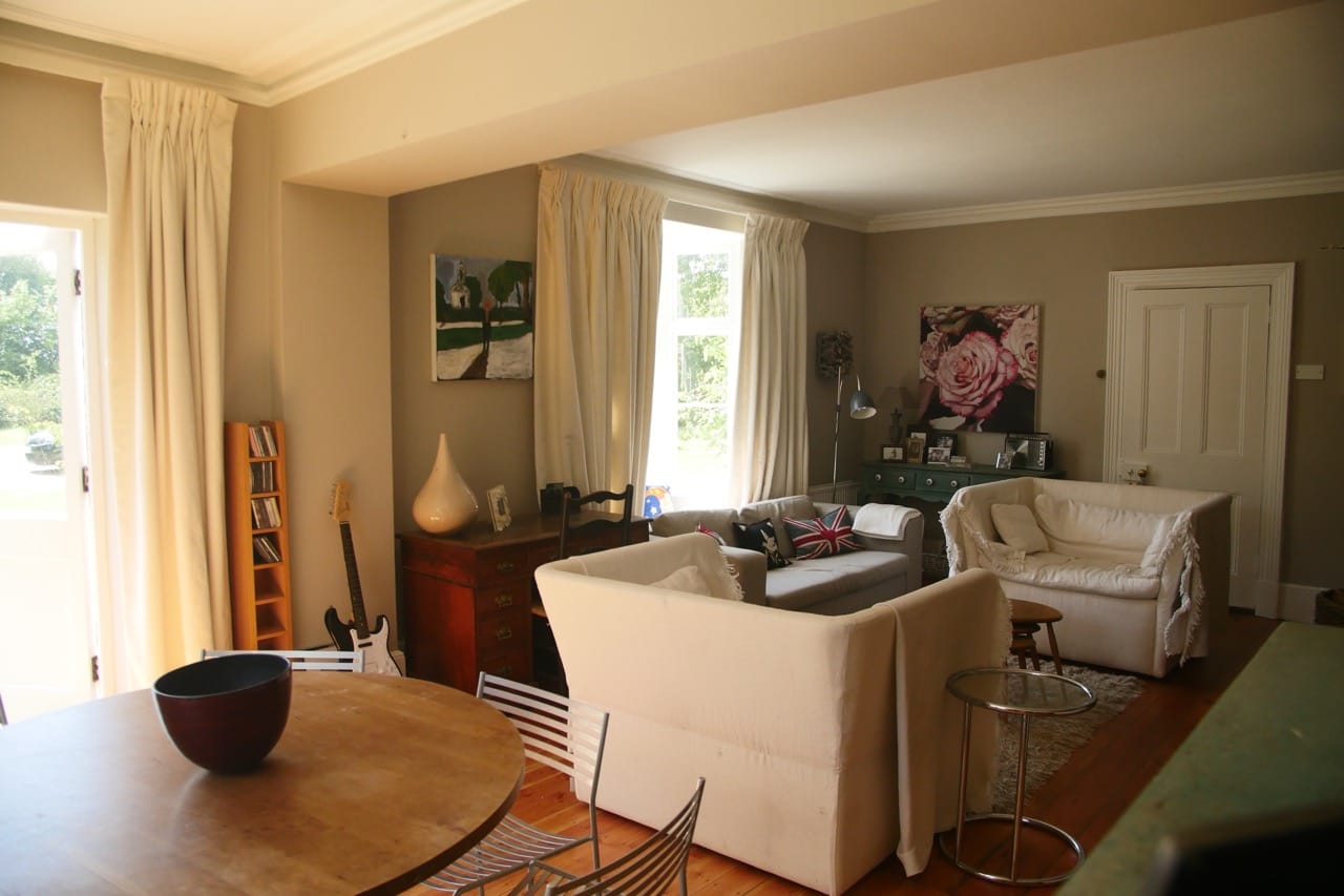 Fantastic country house with stylish interior. Grounds have large gardens, an out-house/production office and field for unit parking. Located in Hertfordshire.