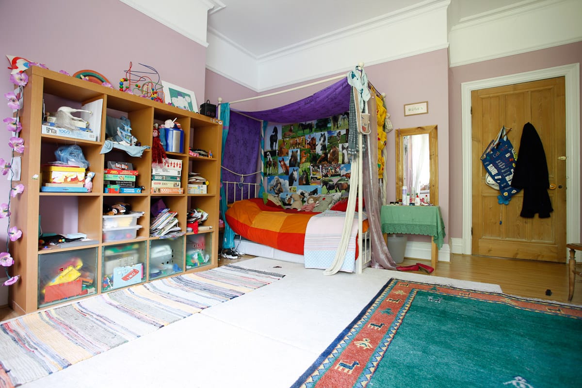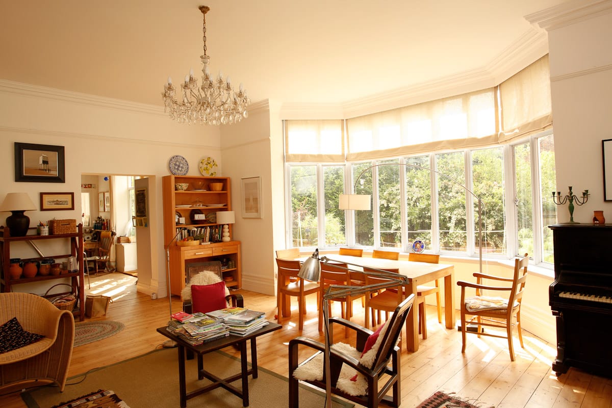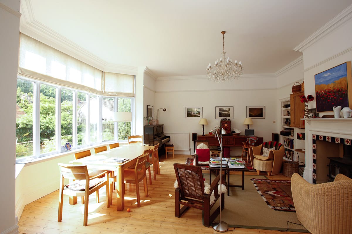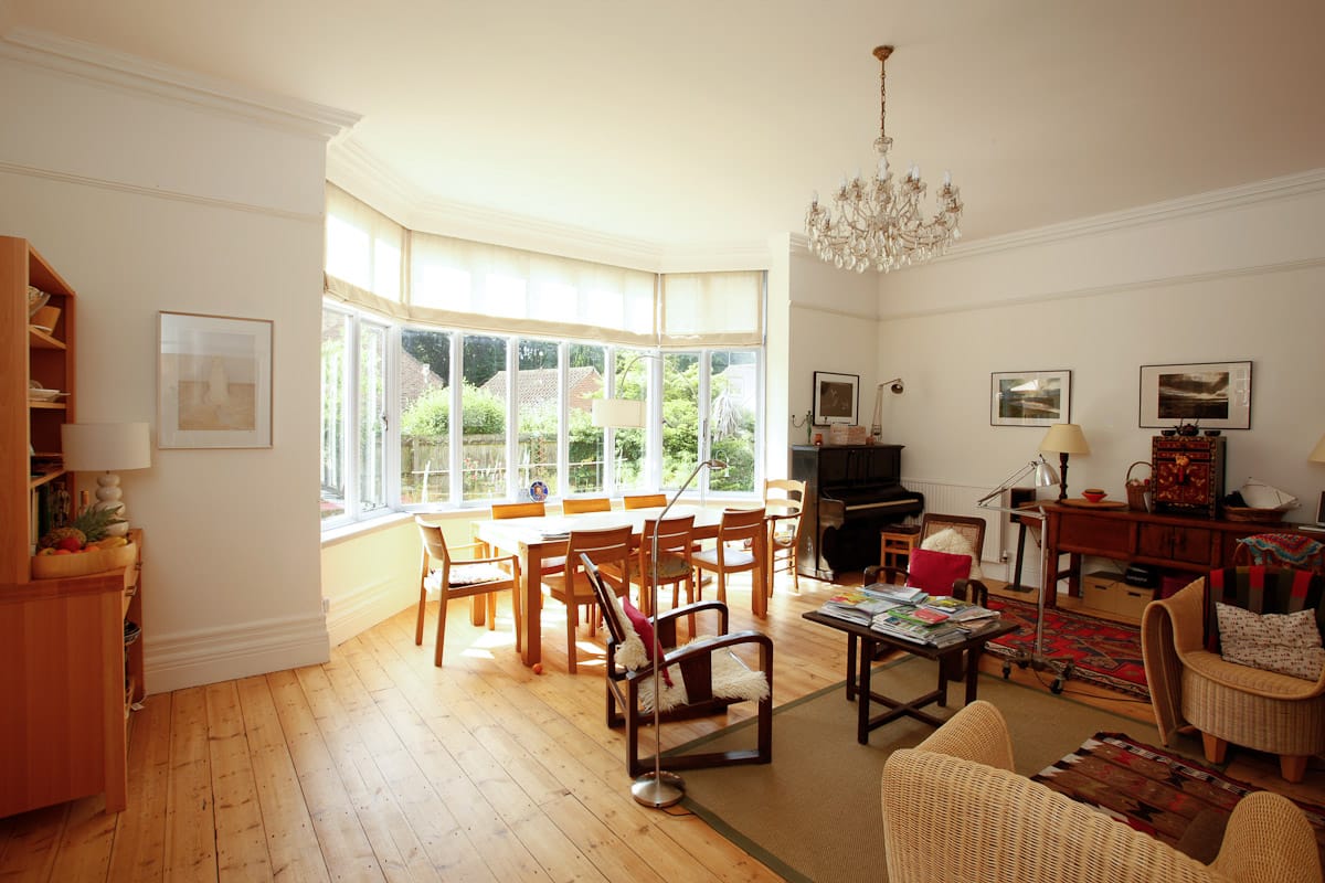 Large Edwardian house with12ft ceilings downstairs, large rooms available including kids’ rooms, and a garden. Located in Norfolk.