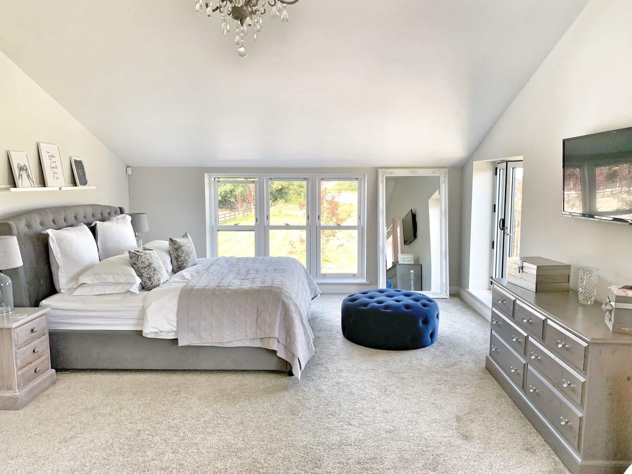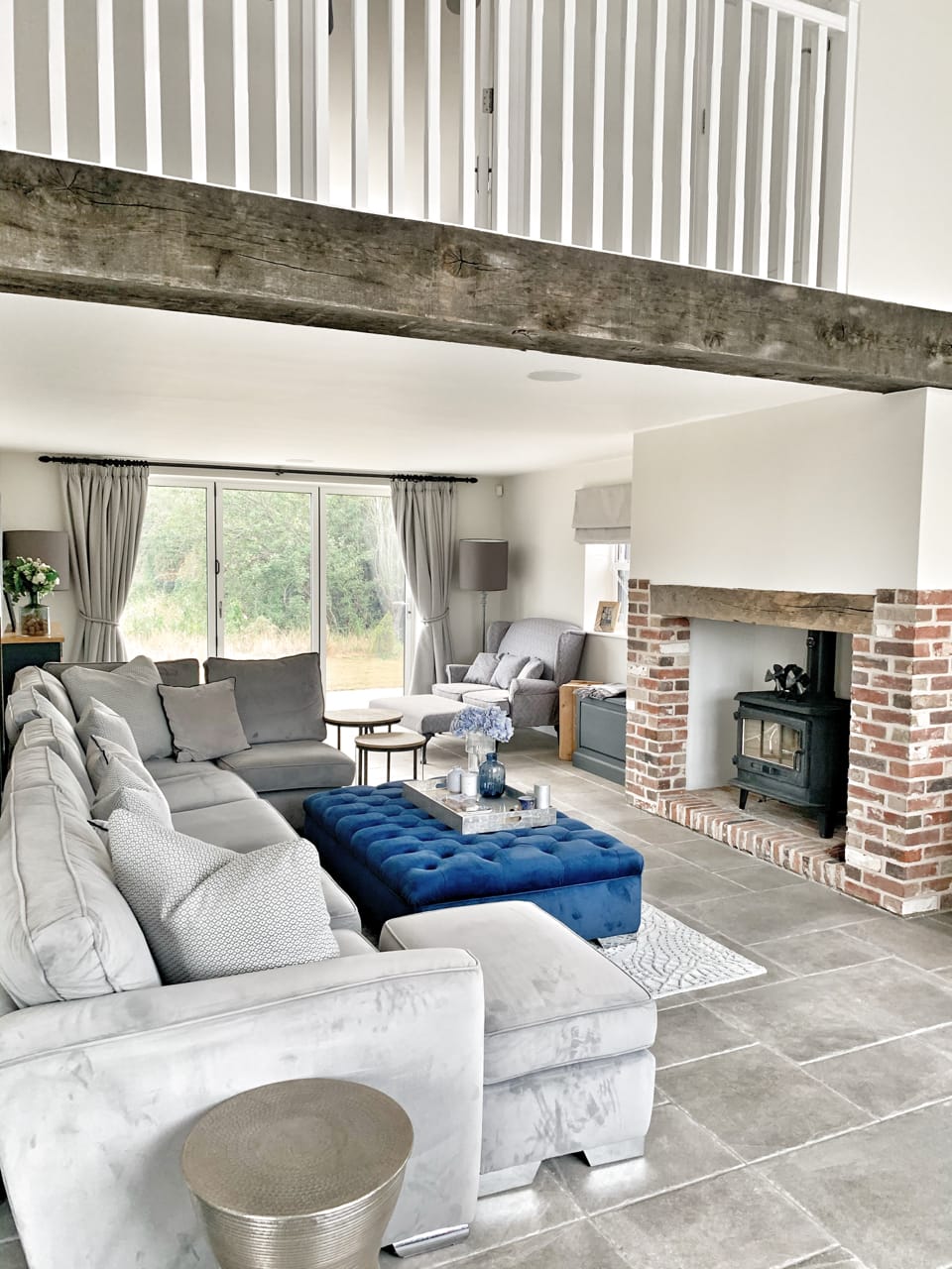 A fab new build barn conversion with a modern interior and lots of daylight. Double height vaulted hall and living space with large gallery landing. Open plan kitchen and dining area with an island and bi-fold doors out to the garden. Vaulted ceilings and floor to ceiling windows throughout upstairs. Large master bedroom with bath, juliet balcony and views across the fields.