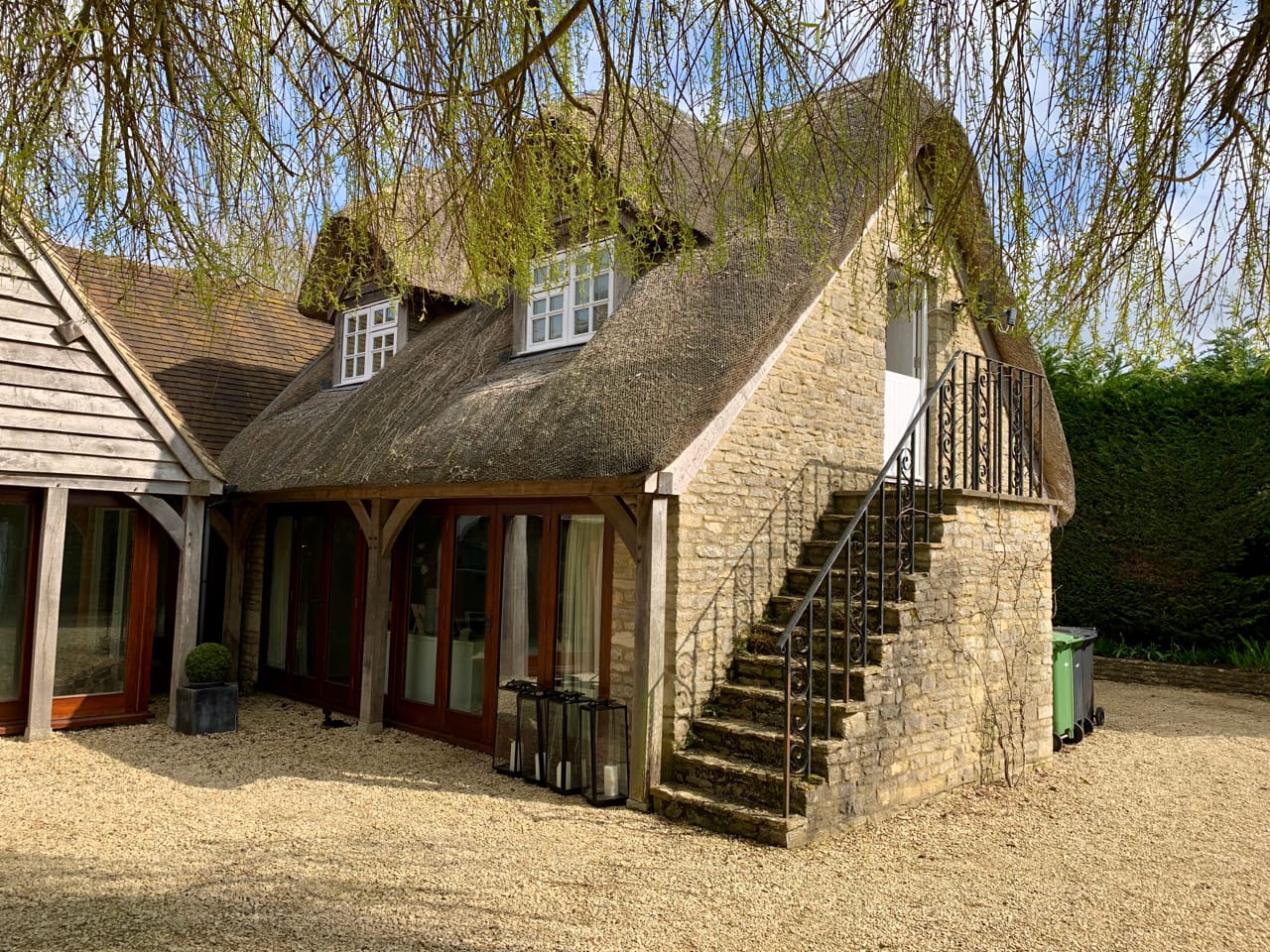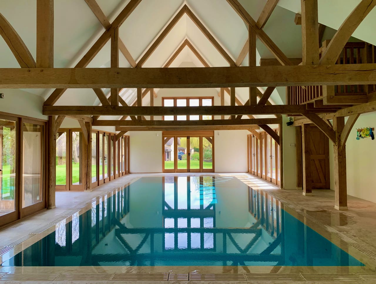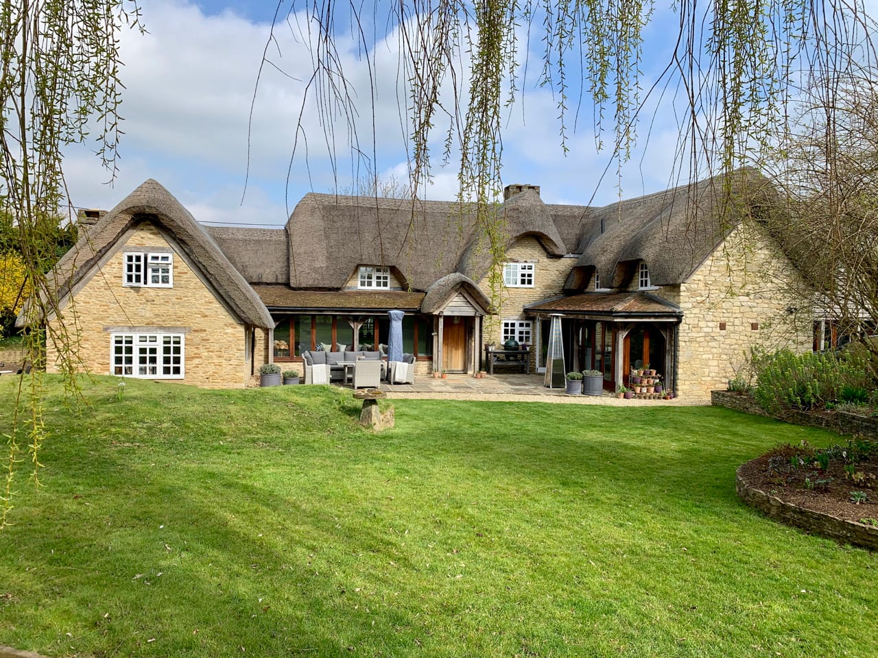 A substantial and beautifully presented period property with an outstanding leisure complex comprising a swimming pool and gymnasium. It is a huge thatched cottage with exposed beams. It has 5 bedrooms, 4 bathrooms, a formal drawing room, a dining room, 2 reception rooms, indoor swimming pool, garden room, family room with landscaped gardens, grounds and a paddock.