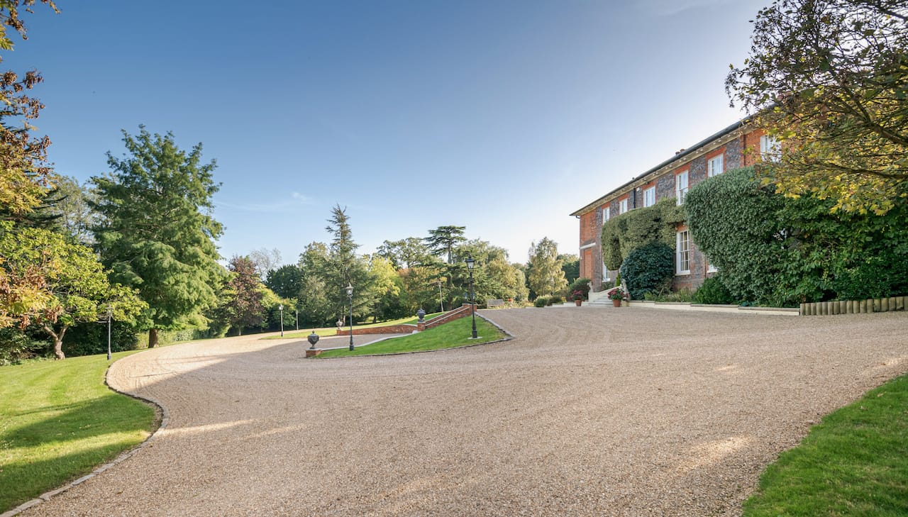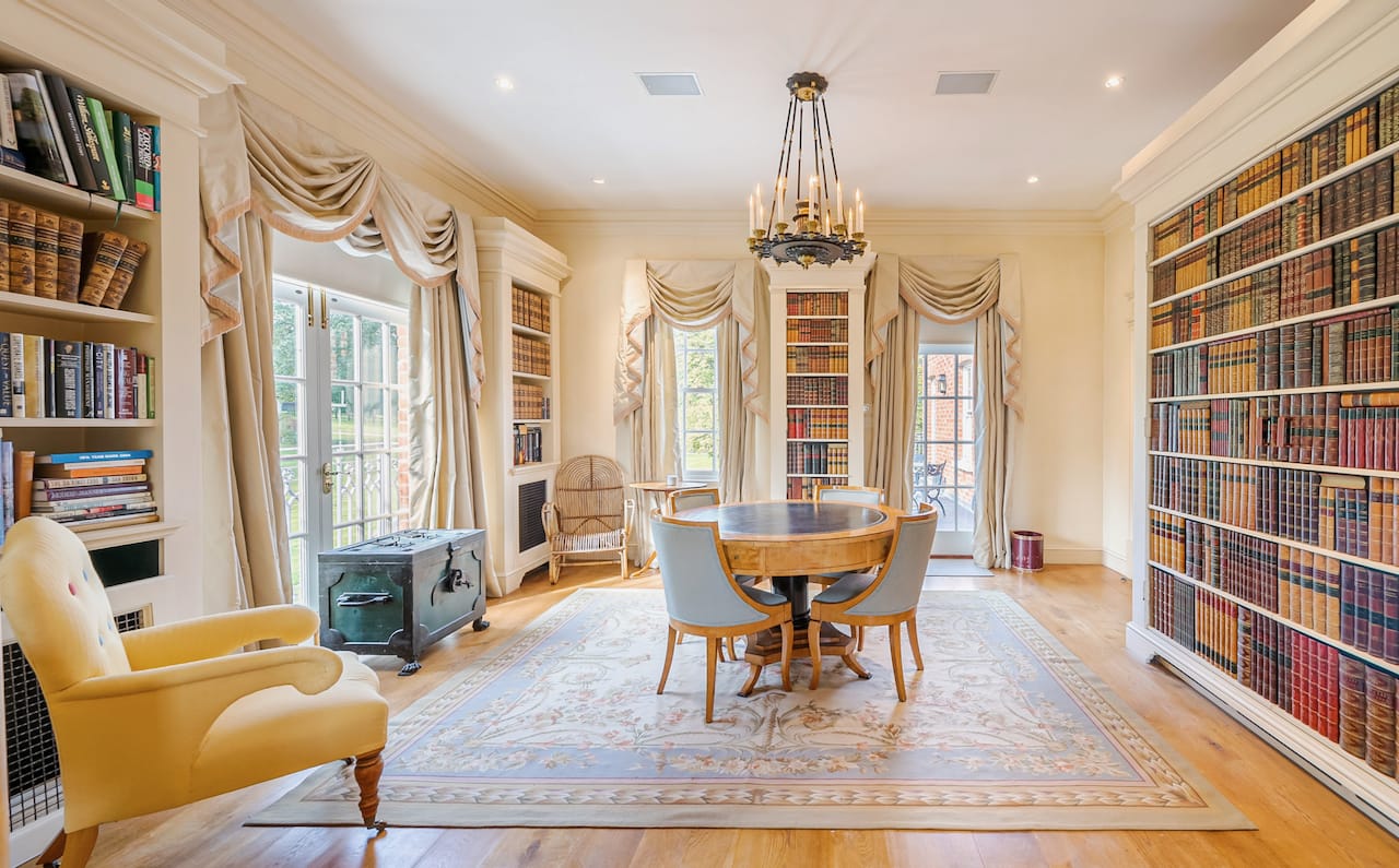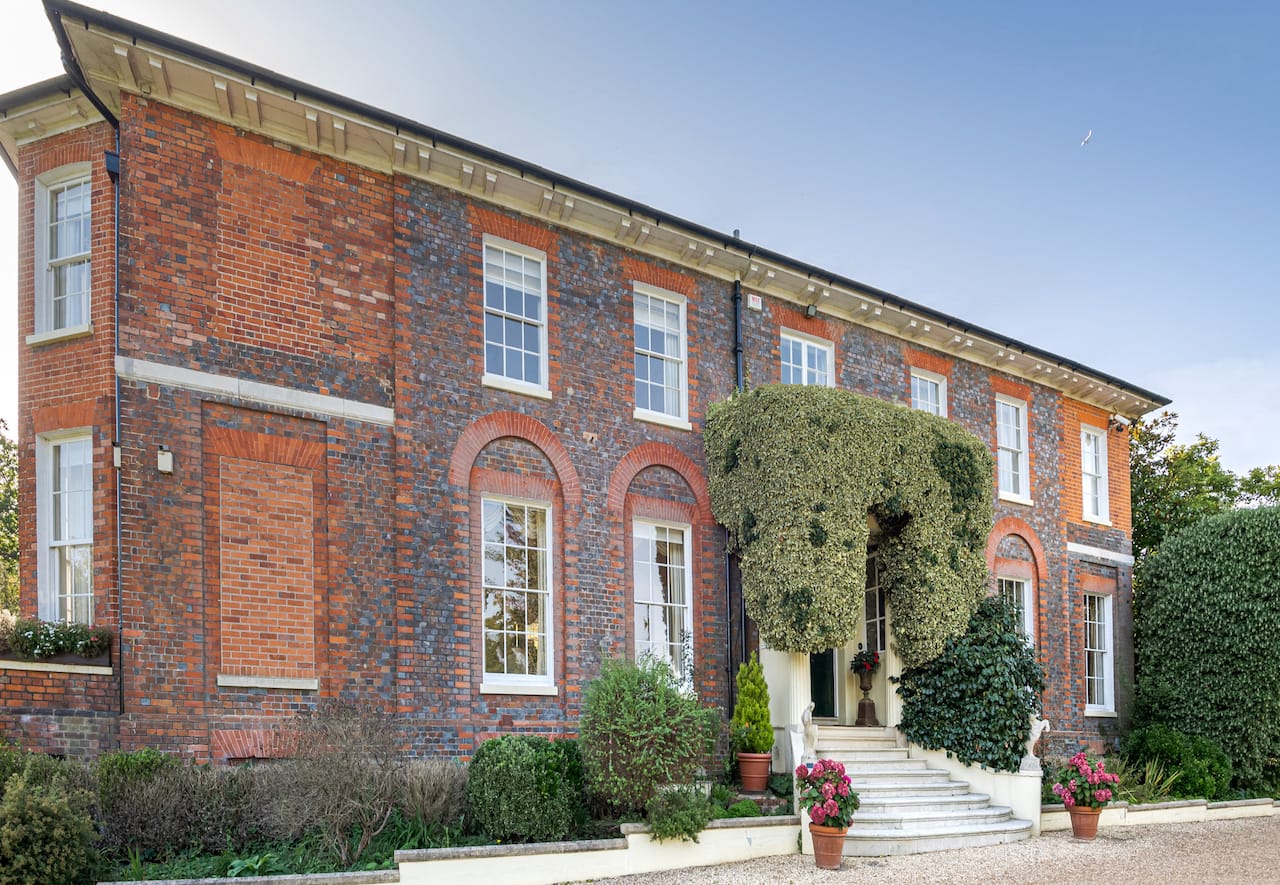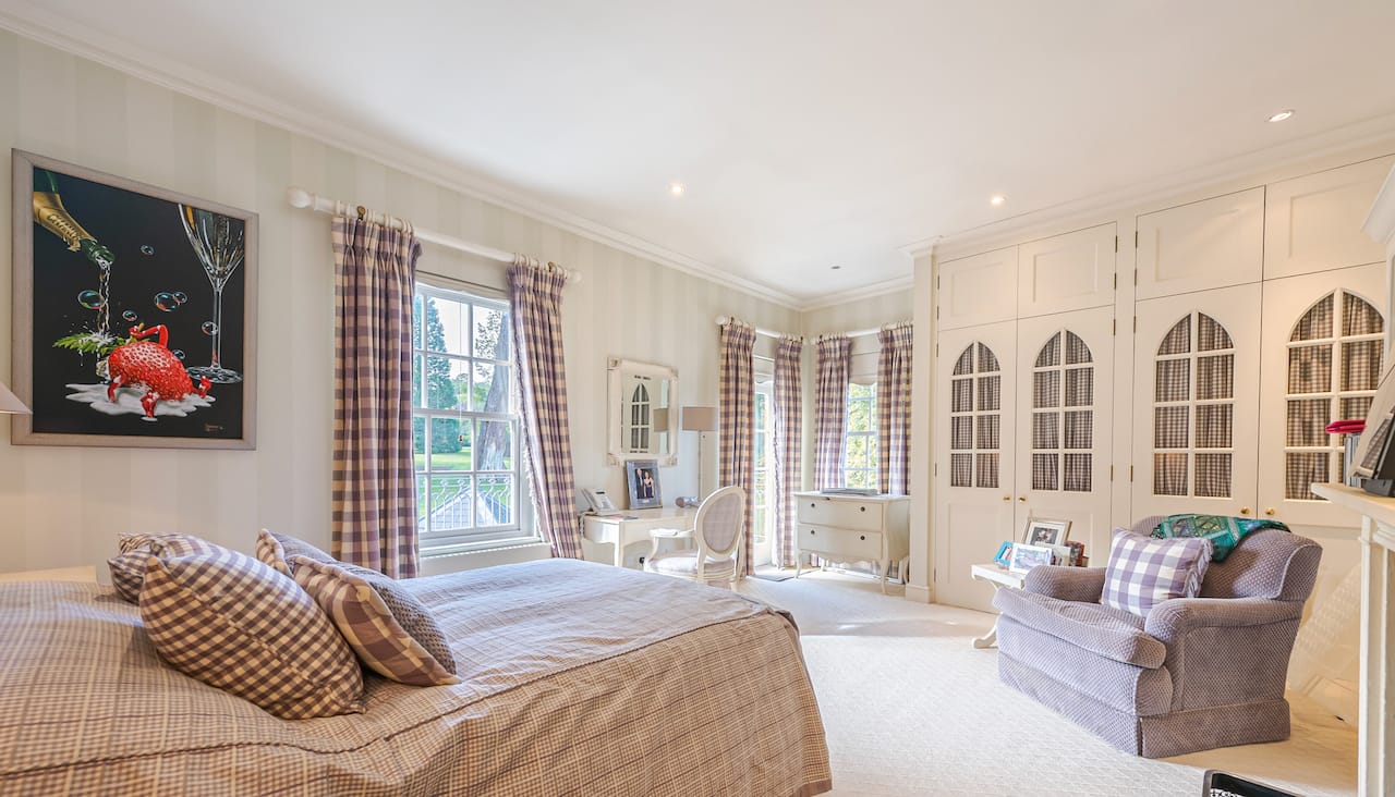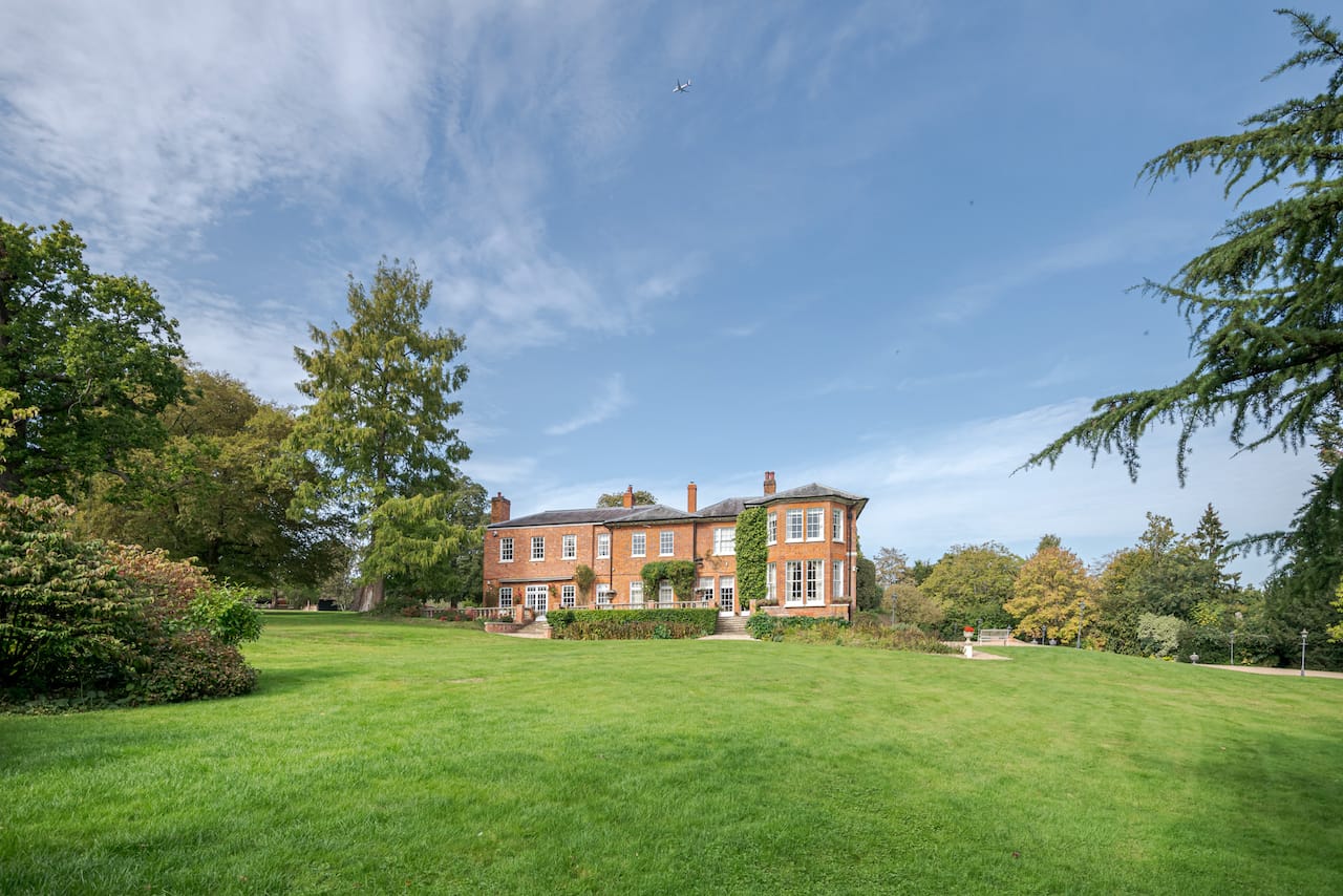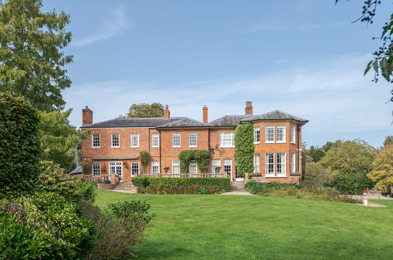 A magnificent, Grade 2 listed estate with 12 acres of land and period rooms. It has 7 bedrooms, 6 bathrooms, outdoor pool, tennis court, stables, heli pad and a large barn for shoots. Located in Bracknell, Berkshire RG42.