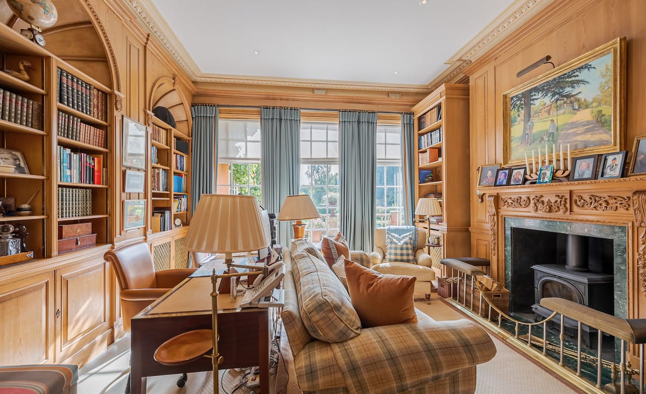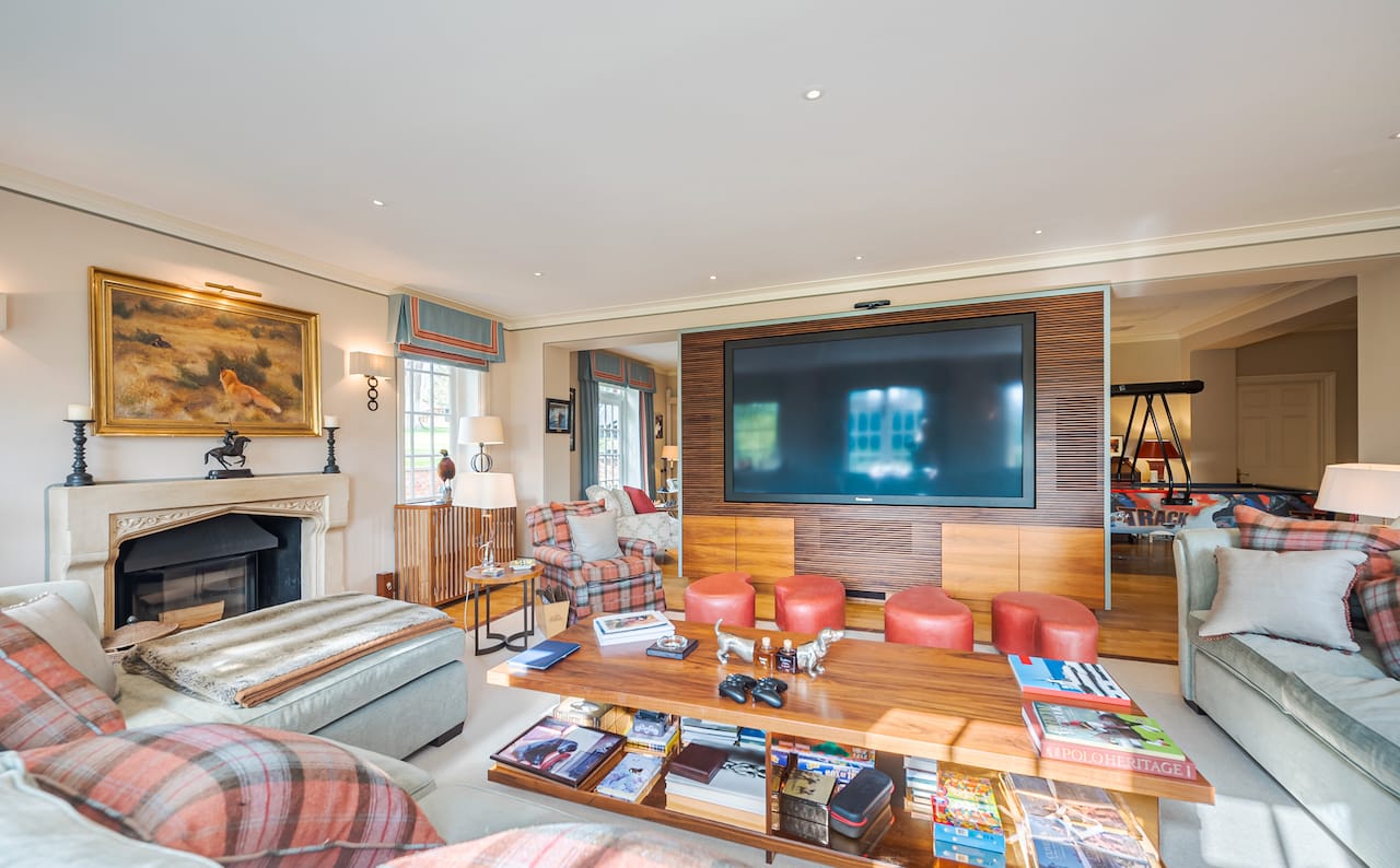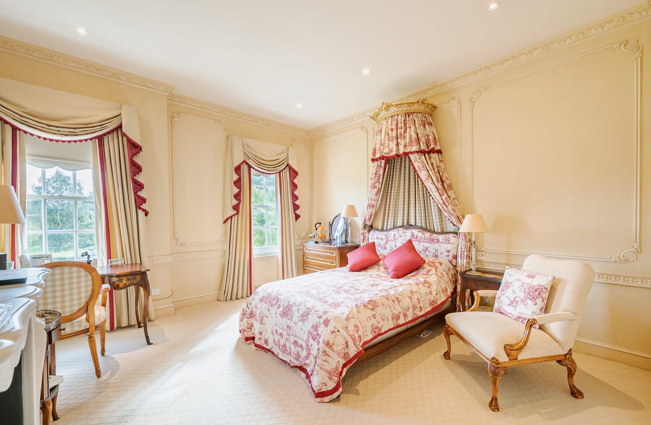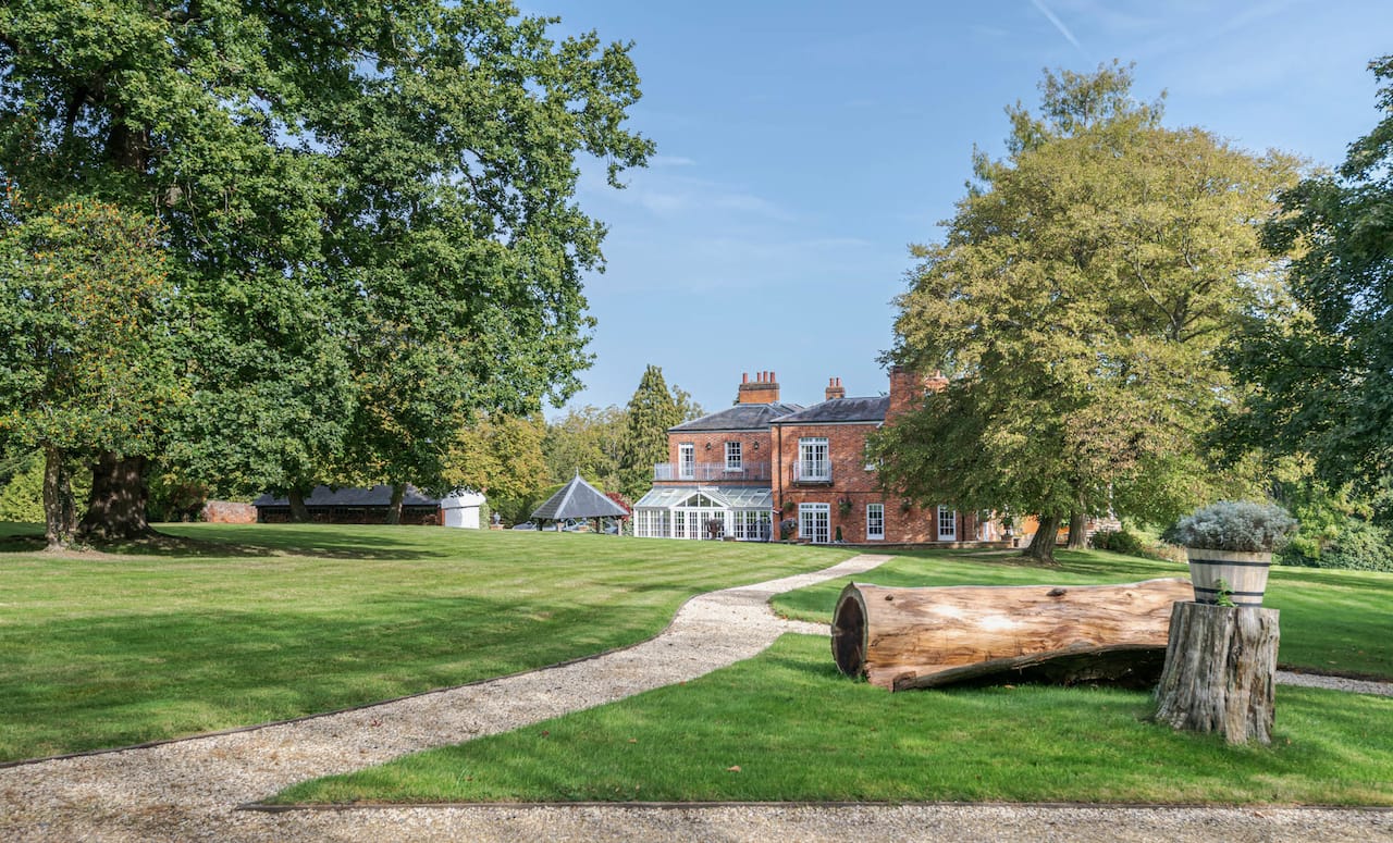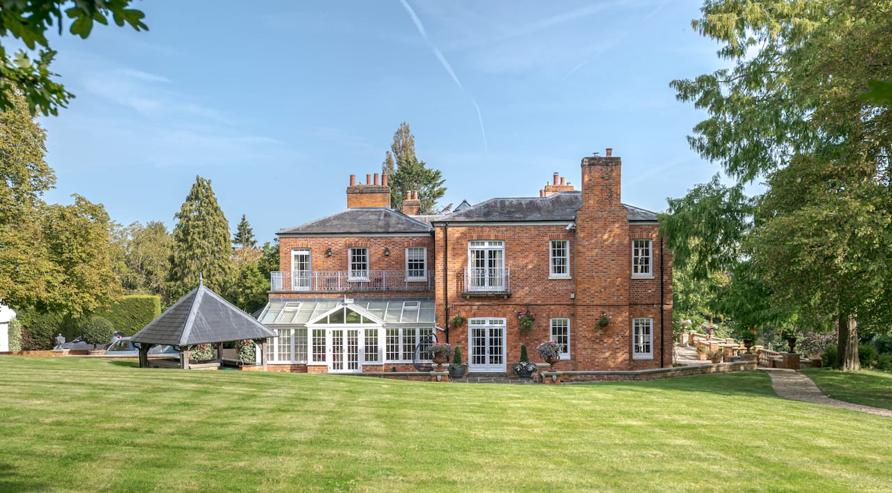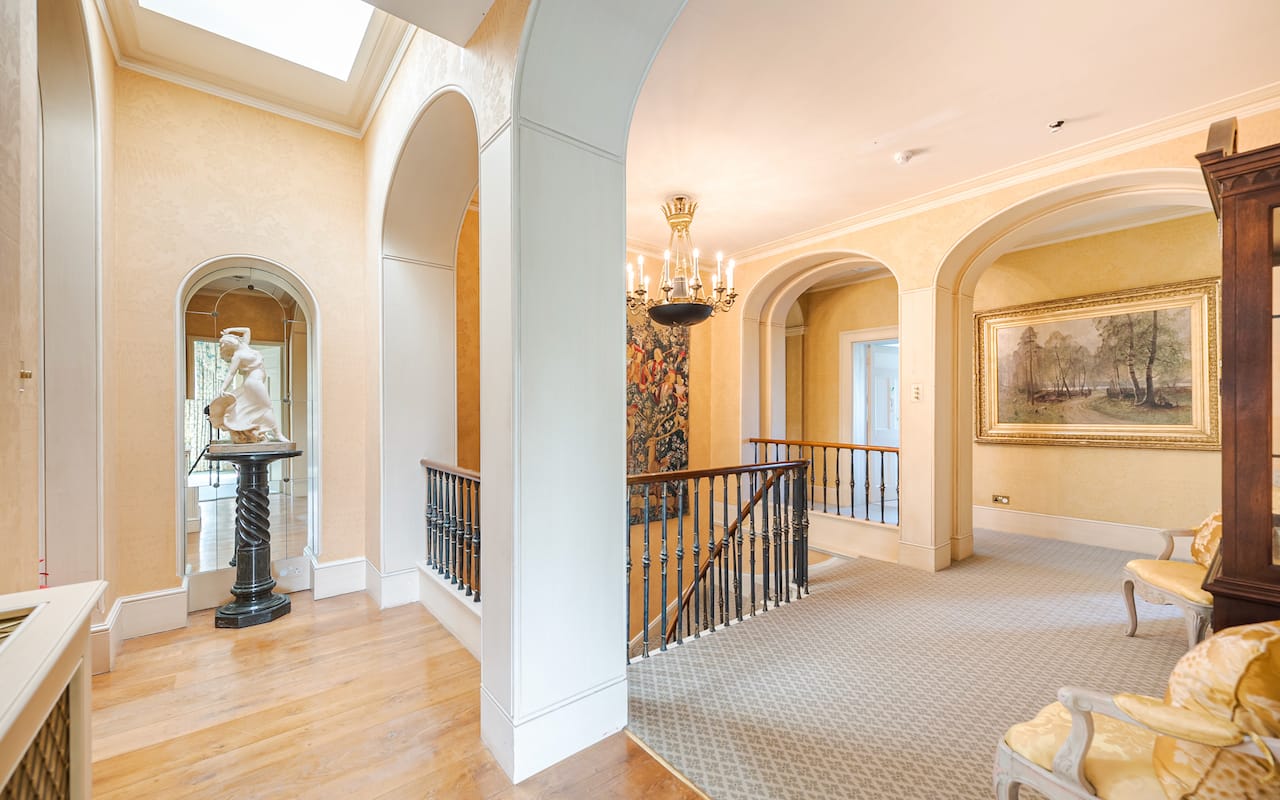 A magnificent, Grade 2 listed estate with 12 acres of land and period rooms. It has 7 bedrooms, 6 bathrooms, outdoor pool, tennis court, stables, heli pad and a large barn for shoots. Located in Bracknell, Berkshire RG42.