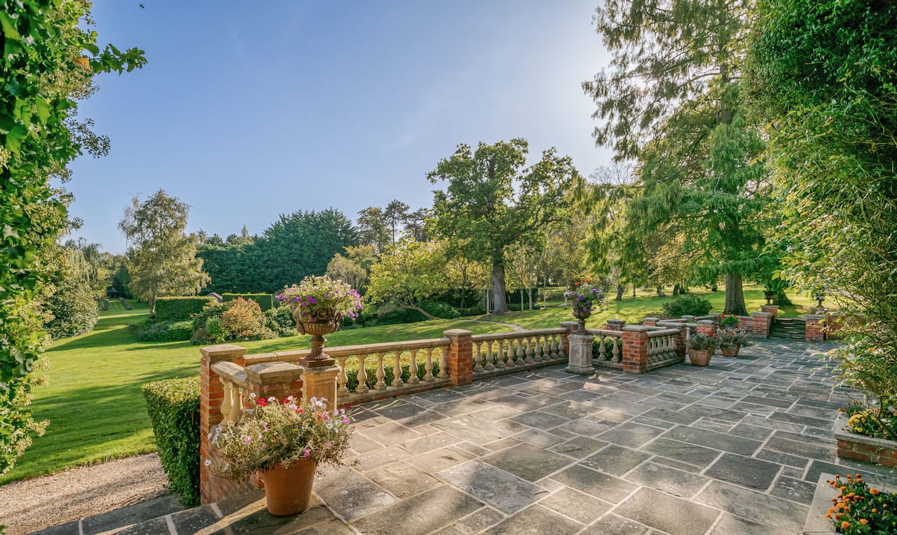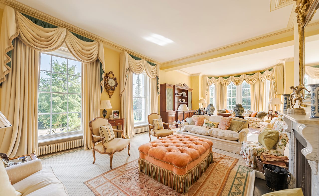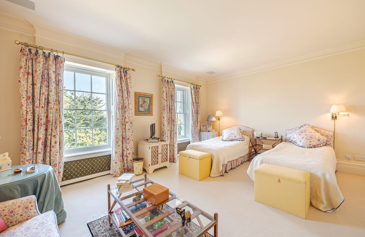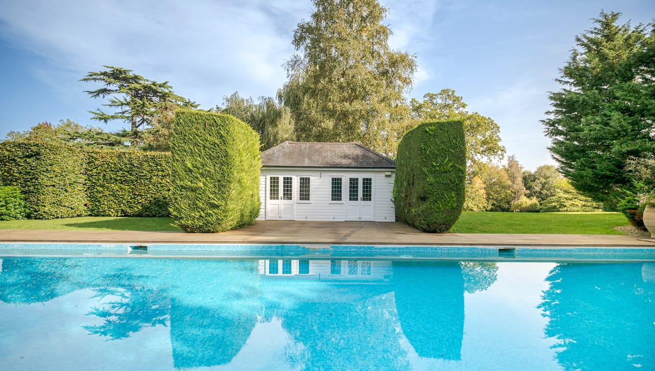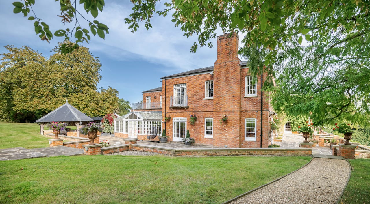 A magnificent, Grade 2 listed estate with 12 acres of land and period rooms. It has 7 bedrooms, 6 bathrooms, outdoor pool, tennis court, stables, heli pad and a large barn for shoots. Located in Bracknell, Berkshire RG42.
