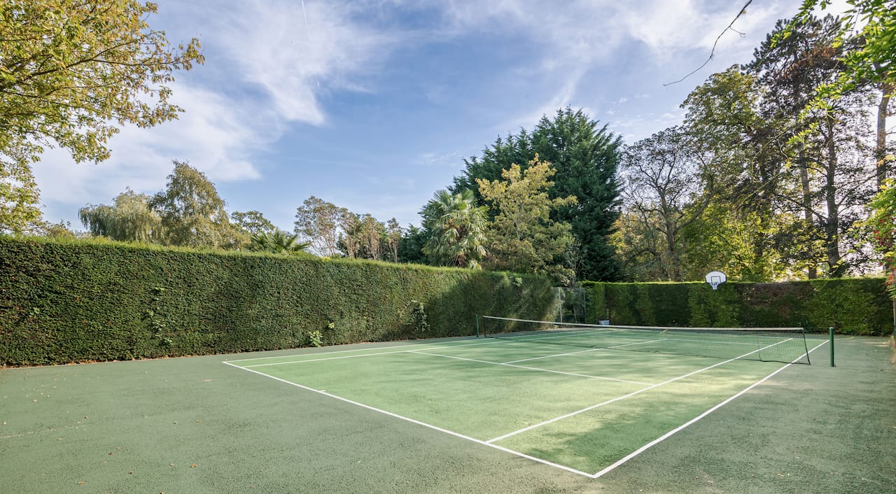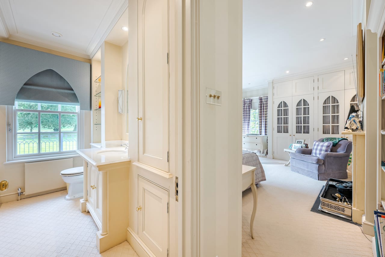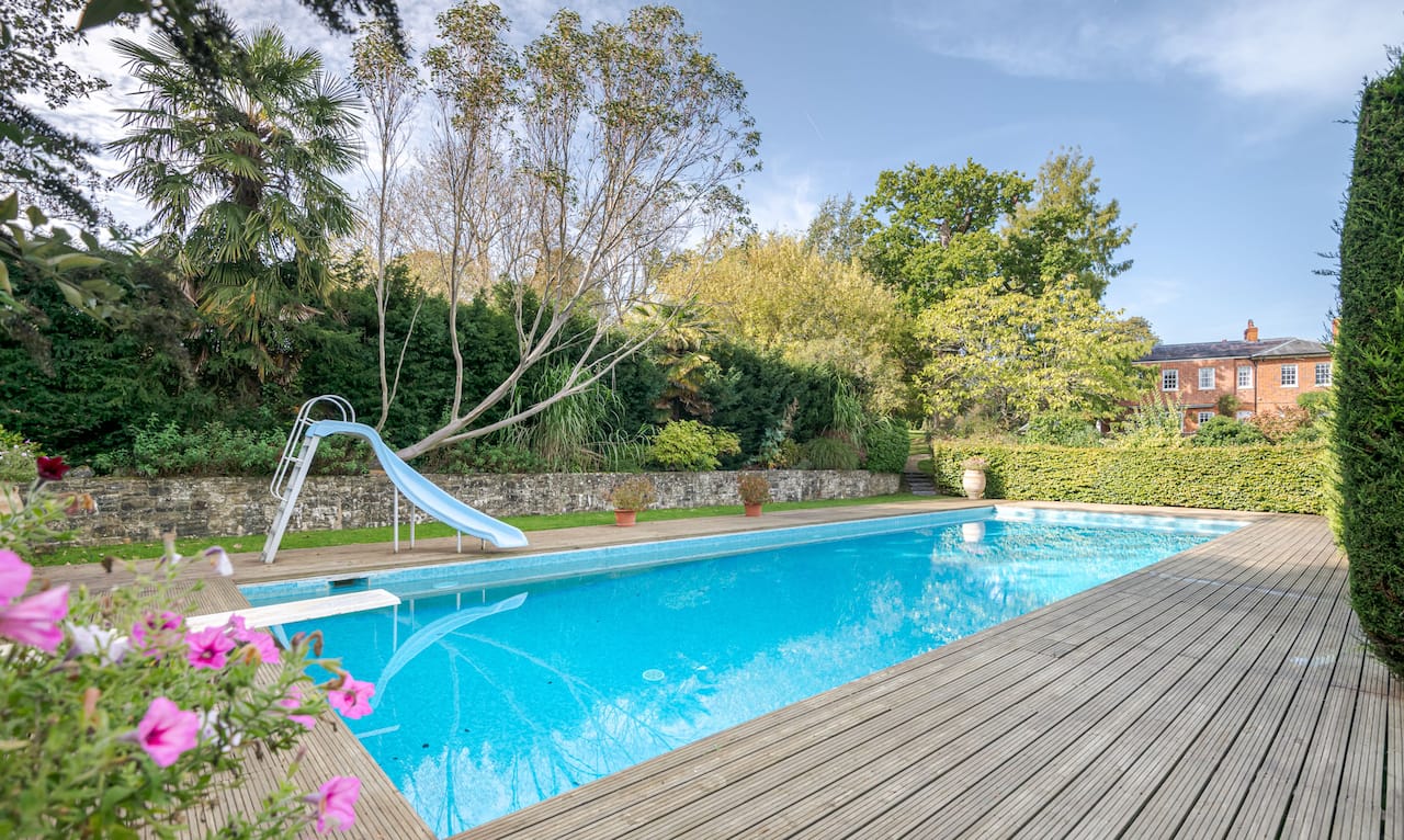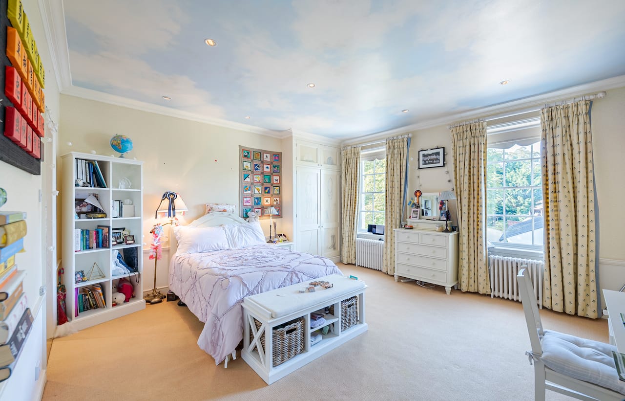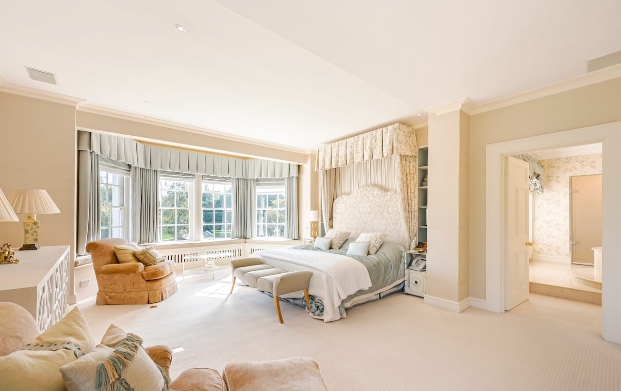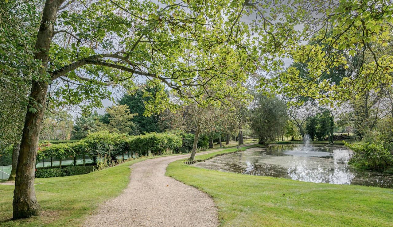 A magnificent, Grade 2 listed estate with 12 acres of land and period rooms. It has 7 bedrooms, 6 bathrooms, outdoor pool, tennis court, stables, heli pad and a large barn for shoots. Located in Bracknell, Berkshire RG42.