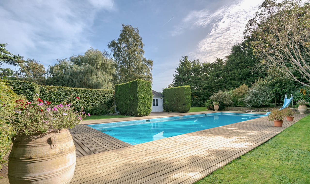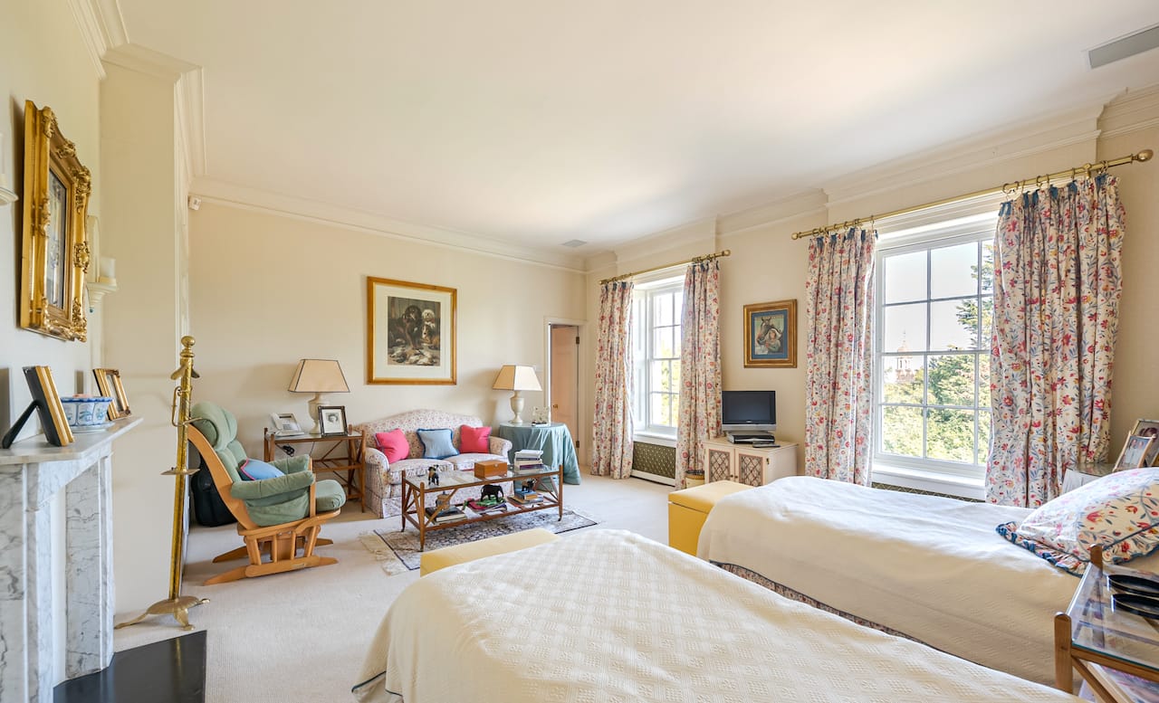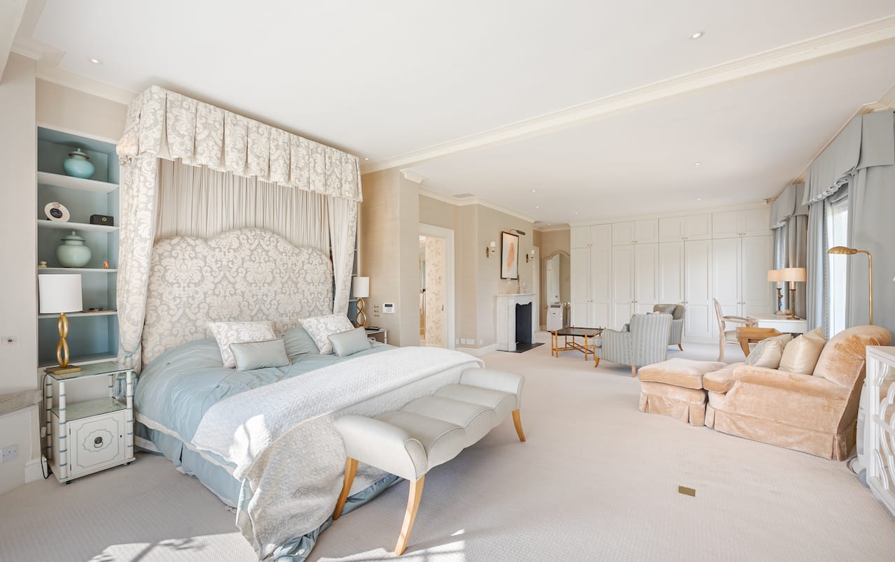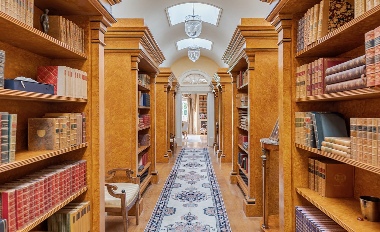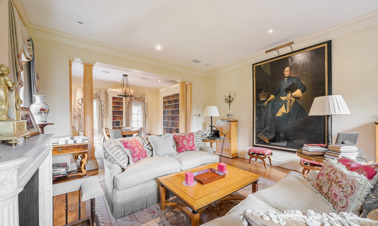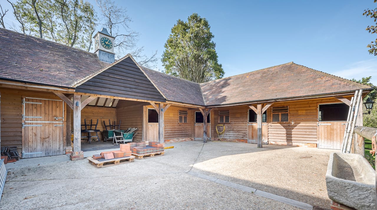 A magnificent, Grade 2 listed estate with 12 acres of land and period rooms. It has 7 bedrooms, 6 bathrooms, outdoor pool, tennis court, stables, heli pad and a large barn for shoots. Located in Bracknell, Berkshire RG42.