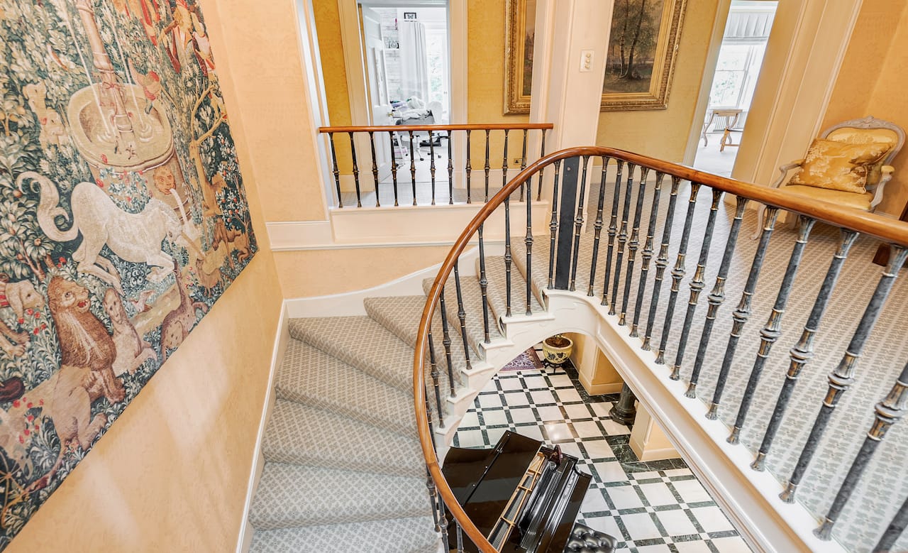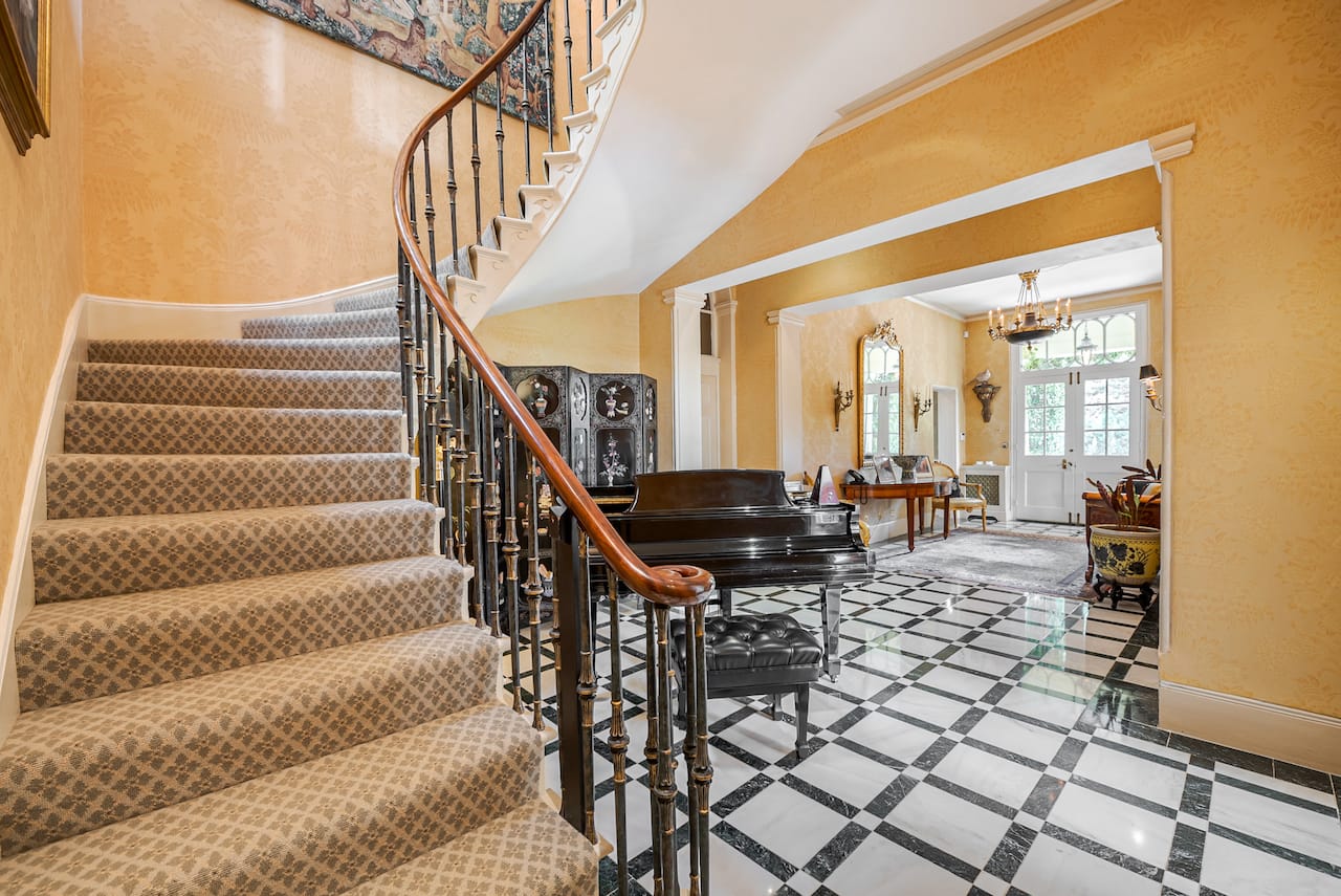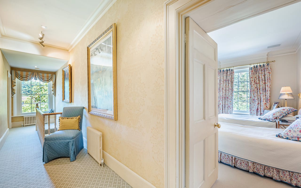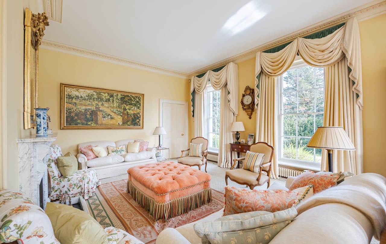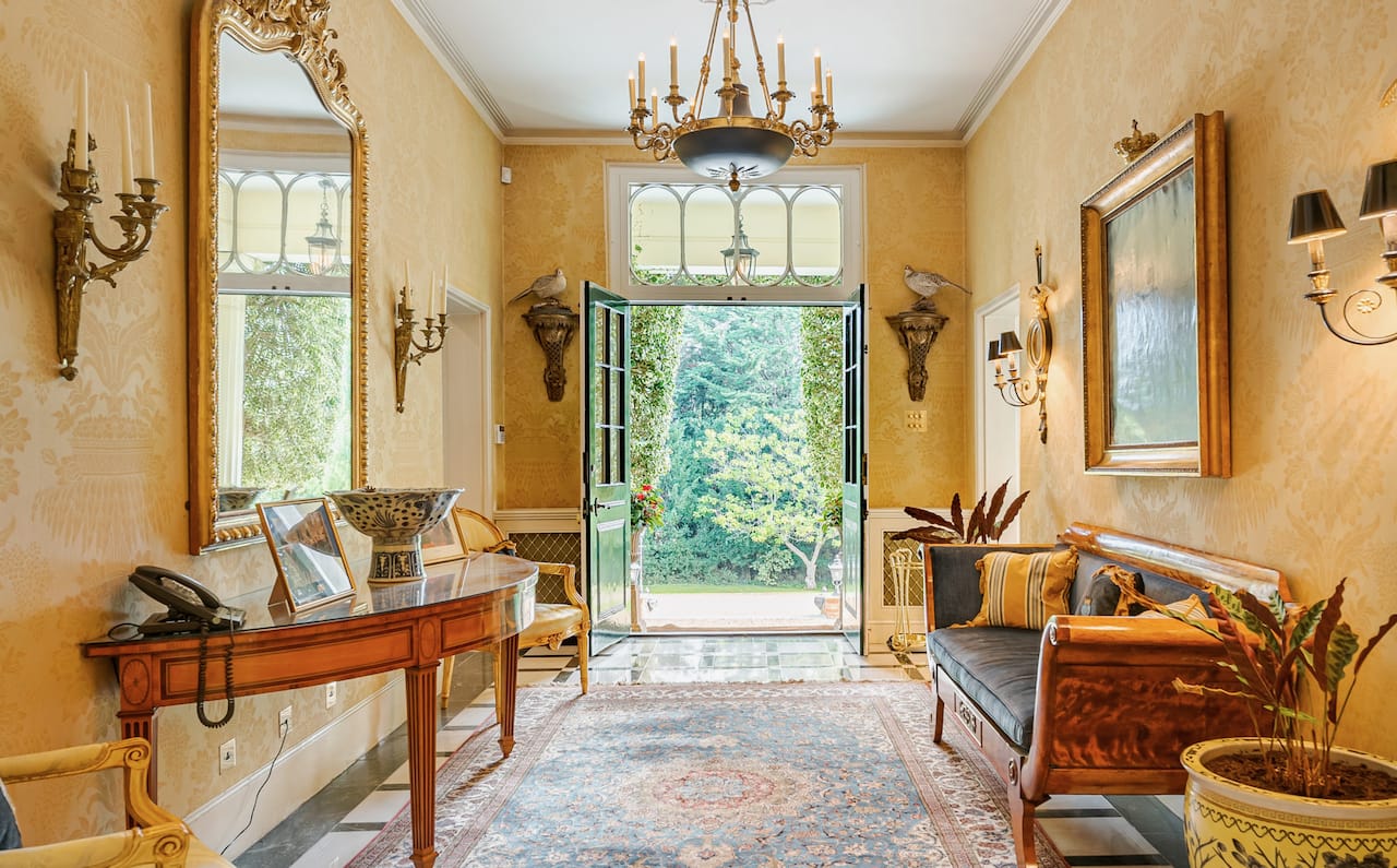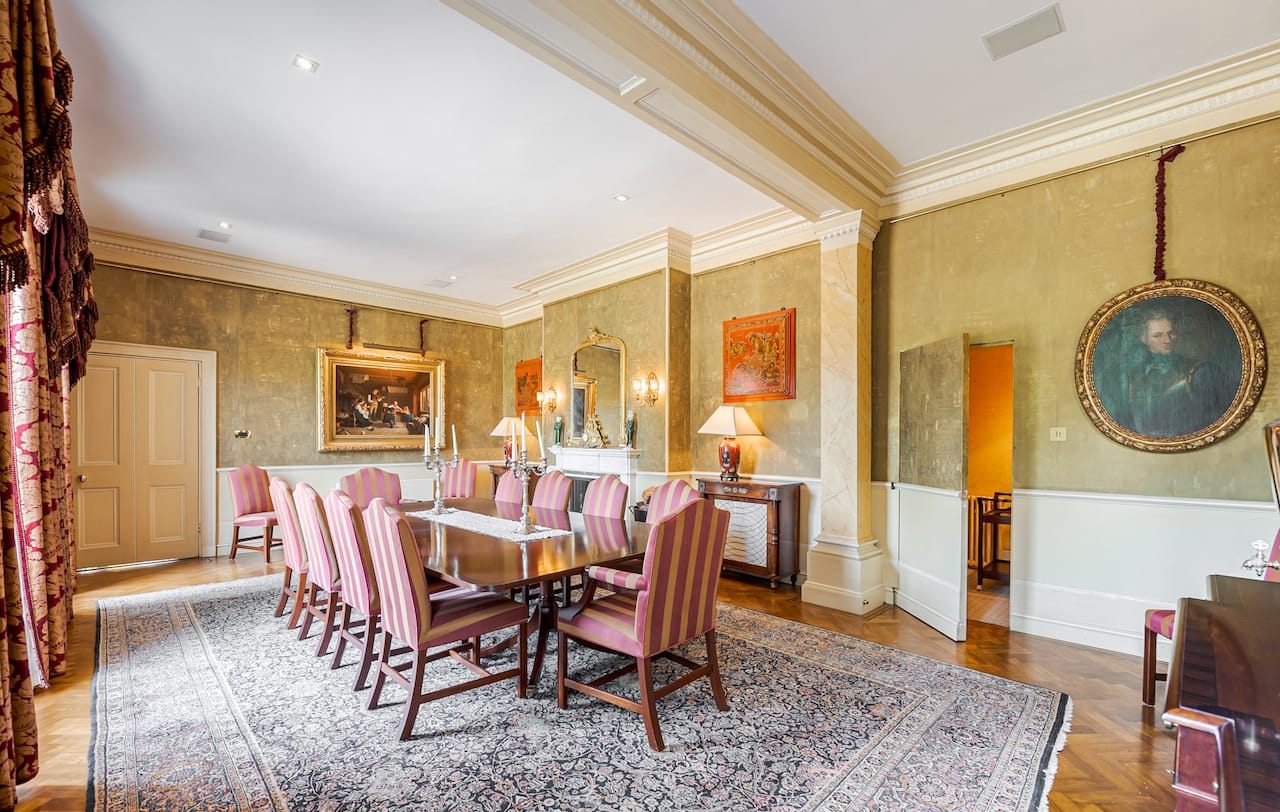 A magnificent, Grade 2 listed estate with 12 acres of land and period rooms. It has 7 bedrooms, 6 bathrooms, outdoor pool, tennis court, stables, heli pad and a large barn for shoots. Located in Bracknell, Berkshire RG42.