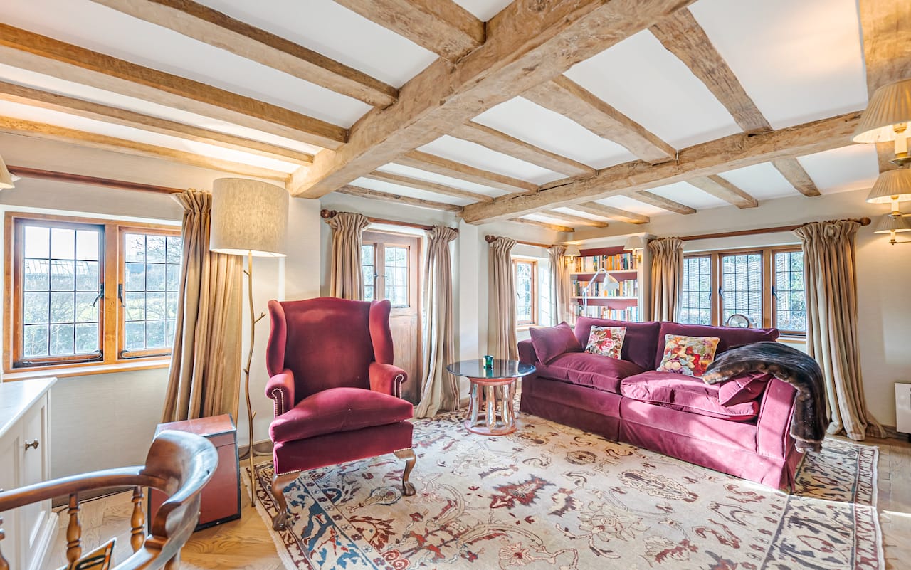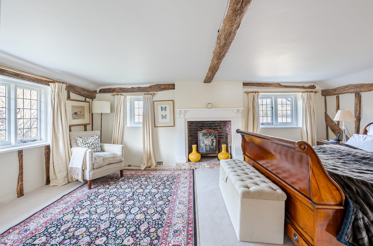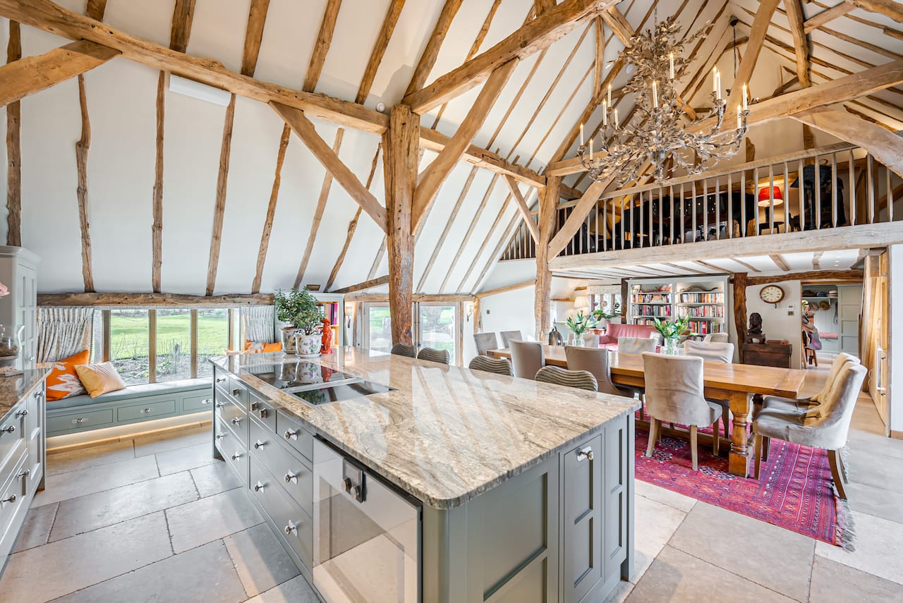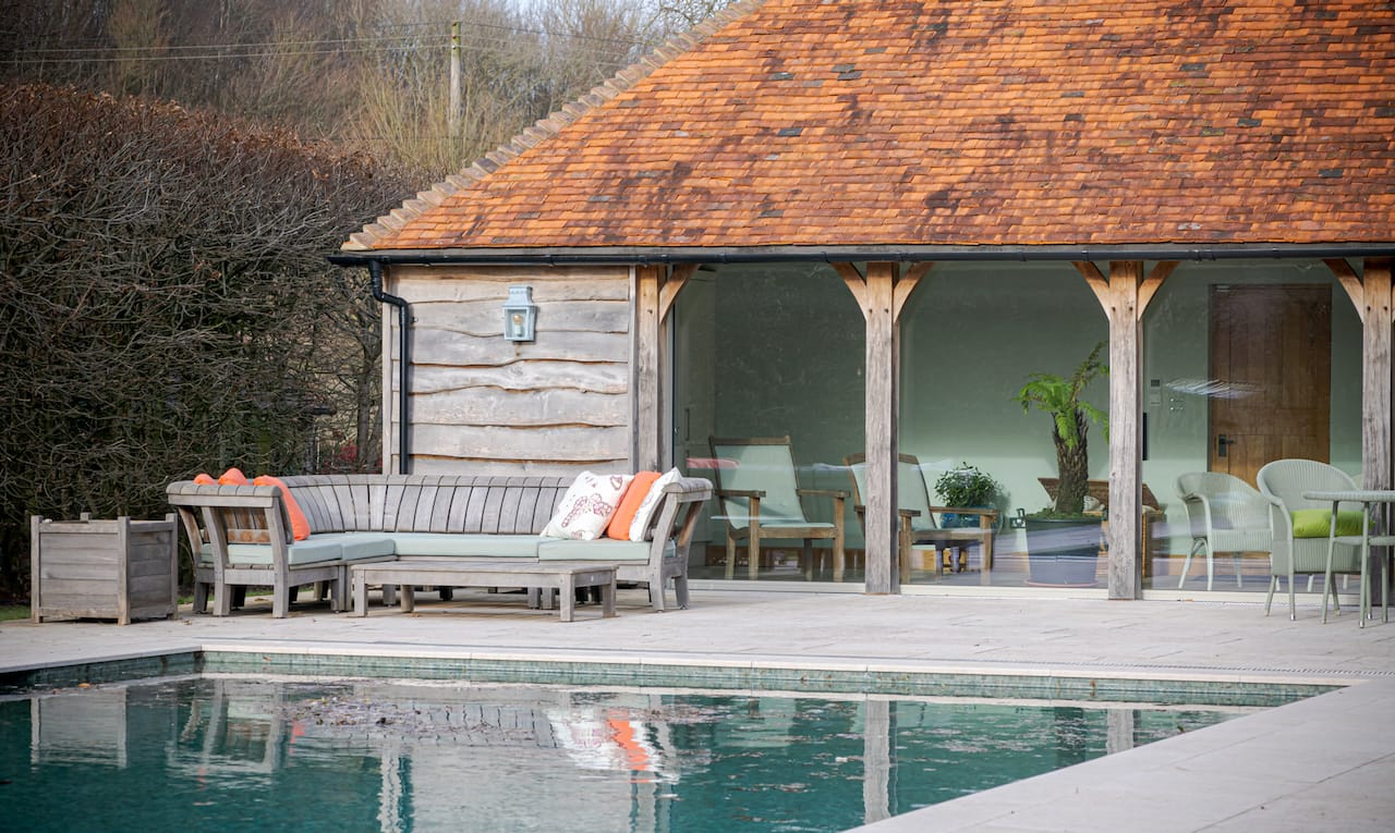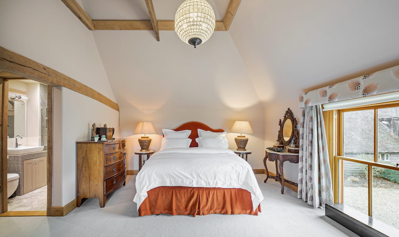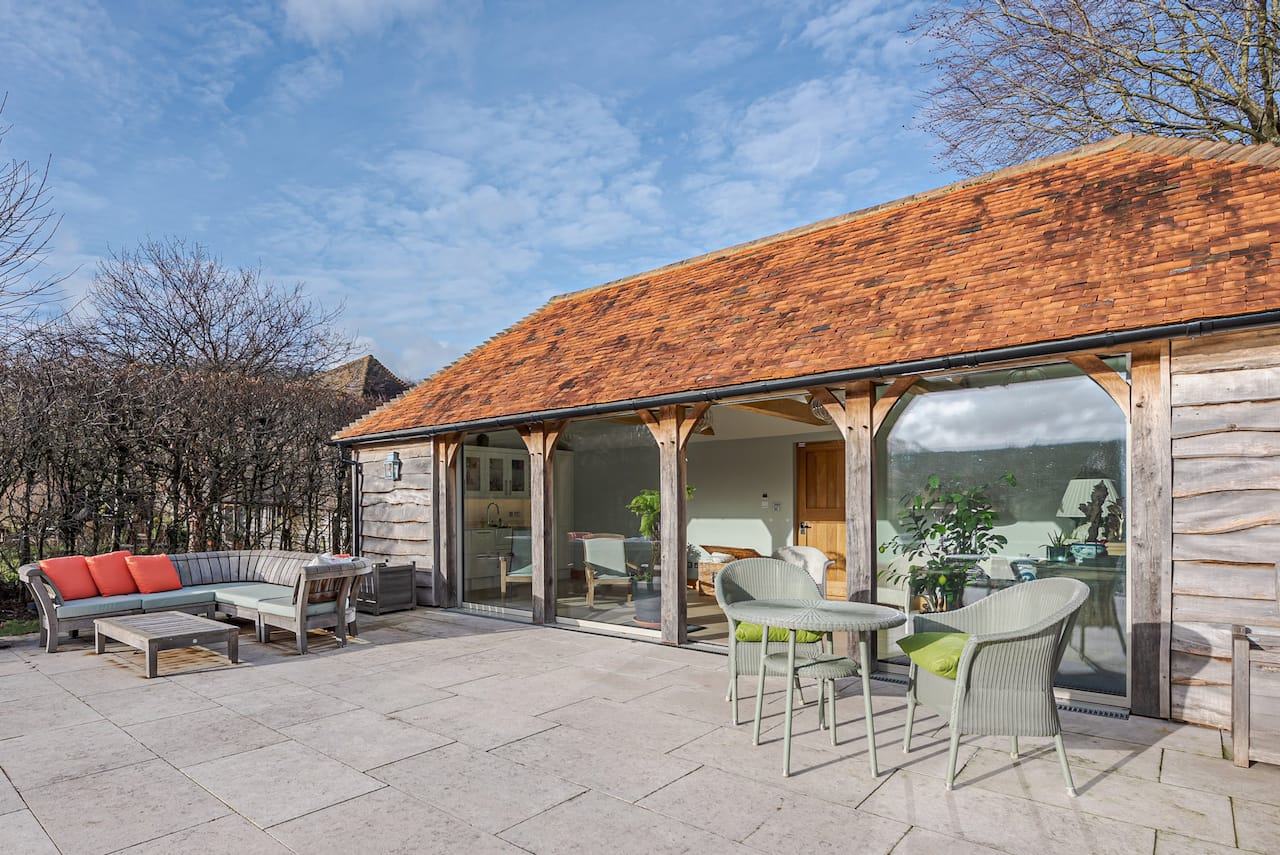 A late 16th Century Country House with fully furnished converted barn, swimming pool & pool house, stable yard, fields & paddocks . A traditional English cottage with valley views (North Downs), located in Kent, TN15.