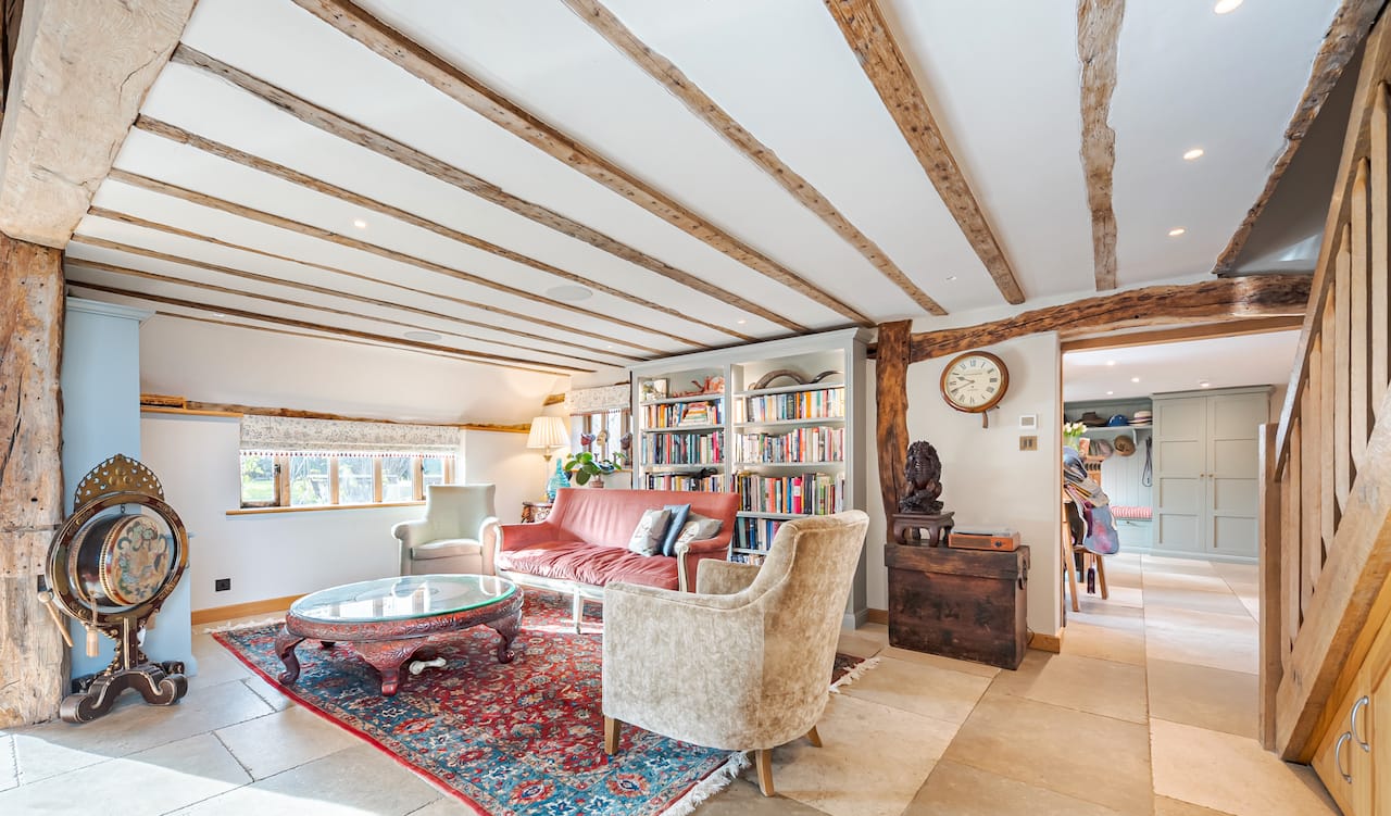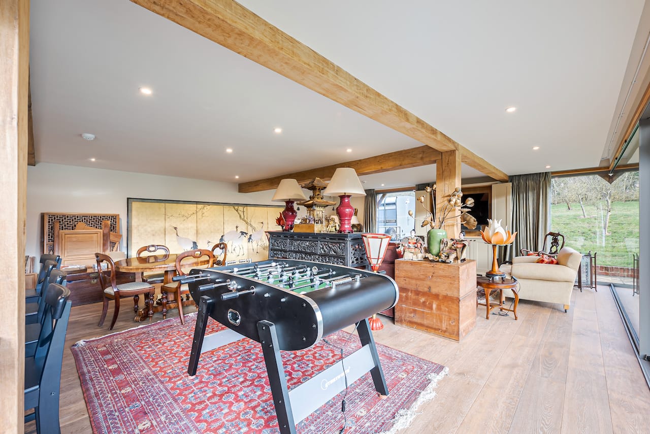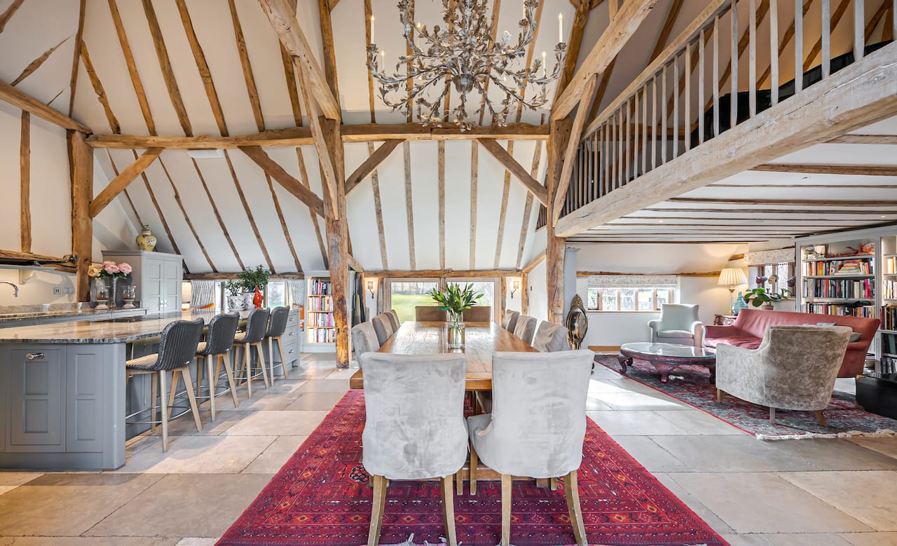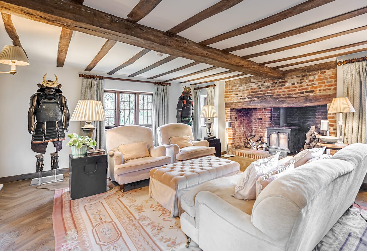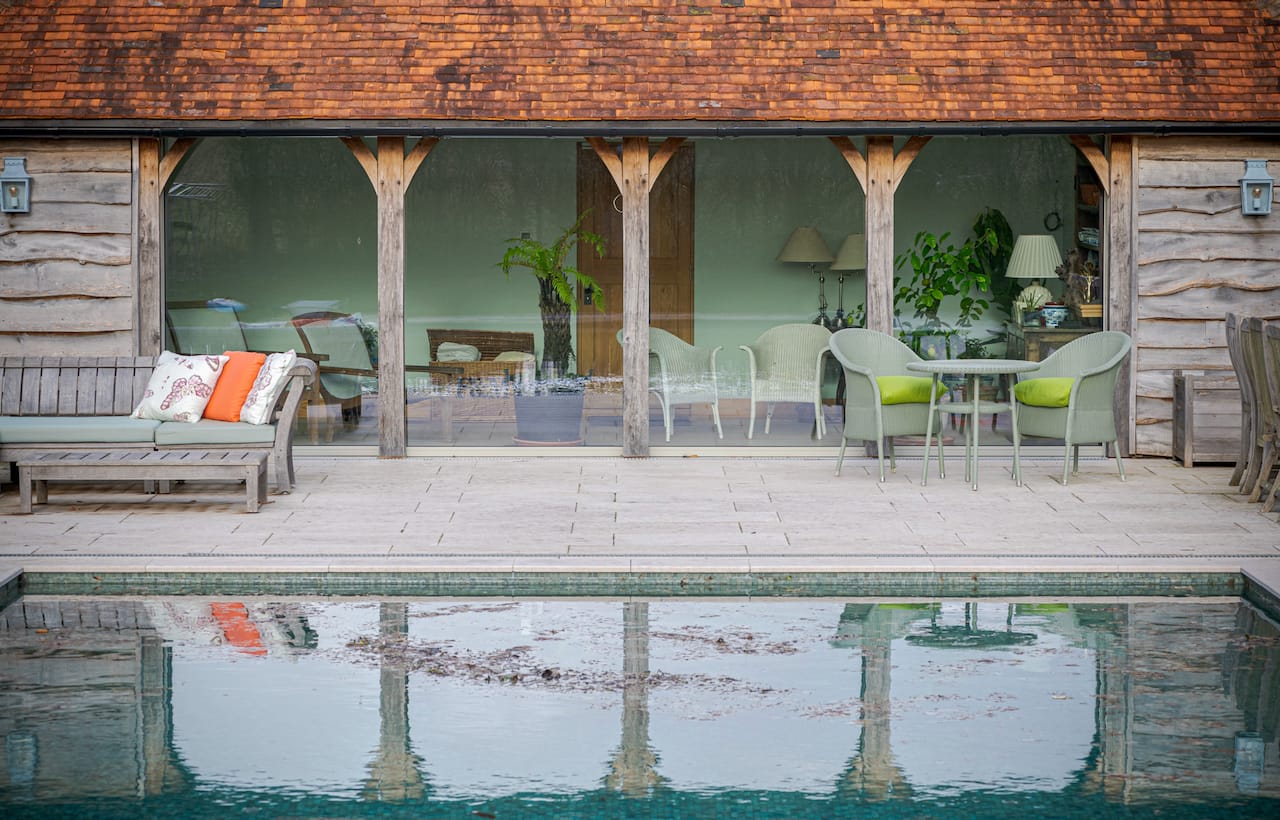 A late 16th Century Country House with fully furnished converted barn, swimming pool & pool house, stable yard, fields & paddocks . A traditional English cottage with valley views (North Downs), located in Kent, TN15.