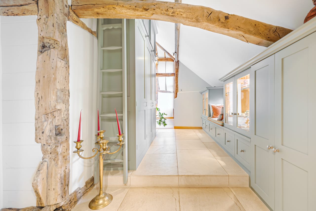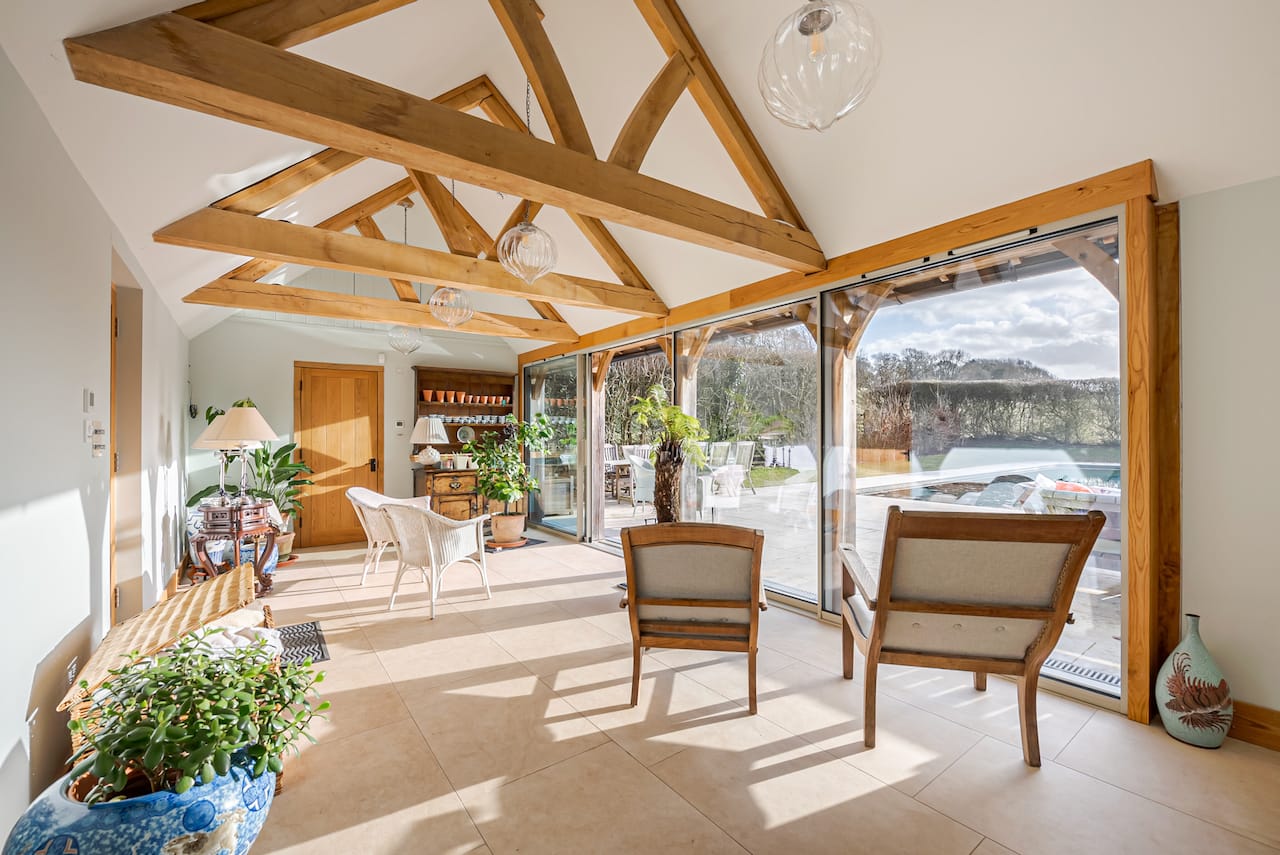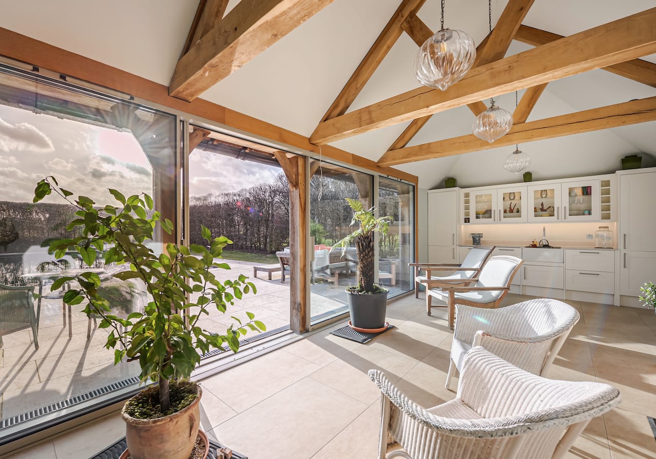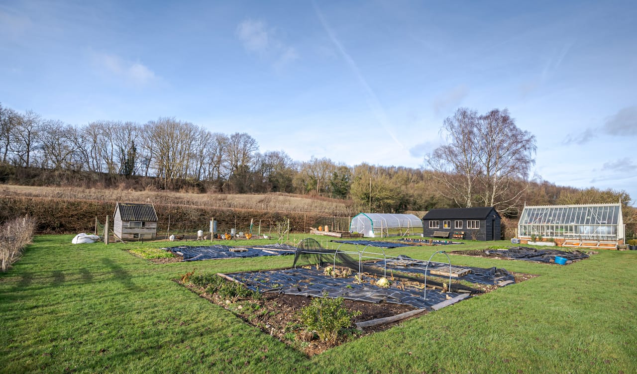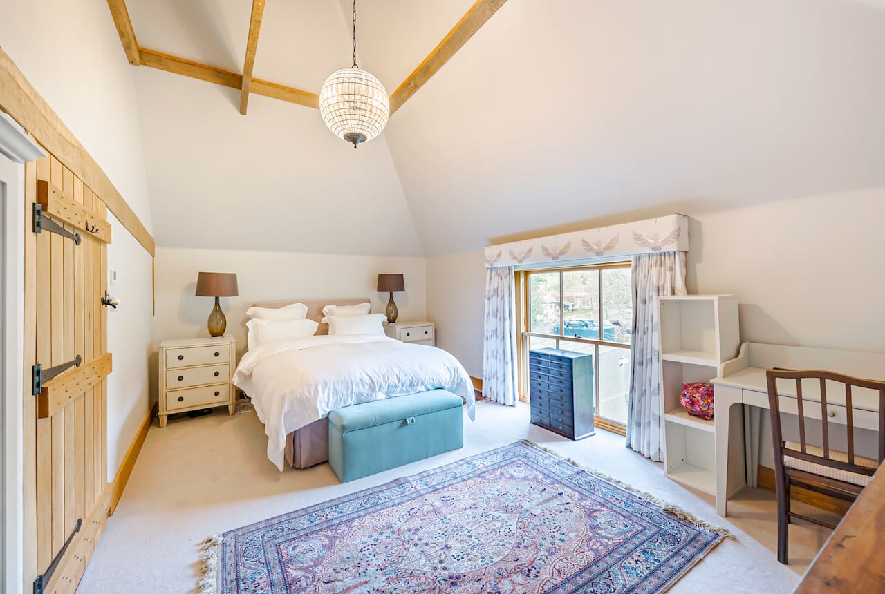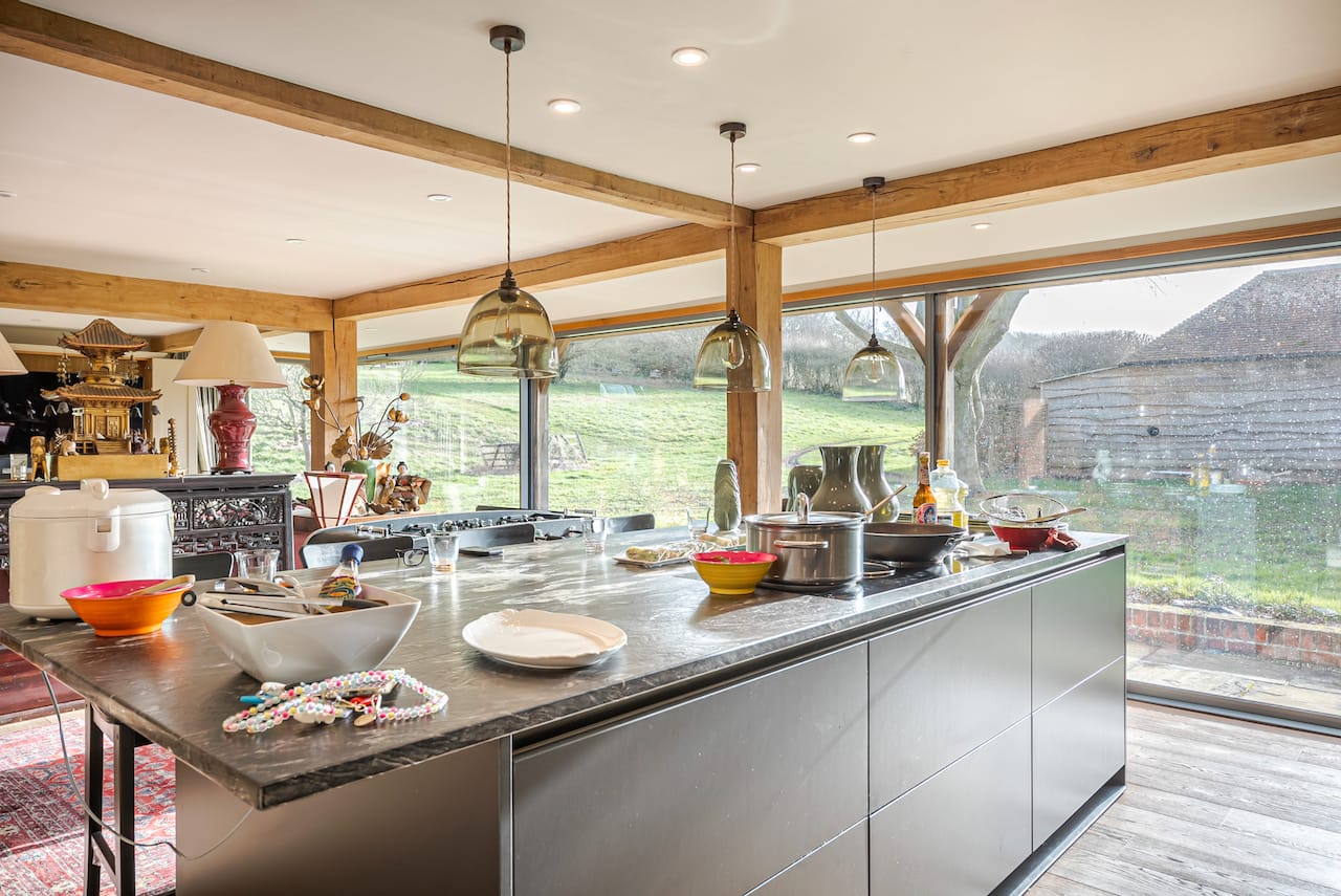 A late 16th Century Country House with fully furnished converted barn, swimming pool & pool house, stable yard, fields & paddocks . A traditional English cottage with valley views (North Downs), located in Kent, TN15.