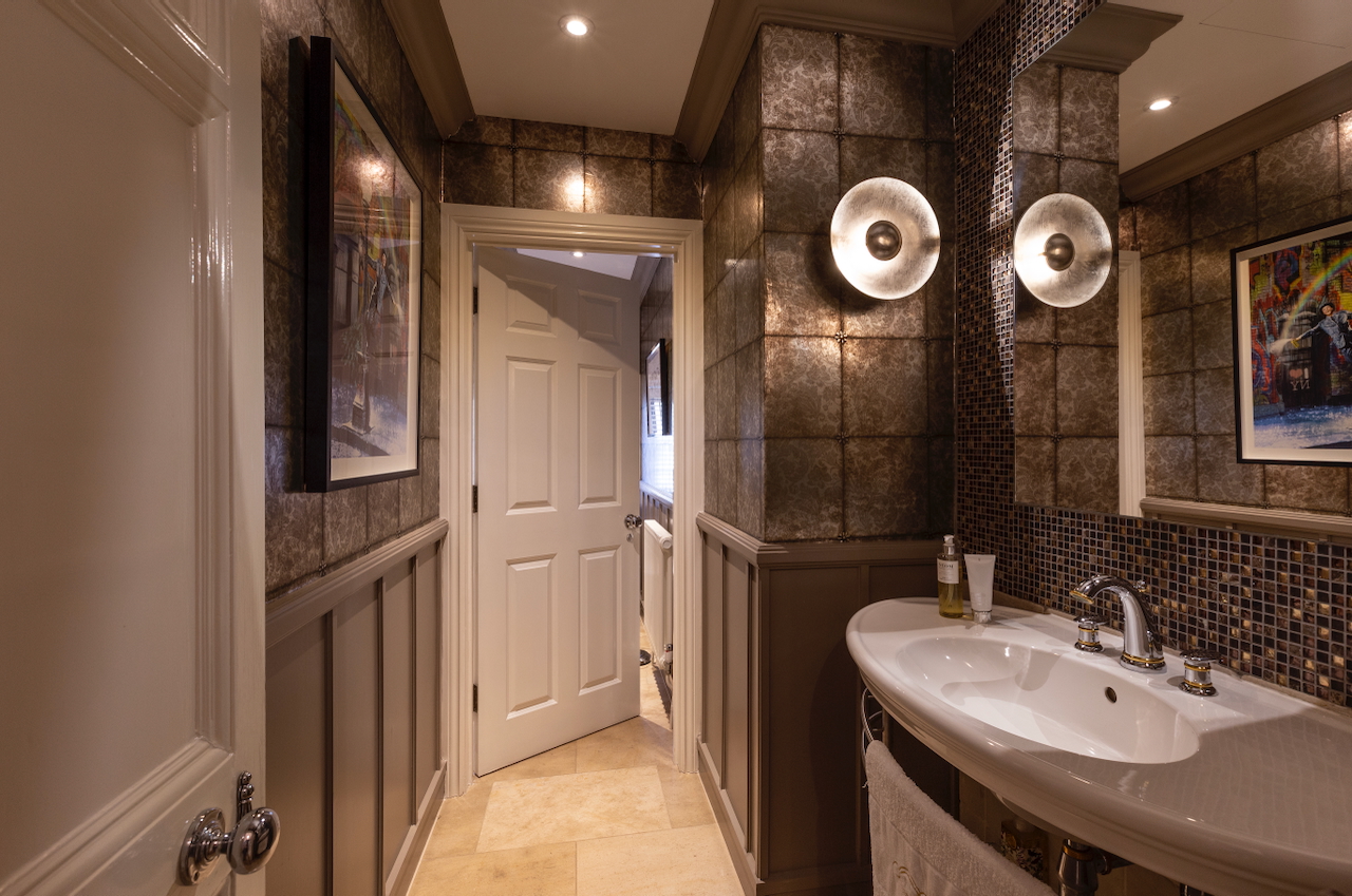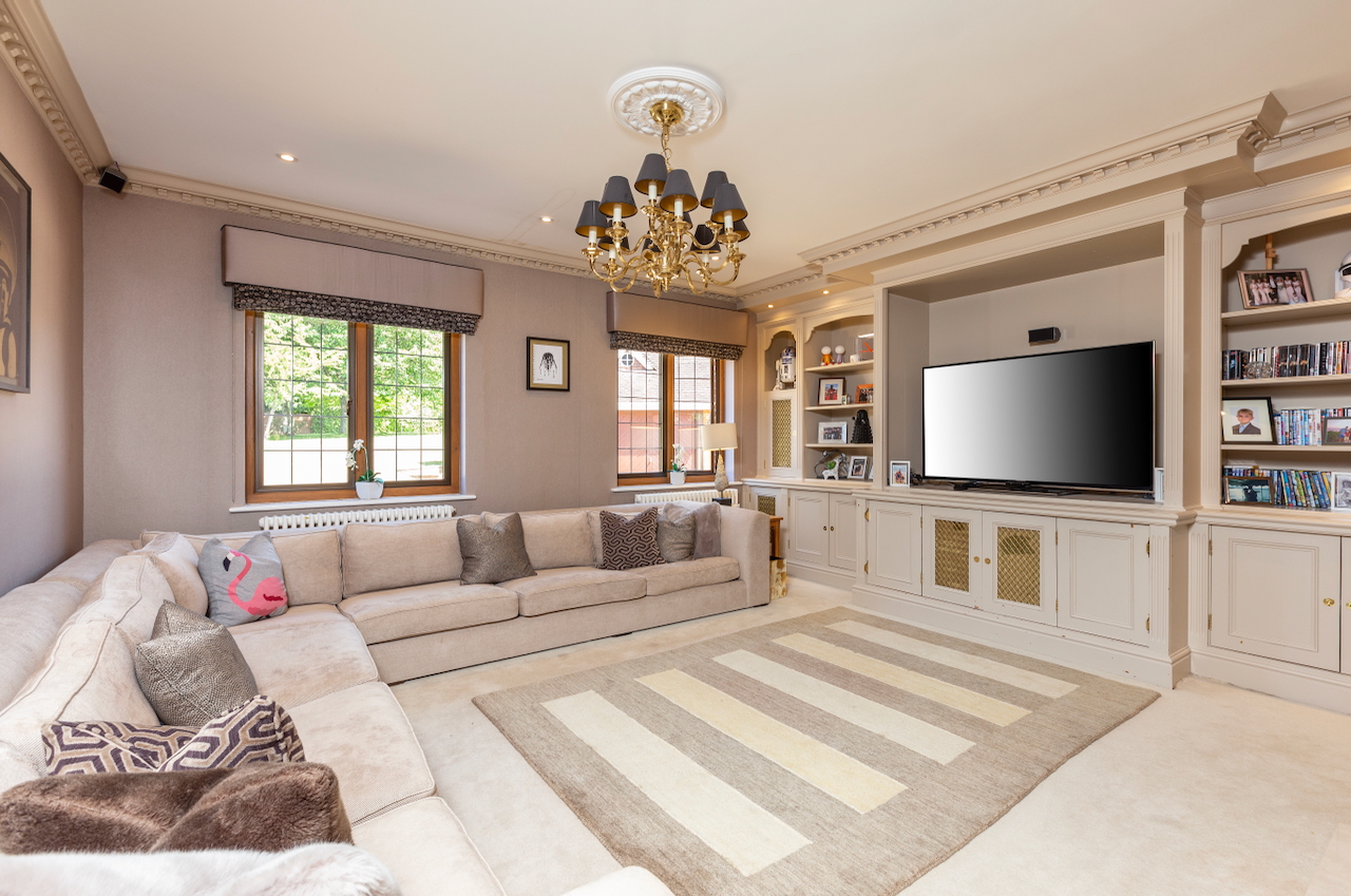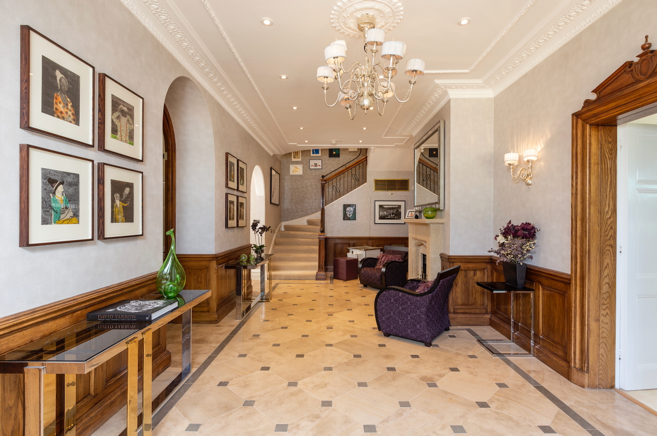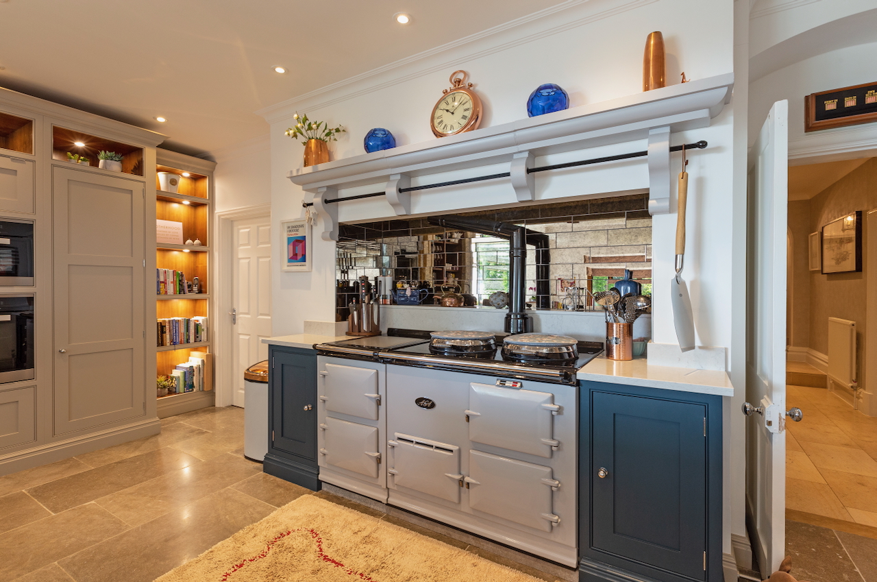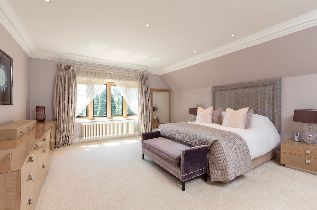 A stunning combination of traditional and an modern glass extension. Large open plan living that opens up to the 10 acre garden with lots of onsite parking, outbuildings and shoot + stay options. Comes with separate indoor pool, gym and tennis court. Located in Surrey.