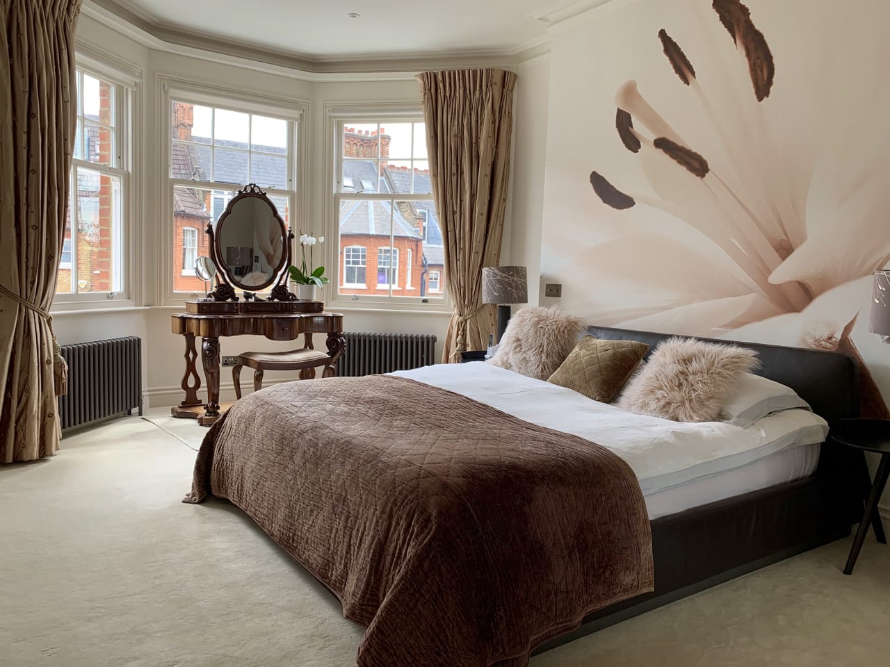 A beautiful Queen Anne Revival terraced house in Brixton, SW2. The house is super stylish and has a stunning open plan kitchen, sitting room and formal drawing room.It has 2 large double bedrooms, and 2 bathroom/shower rooms. The garden is gorgeous with an out door table, outdoor seating, faux lawn and an oak hot tub.