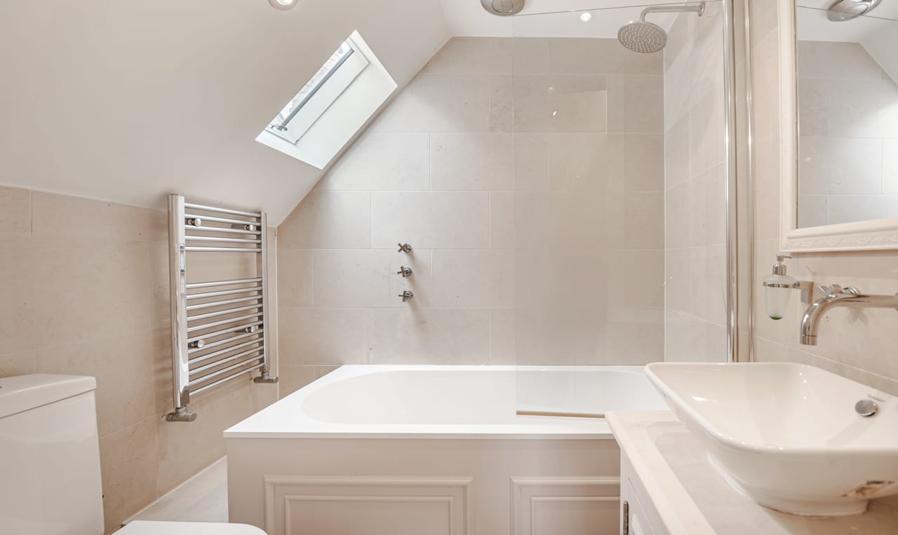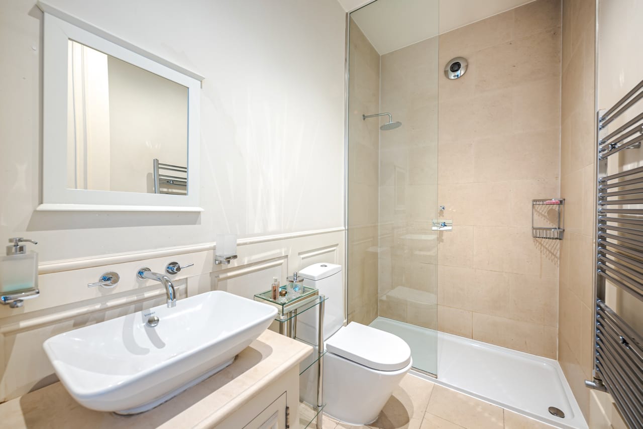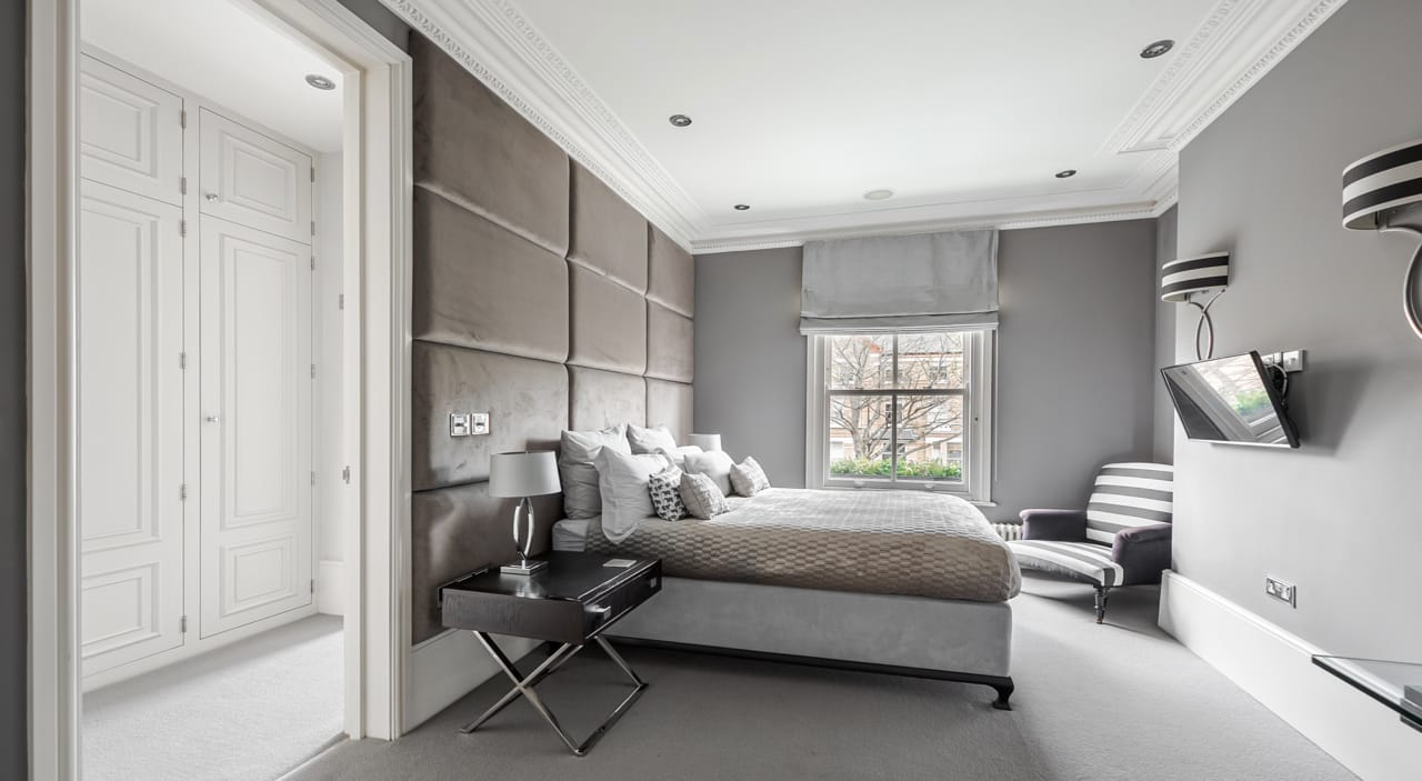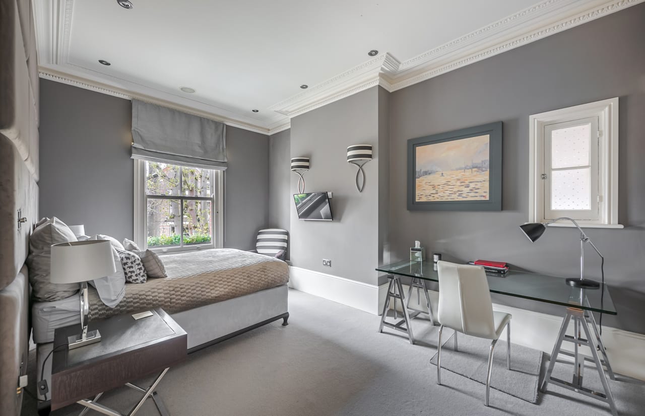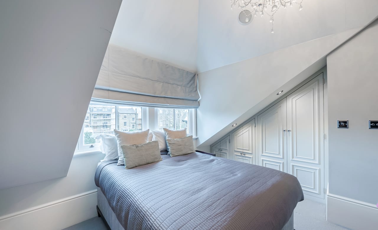 A large Victorian house in Clapham Old Town. It is beautifully decorated with bespoke artwork and soho house-style interior design. The open plan kitchen has a huge island bench and moving ladder on the cupboards. There are french doors opening out onto the outdoor seating and a lovely garden.
