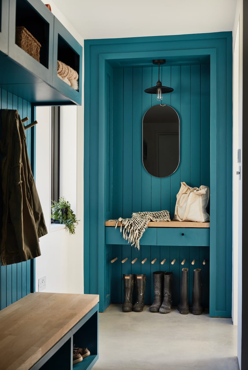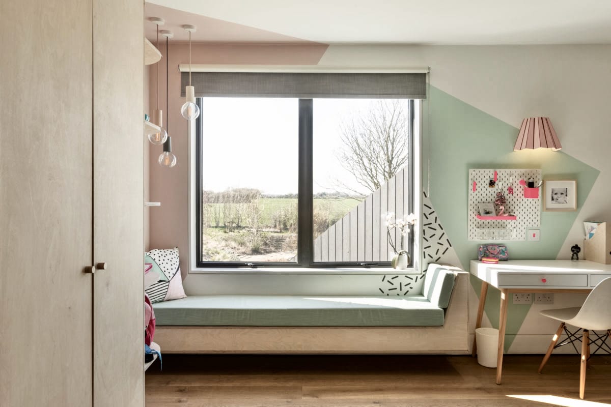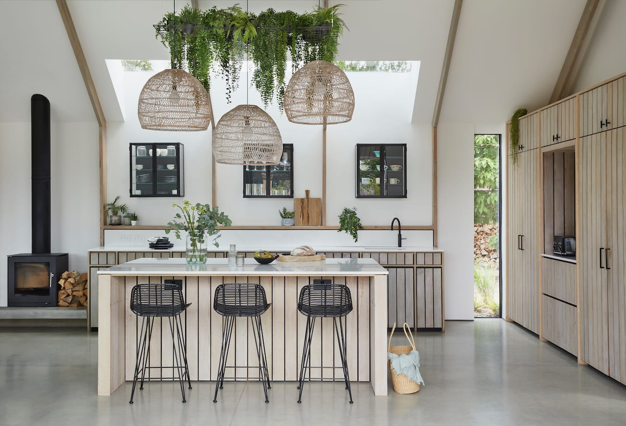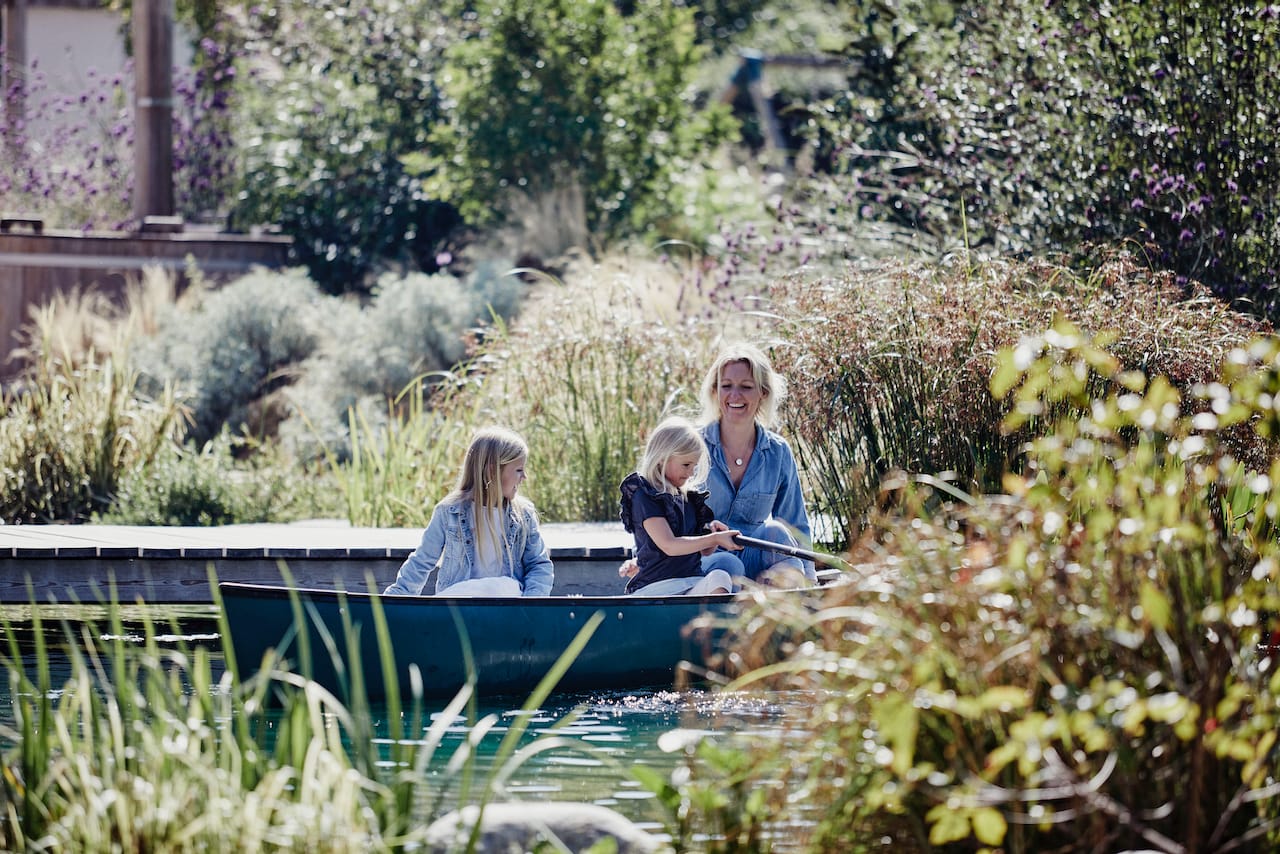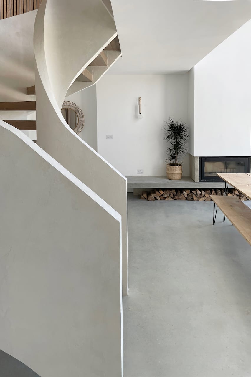 A new-build house on a 1.5 acre site, within both a Site of Special Scientific Interest and a Area of Outstanding Natural Beauty. The main home is formed of two parts; a two storey component anchors into the ground with a flint plinth whilst its smaller single storey sister hovers over a breathtaking Natural Swimming Pond.