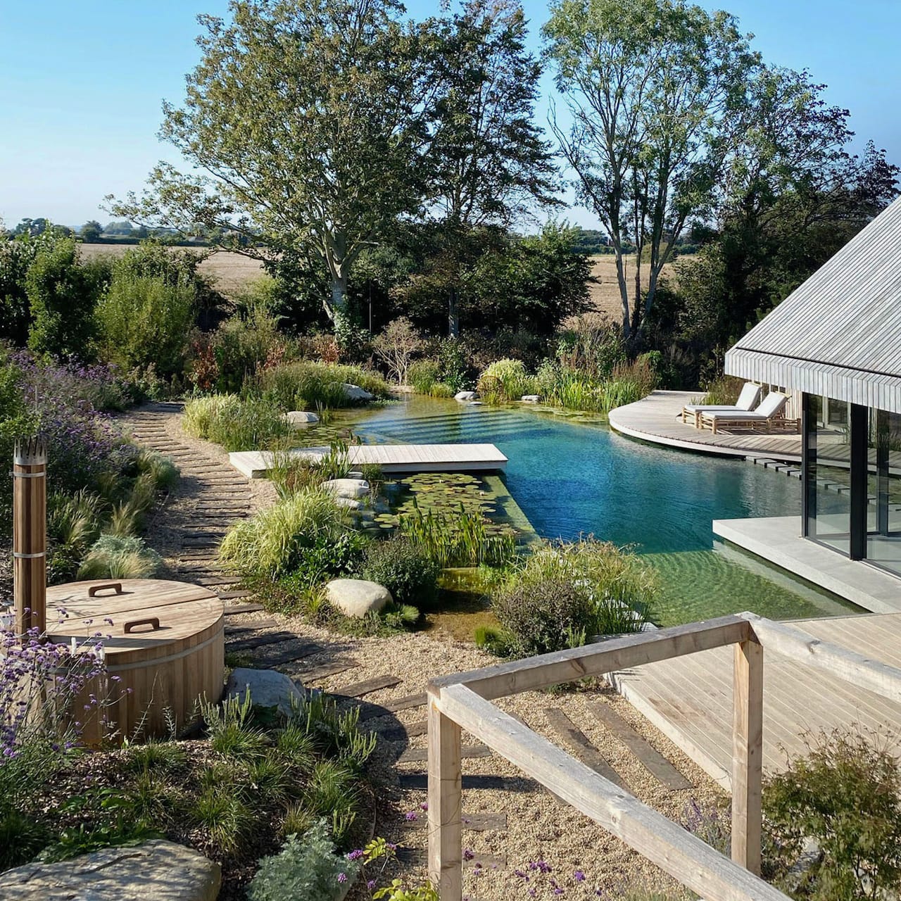 Features: Carefully designed landscaping / Highly energy efficient / Ground Source Heat Pump / Photovoltaics / Water Harvesting & Recycling / Thermally High Performing Materials / Pool Cabin / Art Studio / Garage / Tennis Court / Outdoor Dining / Hot Tub / Wildlife & Sculpture Trail.