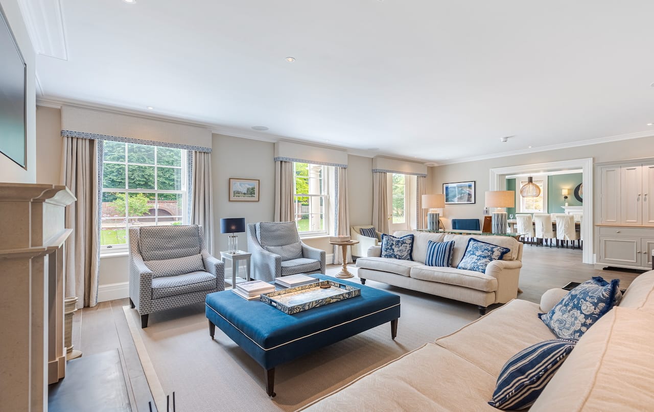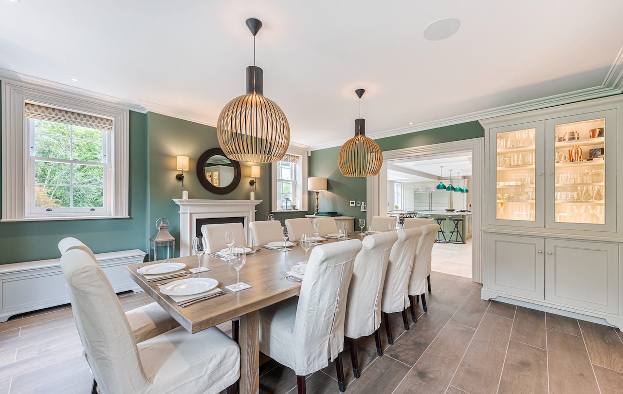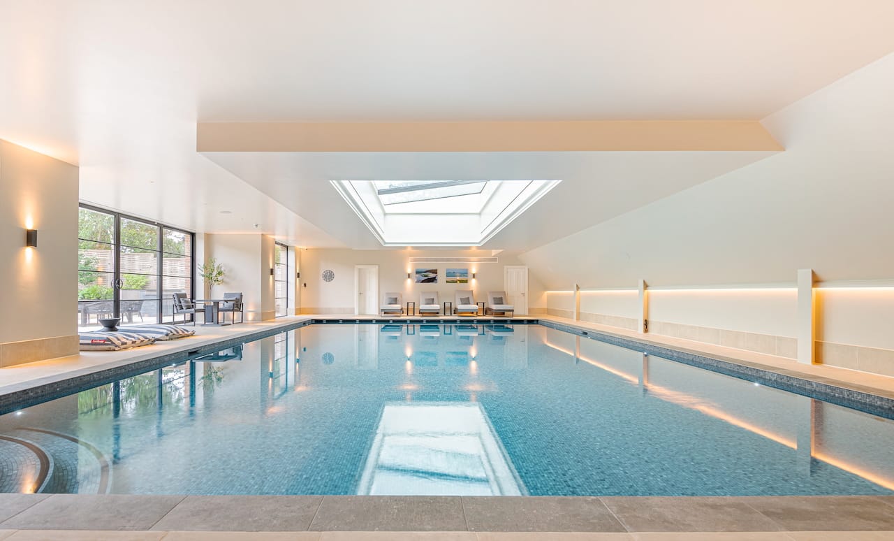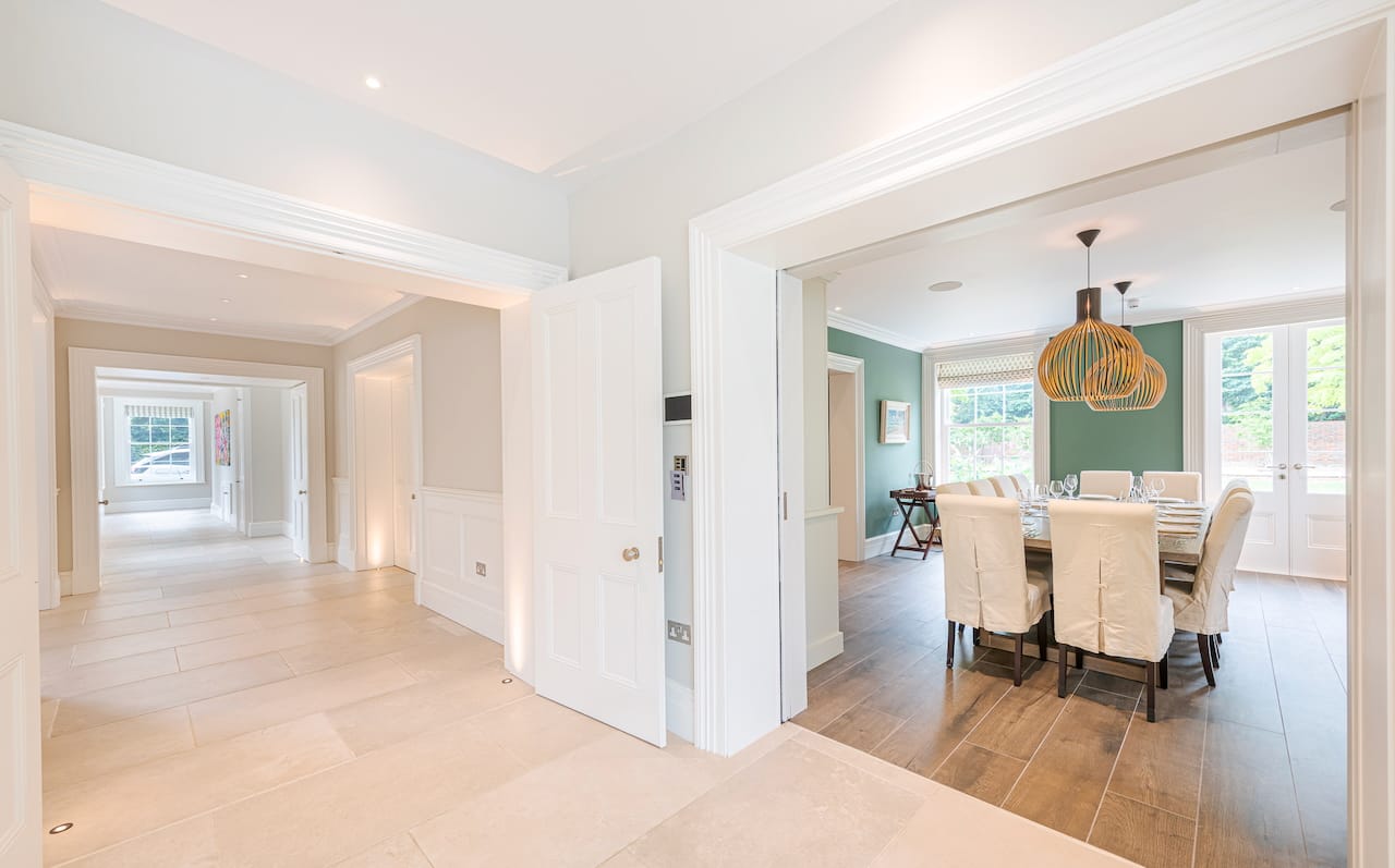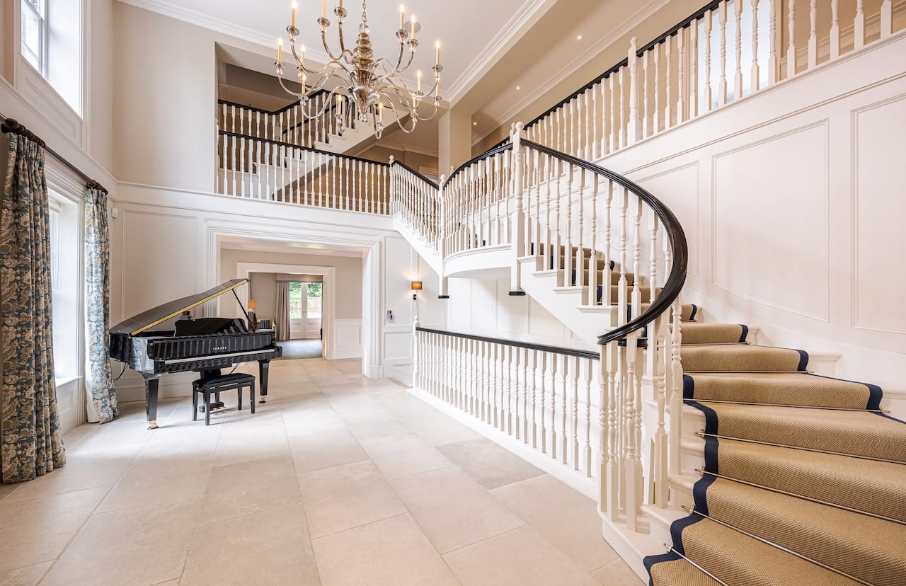 A gigantic 6 bed family house in Wimbledon with all the spaces you need for shoots. There is a grand staircase and piano, a dining room, indoor pool, gym, his and her dressing rooms, dog shower room and self contained annex for crew.