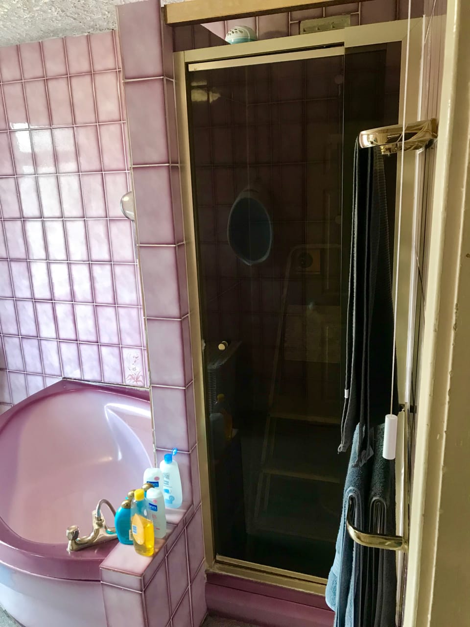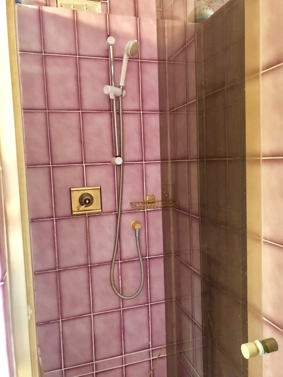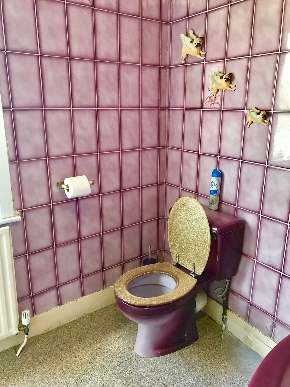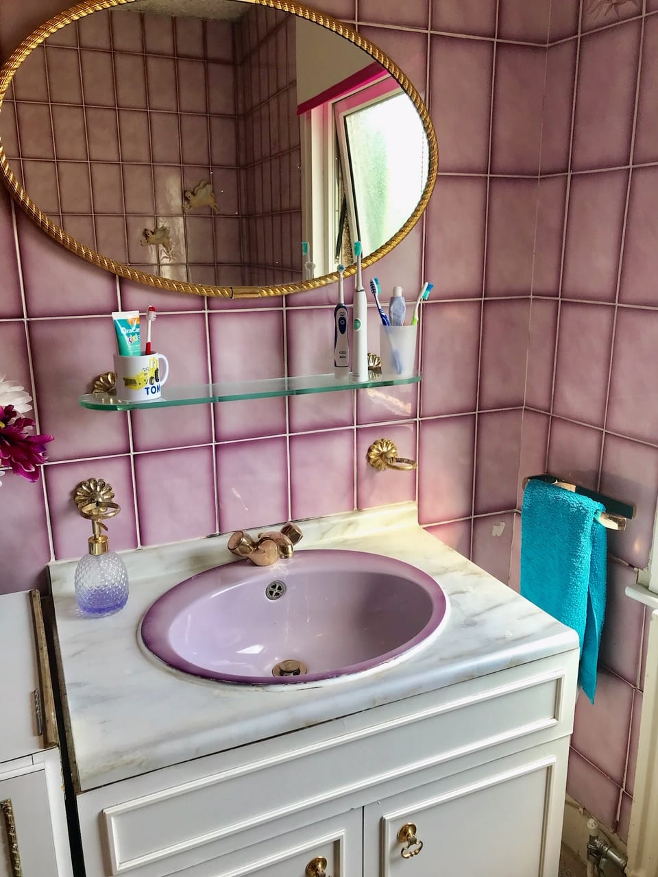 Amazing Pink retro bathroom, with retro touches! Located in East London.