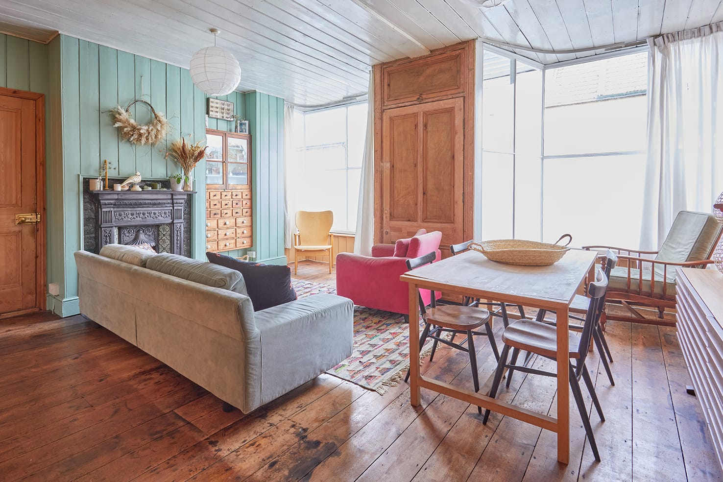 Wonderful house with an interesting history – the living room used to be a Victorian General Store and has original wood panelling and shop windows. The previous owners worked as a textile designer and sculptor, and there is William Morris wallpaper throughout. Additionally, there is also an outbuilding that used to be an artists studio! Loads of fabulous light and textures throughout. Located in Faversham, Kent. An hour and half drive from central London. Come shoot in Kent, it’s FAB!