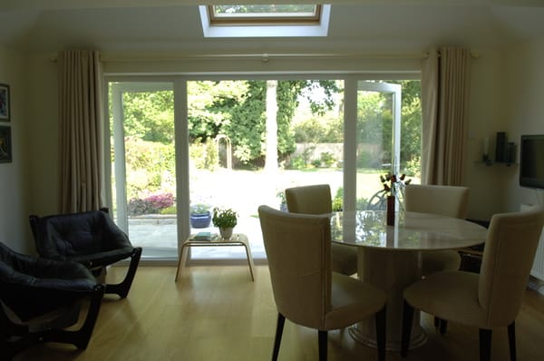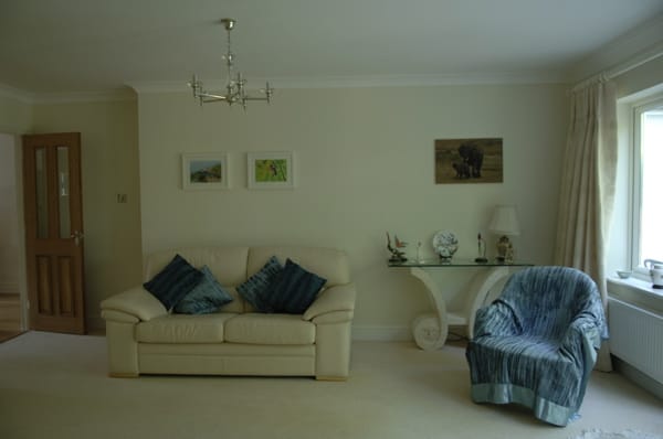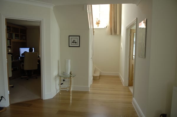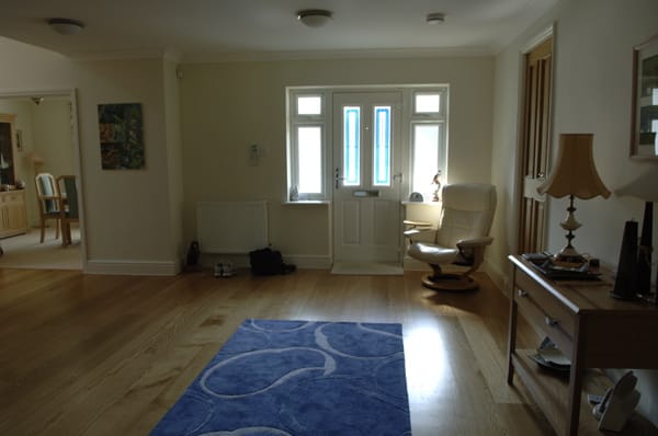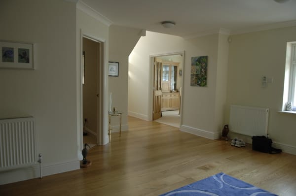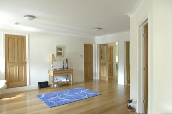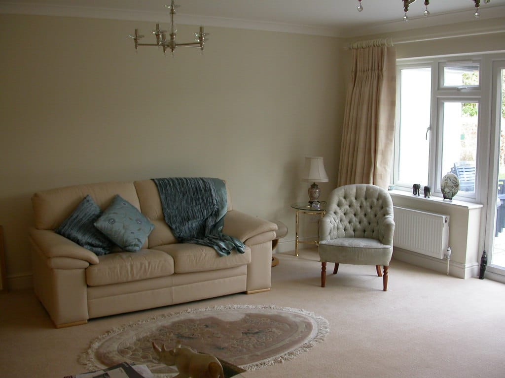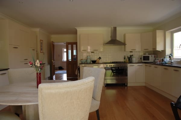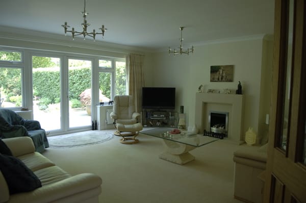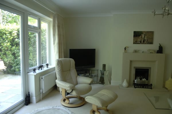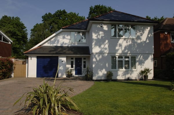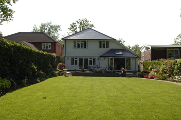 A large suburban home with a modern, neutral interior and a large garden. Located in Surrey.