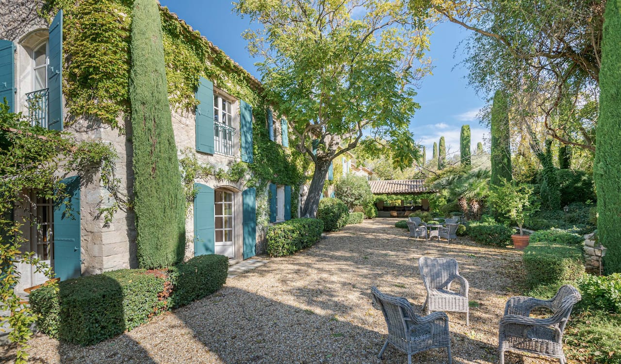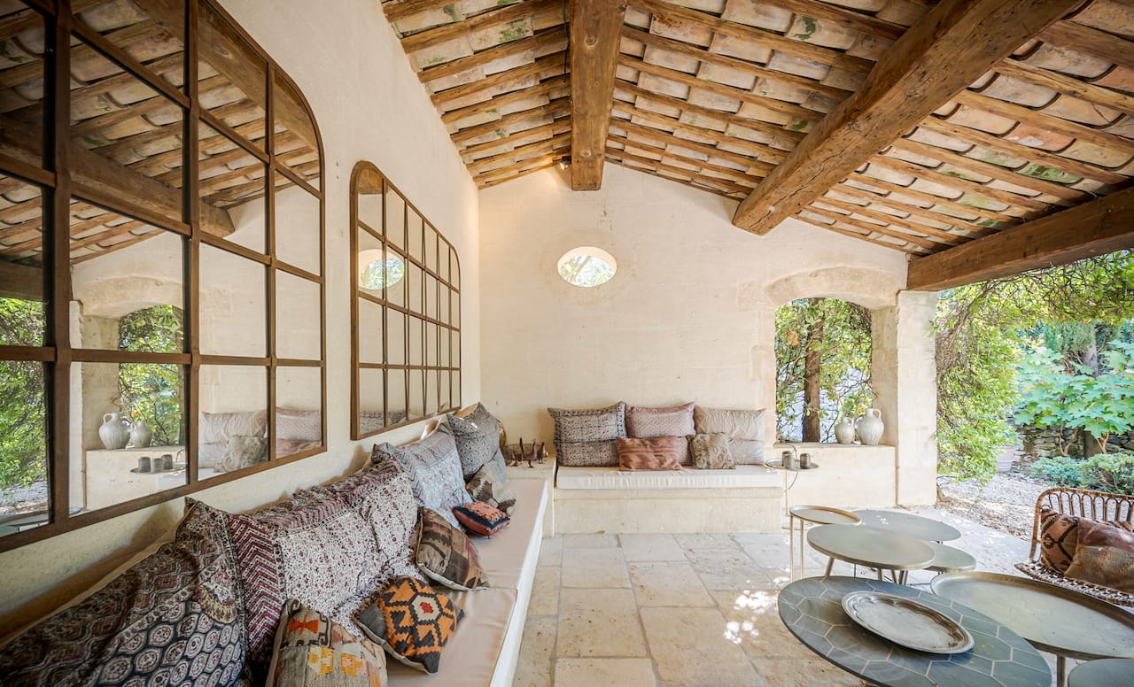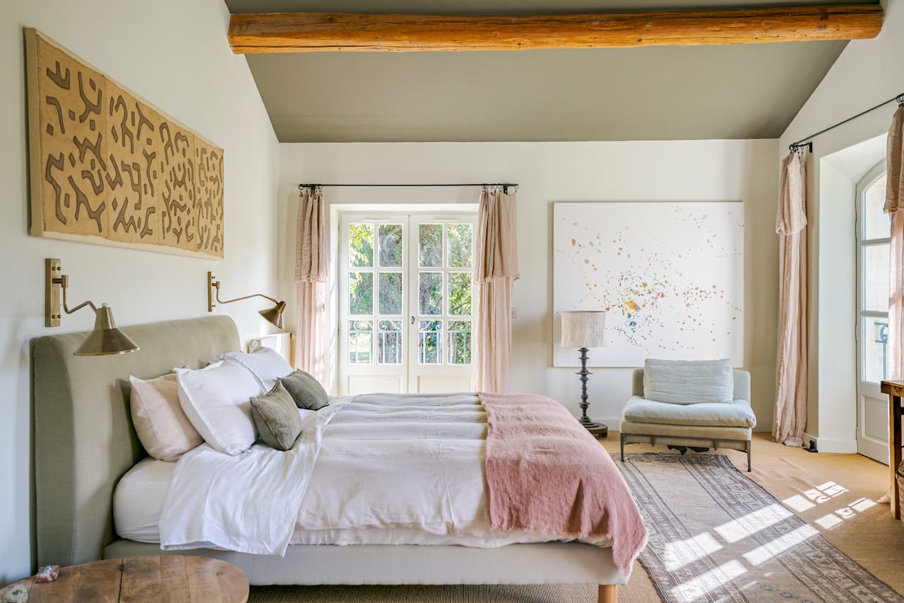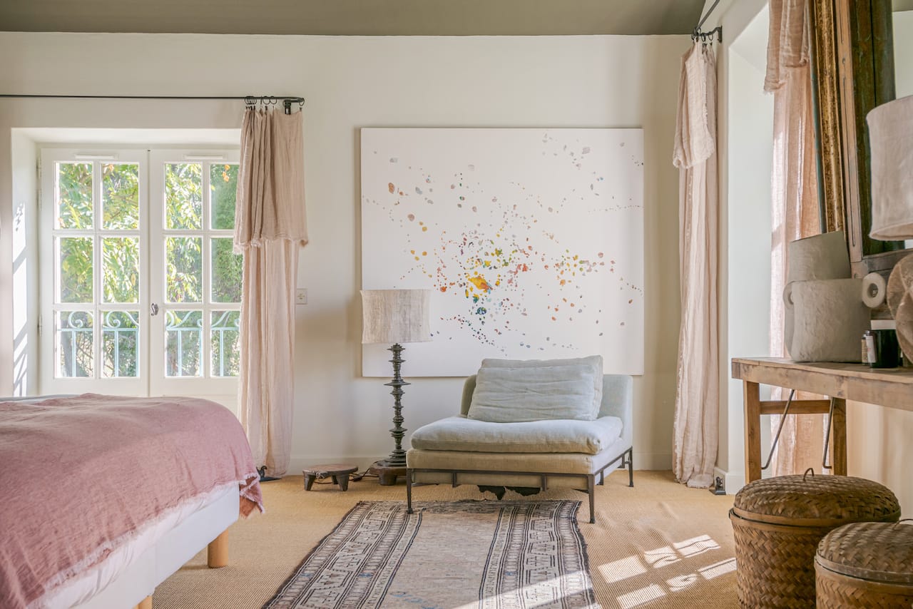 A gorgeous house in Provence with incredible gardens and countryside views. It has mid-century modern interiors with a lovely use of soft colours throughout the rooms. There is a swimming pool, tennis court and loads of outdoor seating in the grounds. Nearest airport is Marseille.