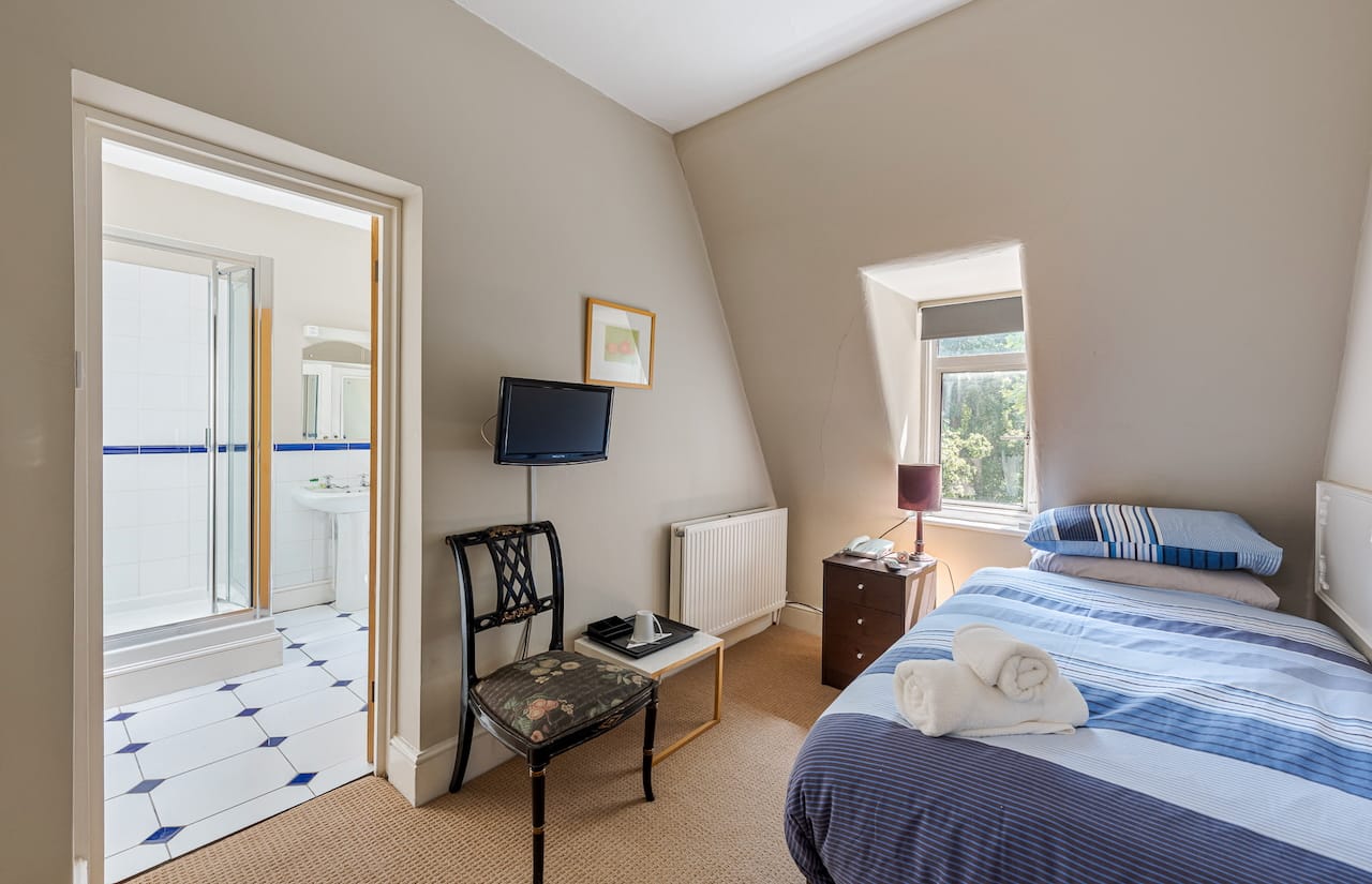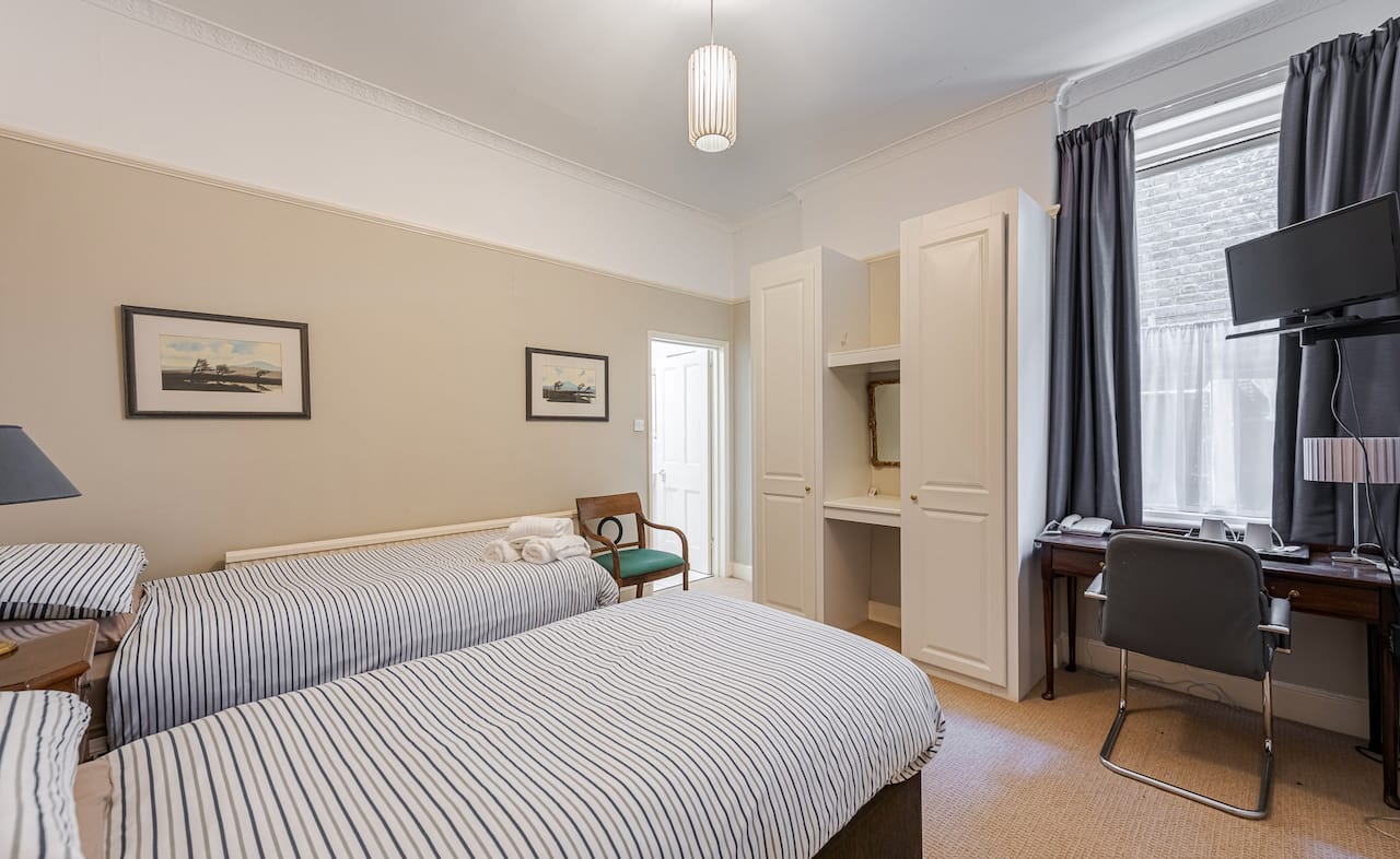 A unique, character-filled, closed hotel in West London with ten bedrooms available for shooting and production. The building is partially run down but has strong historical appeal. Features include a bar, guest lounge, dining room, small kitchen, laundry room, and garden. Convenient, accessible location.