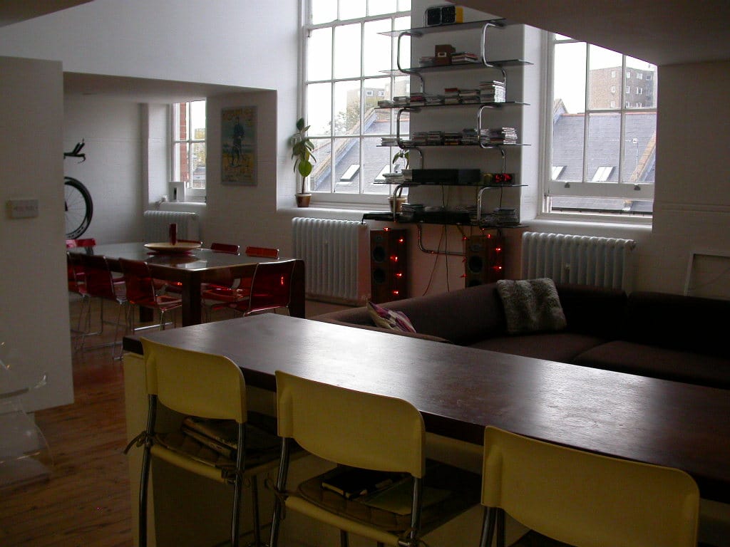 Lovely East London loft apartment in an old school building, with lots of daylight.
