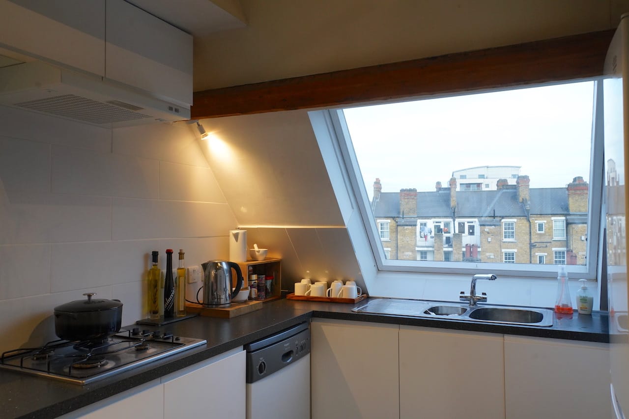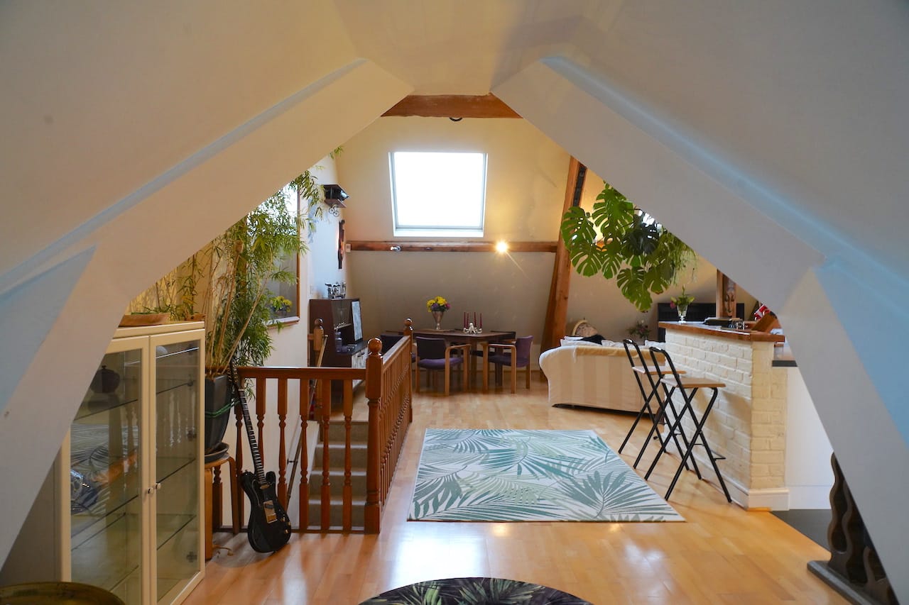 Lovely Loft style apartment, with walkways and views of the city. Located in East London.