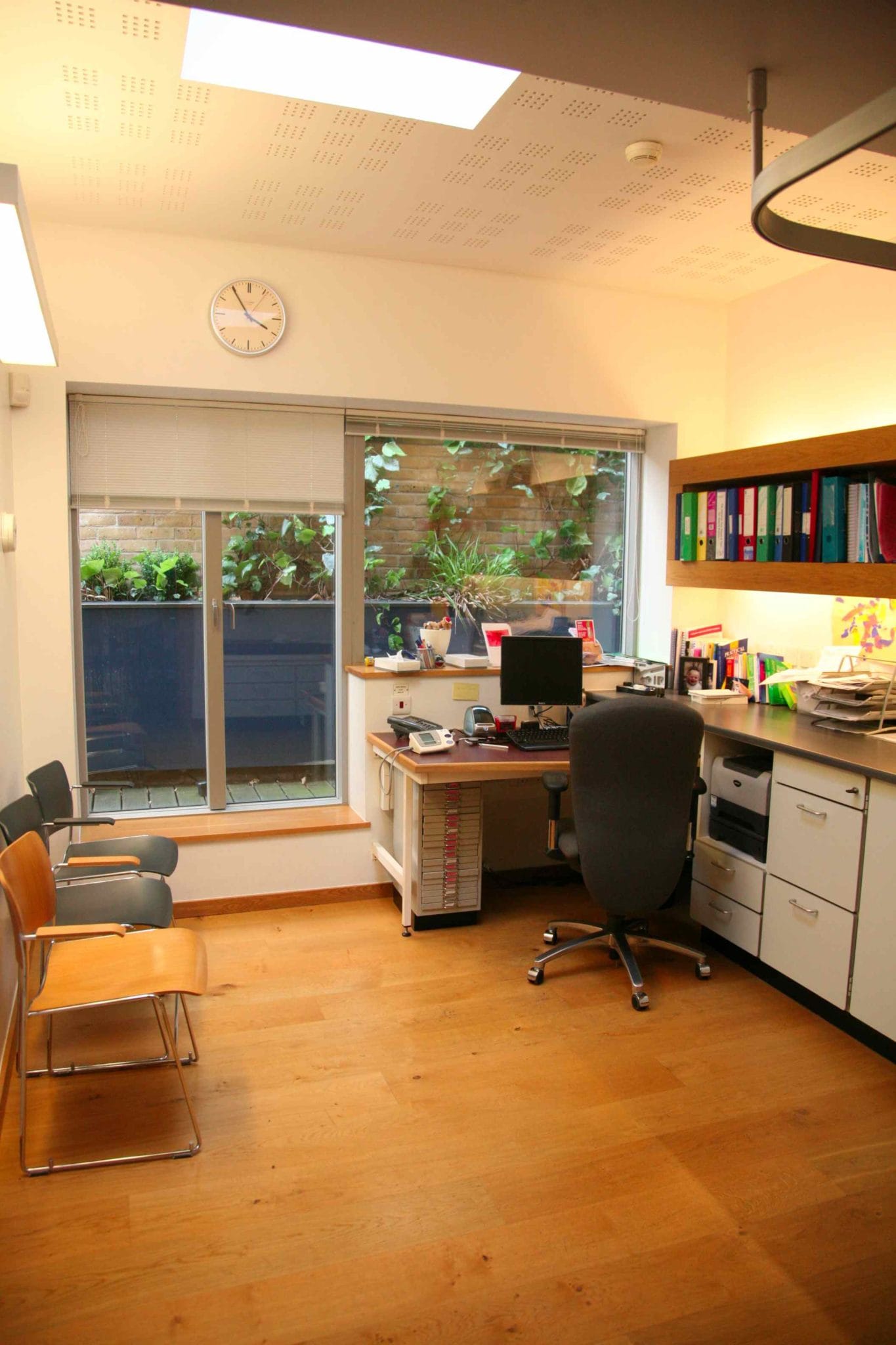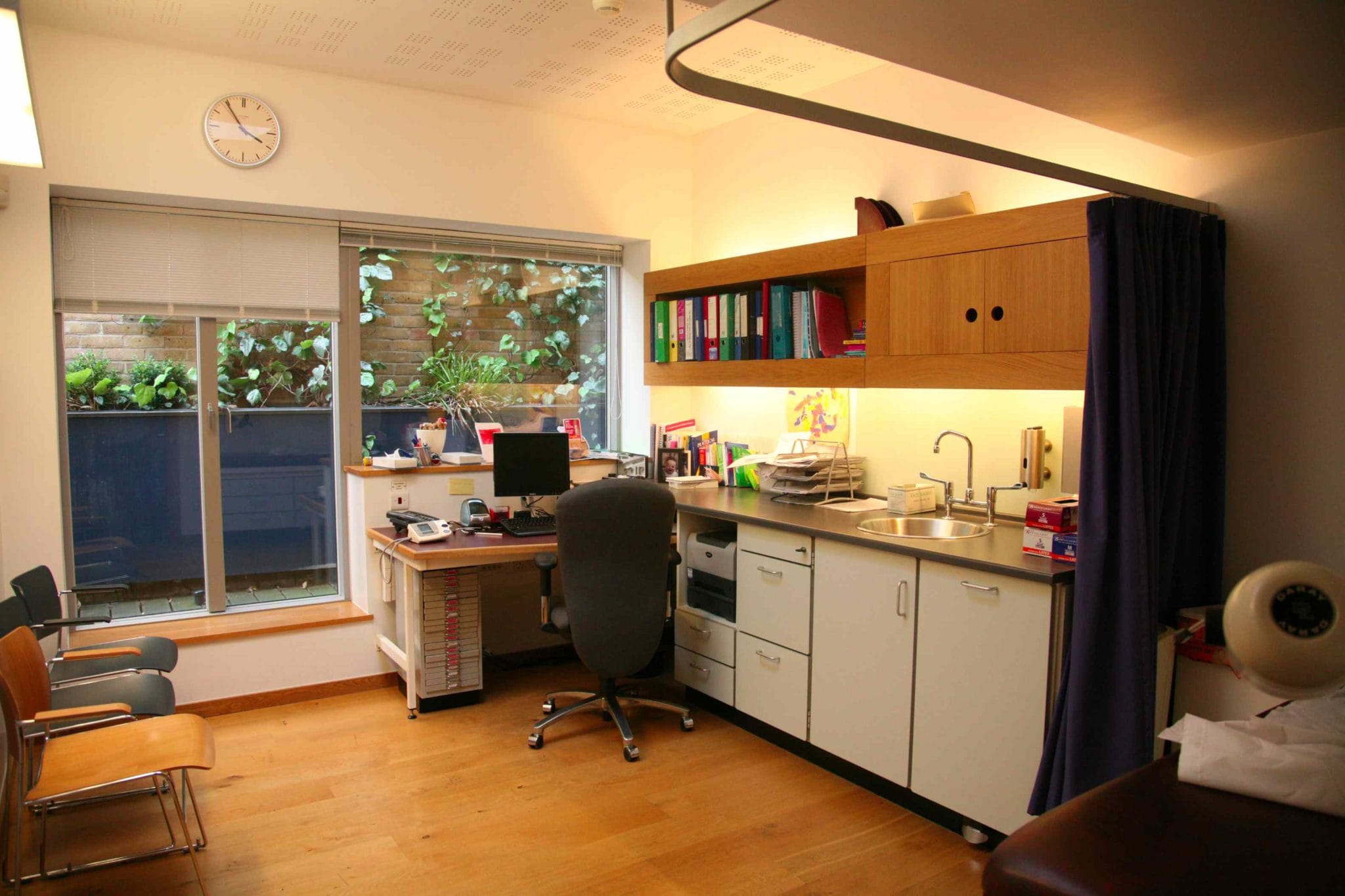 Doctor's practice with two practice rooms, meeting room and open plan office. Central London.
