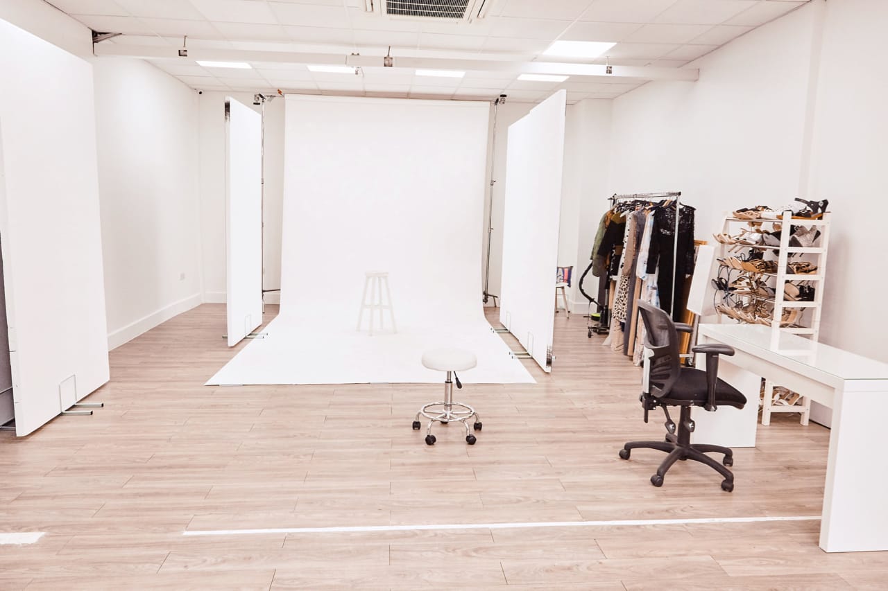 Studio for Photography & Video: 1000sq. ft. • 13ft. ceiling • Colorama • daylight & blackout • Full Kitchen • large make up & models area • clothes steamer • Lighting Hire • Suitable for set builds • 13 amp sockets • 1 Parking Space • Access on ground floor • Wifi • bluetooth sound system • Assistant Hire • Based in East London E1