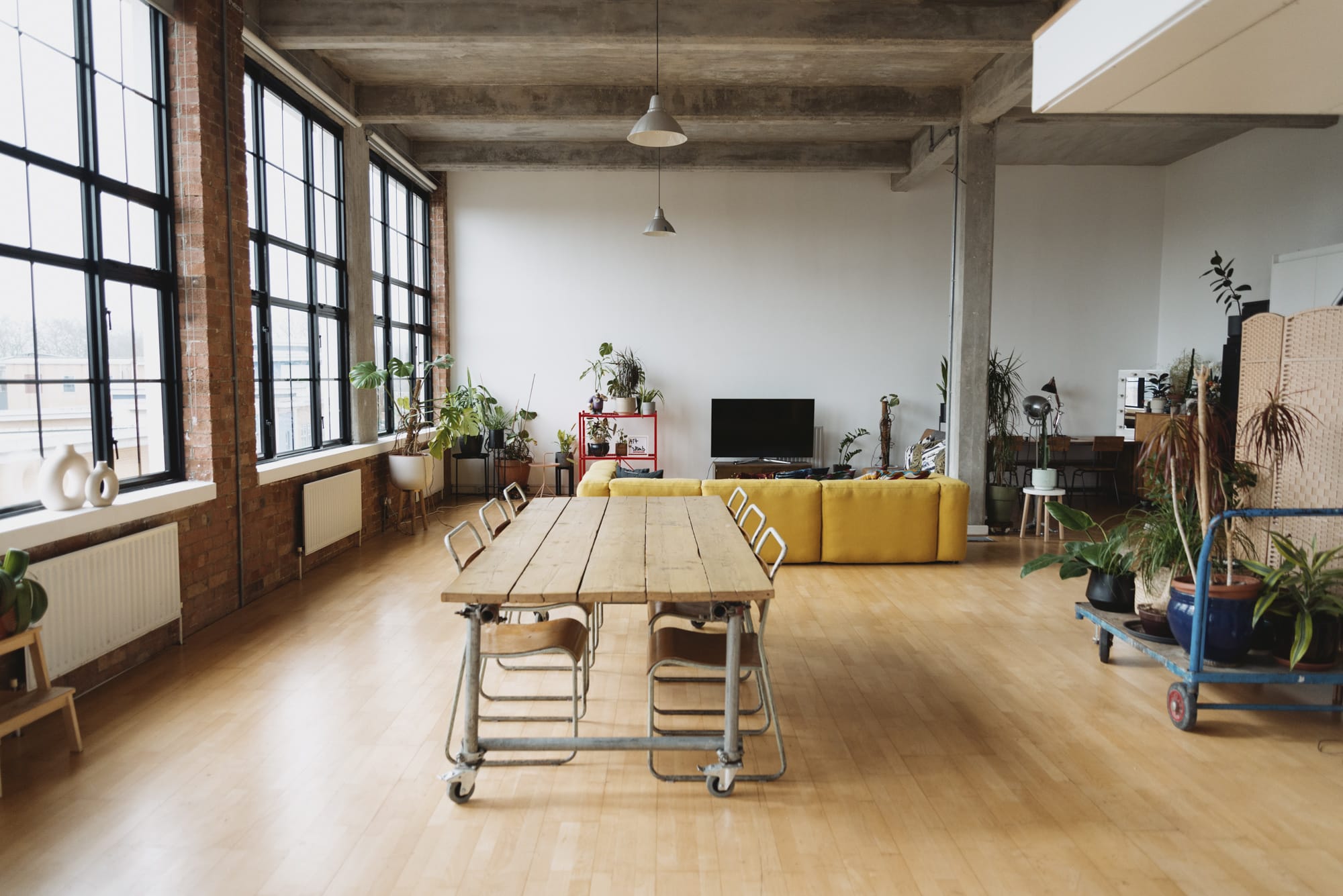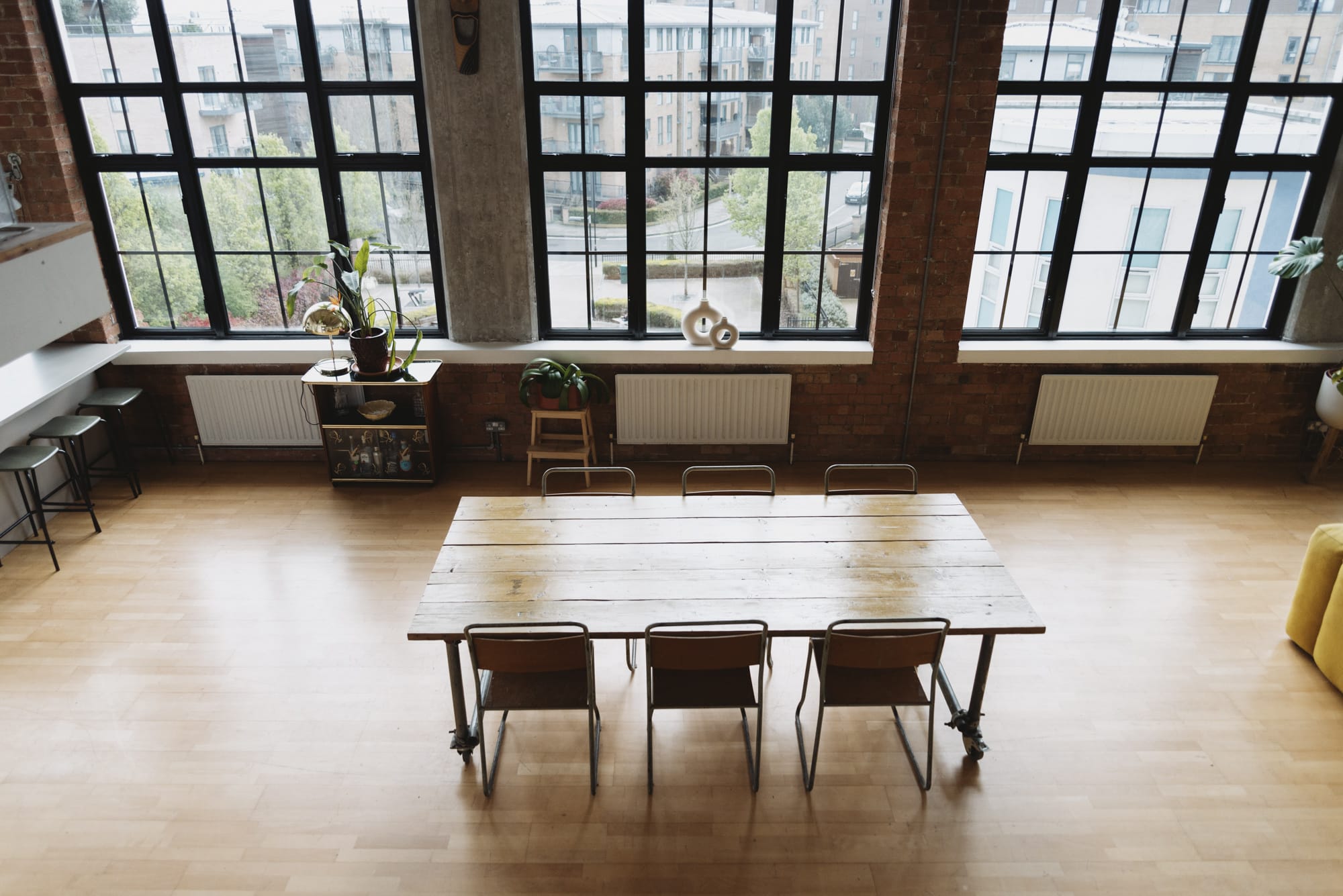 A 1200 sq foot open plan “loft apartment style’ studio space in East London. The studio boasts 13 feet high ceilings and five huge east facing windows, filling the space with lots of natural daylight and making it an ideal location for photography and filming.Located in an industrial Art Deco building that was used as an aircraft factory during the war. Features at the studio include: