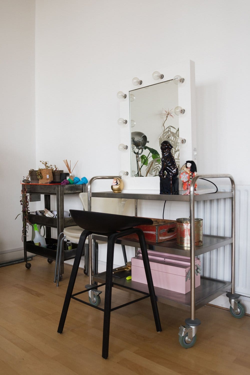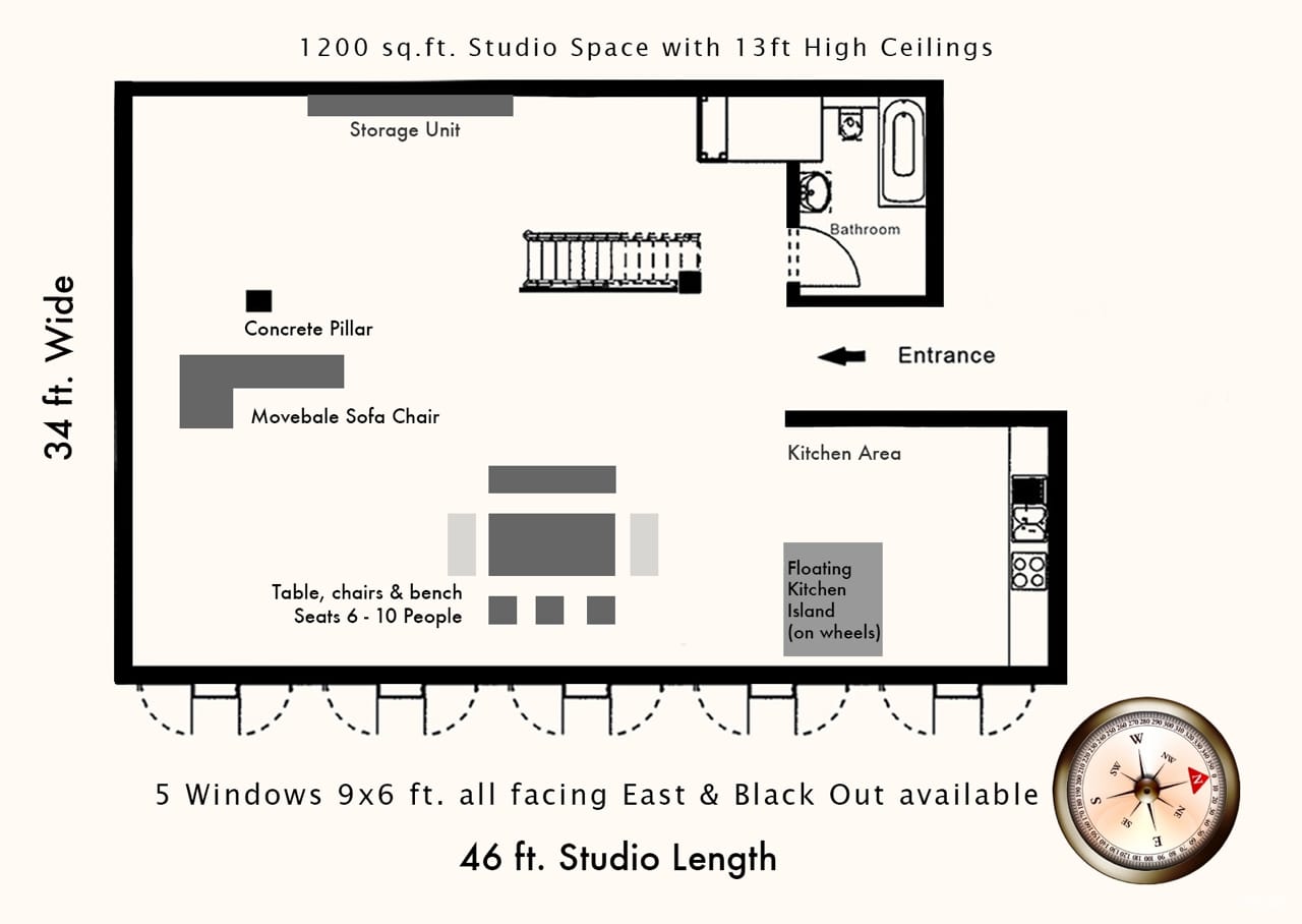 - Blackout blinds, Backdrop and black/white/grey colorama, Props and set, HMU station, Clothing rail, 50+ hangers and professional steamer, Two polyboards with stands
